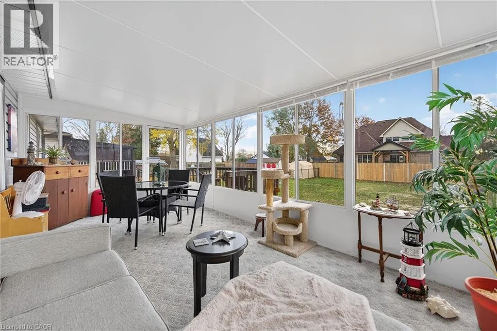 Take Highway 3 to George Street, LEFT on Broad Street, Property on Left side Beautifully presented 1996 custom built bungalow located in Dunnvilleâs preferred & established west quadrant noted for its quiet, friendly neighborhood enjoying the many amenities this popular Grand River town offers. Incs Hospital, schools, churches, arena/community center complex, east-side shopping centers, downtown shops/eateries & renowned public river park w/boat launch. This Aldor constructed home is positioned handsomely on huge 0.20 acre serviced lot fronting on quiet, tree-lined dead-end street introducing 1291sf of tastefully designed living area, 506sf attached 2-car garage plus 1291sf 4ft high lower level (crawl space) housing the dwellingâs mechanicals & abundance of dry storage area. Recently paved double driveway-2023 leads to attractive home complimented with stylish vertical siding & stone skirting enhancing curb appeal. Roomy front foyer allows entry to convenient main floor laundry room with direct garage access - turn to your right & continue past comfortable living boasting n/gas fireplace's warm ambience - onto Hub of the Home - a gorgeous oak kitchen sporting ample cabinetry, full array of appliances, desired walk-in pantry & adjacent dining room incs patio door walk-out to bright 3-seasons sunroom & rear deck - leads to professionally renovated 4pc primary bath-2024, spacious primary bedroom boasts personal 3pc en-suite & 2 double door closets - completed with 2 additional bedrooms. Large, fully finished garage ftrs lower level access - provides perfect venue for hobbyists or mechanics with large workbench area to tinker - still plenty of room - even with vehicles parked inside. Notable extras - n/g furnace, AC, vinyl windows, asphalt roof shingles, n/gas BBQ, washer, dryer & newer Cub Cadet riding lawn mower negotiable. 1st Time Buyers or Retiree's Dream Property! Affordable, Worry Free One Level Living Has Arrived! (id:27476)