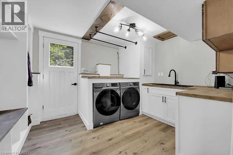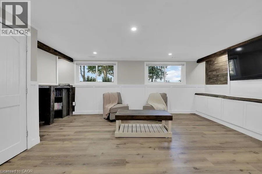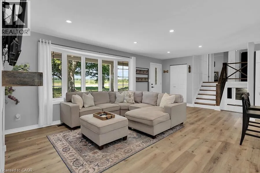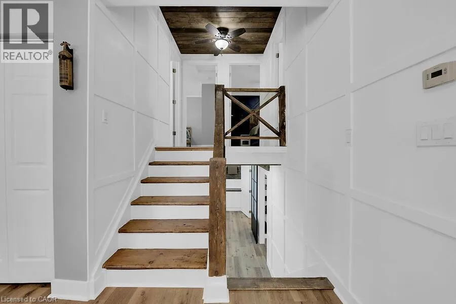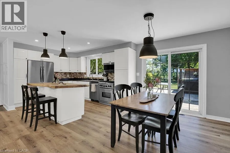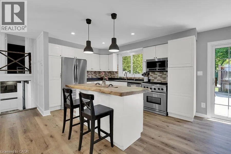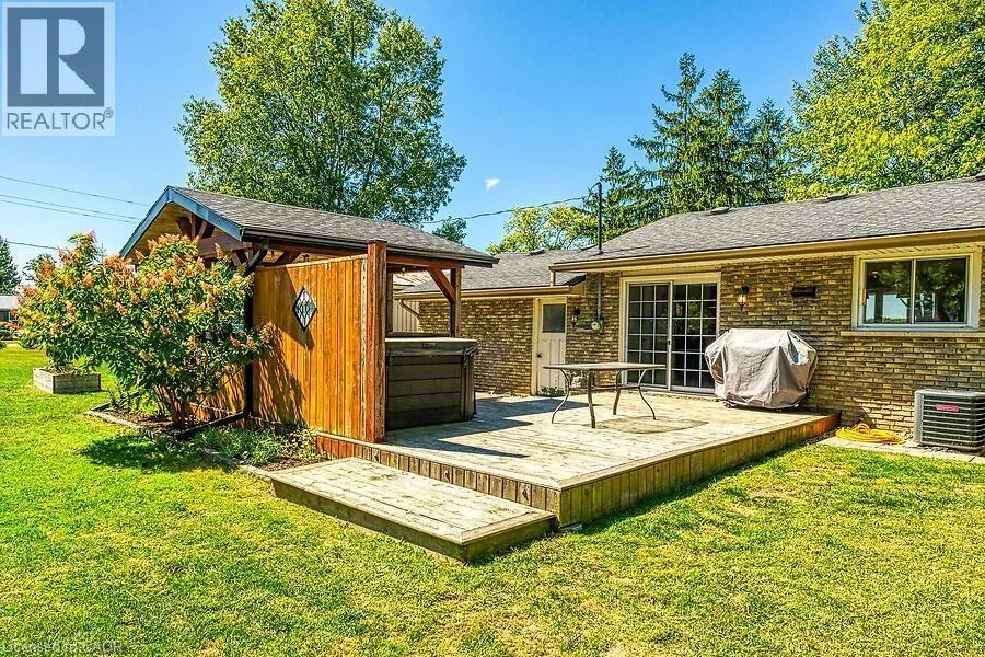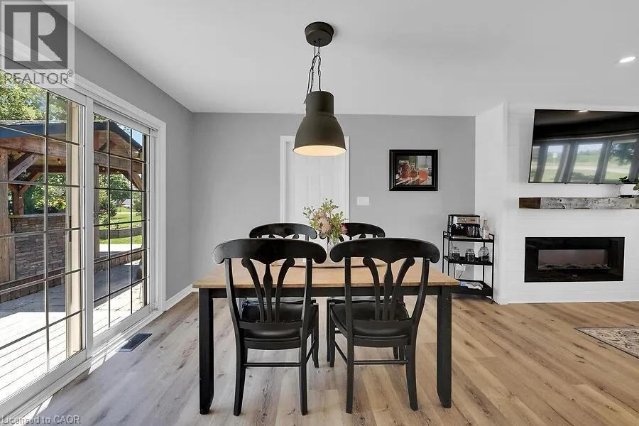 TAKE THE BRIDGE IN DUNNVILLE SOUTH TO PORT MAITLAND RD. FOLLOW PORT MAITLAND RD TO STOP SIGN. HOUSE ON YOUR LEFT. Welcome to this beautifully renovated 3-bedroom, 3-level side split home, ideally situated on a spacious corner lot. Combining modern elegance with rustic charm, this property offers the perfect blend of style, space, and functionalityâideal for families or anyone seeking a versatile home. Inside, luxury vinyl flooring flows throughout, creating a cohesive and durable foundation on every level. The heart of the home is a bright, open kitchen featuring a central island, sleek stainless-steel appliances, backsplash. Adjacent, the dining area opens via sliding doors to the backyard deck, seamlessly connecting indoor and outdoor living. The spacious living room is bathed in natural light from a large bay window and features a cozy electric fireplace, while pot lights throughout the main level enhance the inviting atmosphere, Inside entry from garage. A rustic staircase with panelled walls leads to three comfortable bedrooms. The primary suite has been newly renovated and boasts a wall-to-wall closet with barnboard doors, merging rustic charm with modern design, and a newly renovated 5-piece bathroom. The fully redone basement is a true highlight, offering a large recreation room perfect for family gatherings, hobbies, or entertainment. A dedicated office area provides an ideal space for remote work or study, and the laundry/mud room includes a convenient walk-up basement with a separate entranceâperfect for storage, added functionality, or private guest/in-law access. Step outside to your private country retreat. The backyard features a charming gazebo, a hot tub, a versatile workshop for projects and hobbies, and a thriving garden area ready for your green thumb. The driveway accommodates 10+ vehicles, large workshop 18.5 X 8.5 feet which you will appreciate. Recent updates include luxury vinyl flooring, renovated basement, primary bedroom, freshly painted interiors (2024), bath renovation (2025), built-in microwave, washer & dryer, and water heater owned (2023). (id:27476)