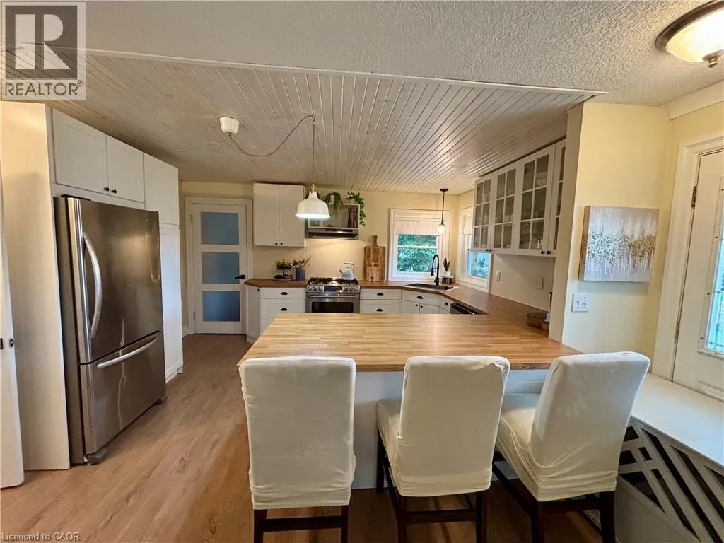 Corner of Diltz Road and Jarrett Place Country living close to town and all amenities! This 3+1, 2.5 bath bungalow on sought after 173 x 300 private mature treed lot. Great curb appeal with brick & vinyl sided exterior with attached garage, ample parking, deck, large patio and private mature treed backyard. Breezeway foyer to open interior layout: kitchen with breakfast bar, stainless steel appliances, spacious living/dining room with electric fireplace, 3 beds, 4 pc main bath & 2 pc guest, basement with family room, bedroom, 3 pc bath, laundry & storage. Enjoy the private yard, deck, new patio (2025), hot tub (as-is) and large lawn area, edged with mature trees. Shed with power. Updates include Furnace Oct 25, Septic 2022, 24-25; windows, weeping tile and waterproofing, concrete patio, some siding, main bathroom, interior painting throughout, interior doors & trim, laminate flooring & carpeting in bedrooms (original hardwood underneath). Possible severance too! RSA (id:27476)
