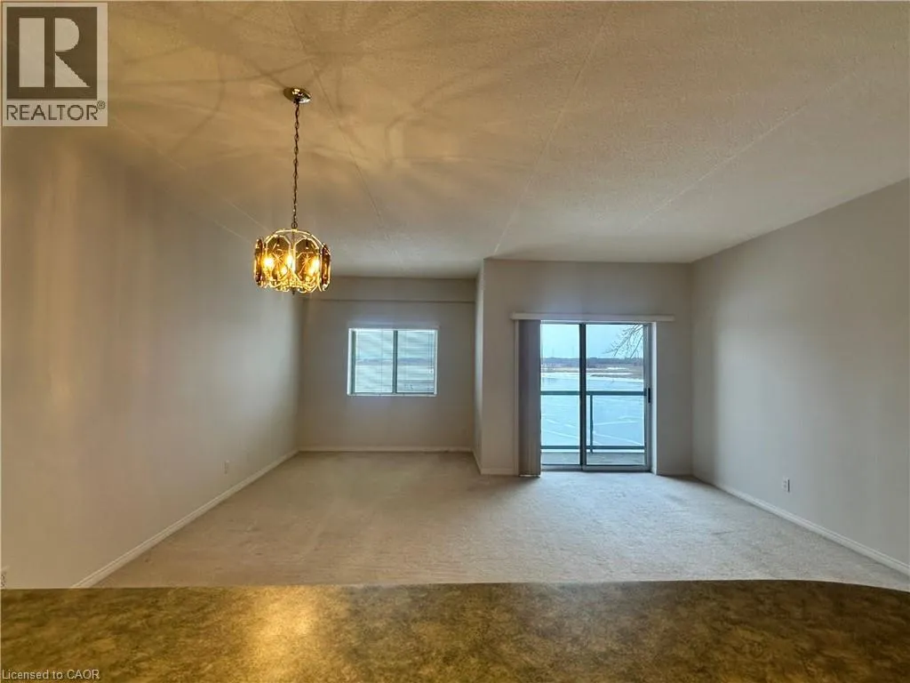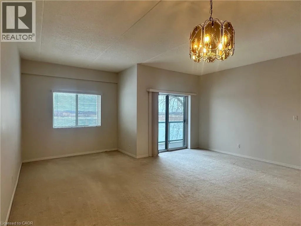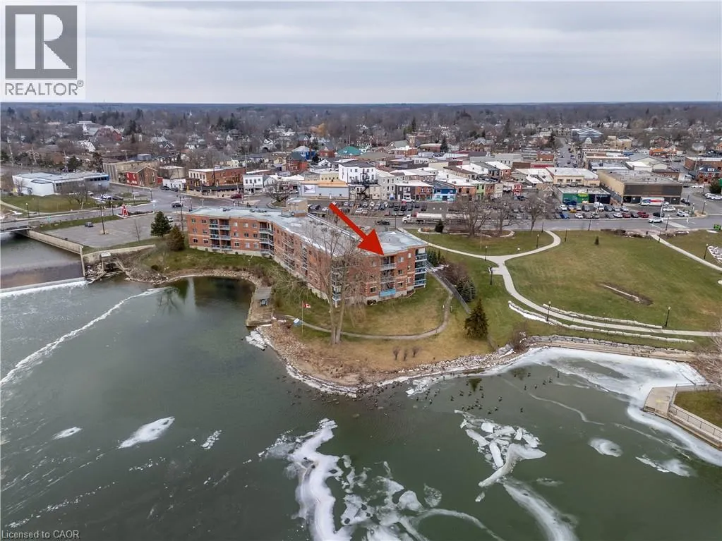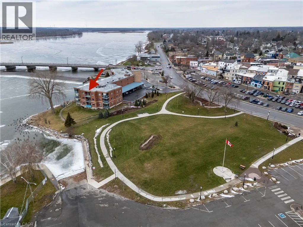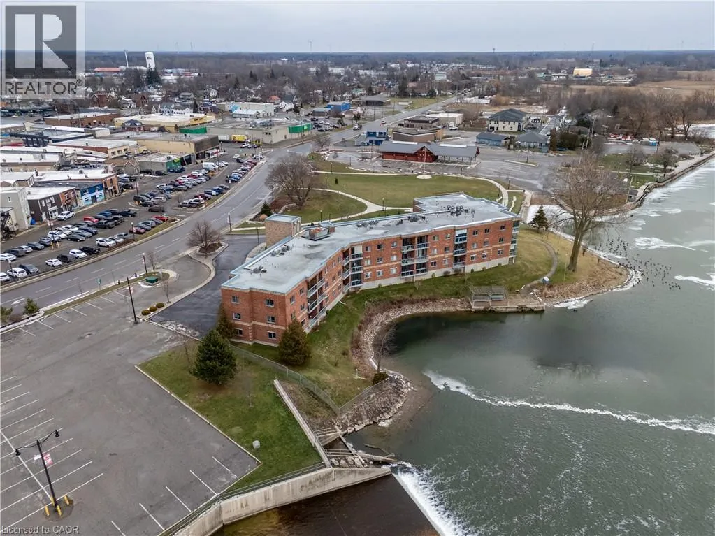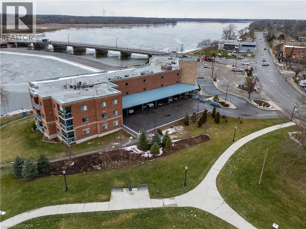 Corner of Main St E and Queen St Welcome to Grand River Landing! This riverside waterfront condo is a sought after, rarely offered plan, enjoying desirable south east exposure with beautiful sunrise views along the Grand River. The open-concept layout features a kitchen with oak cabinetry, and an eat-at bar height peninsula, flowing into a bright wide living/dining area with large sliding doors to a private balcony overlooking the water and marina. The spacious primary bedroom offers a walk-in closet and 4-piece ensuite and separate balcony walkout. Features include an additional 2-piece bath, in-suite laundry room/utility room, exclusive storage locker and underground parking. Ideally located within walking distance to Dunnvilleâs amenities, including the Farmerâs Market, shops, cafés, restaurants, parks, hospital, library, and recreation centre. An exceptional opportunity to enjoy waterfront living and all that Dunnville has to offer. Recent central air unit. (id:27476)