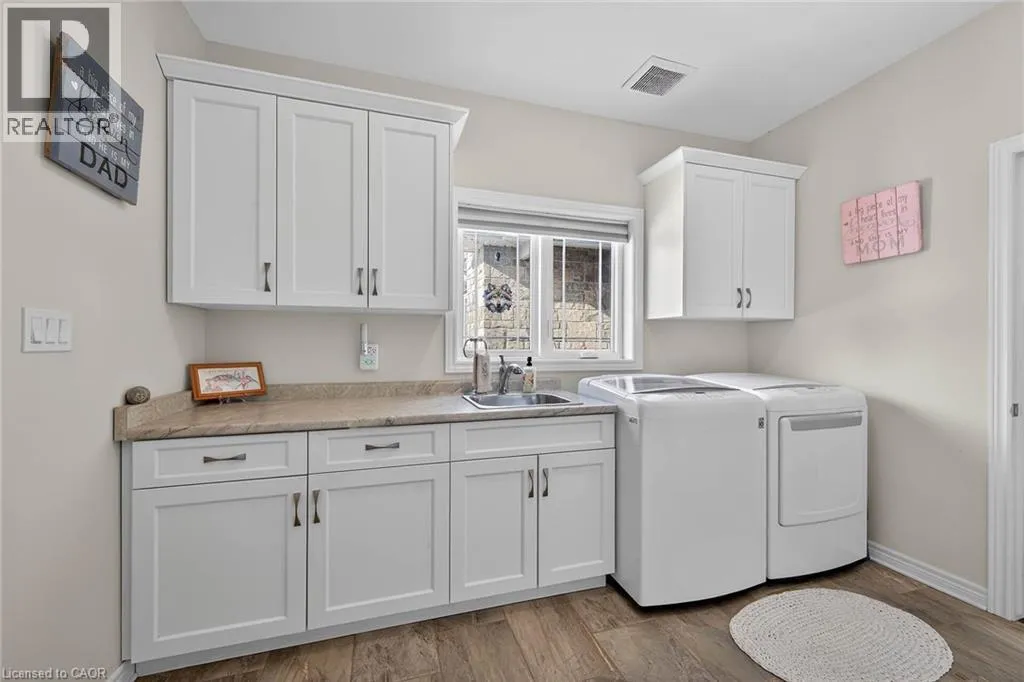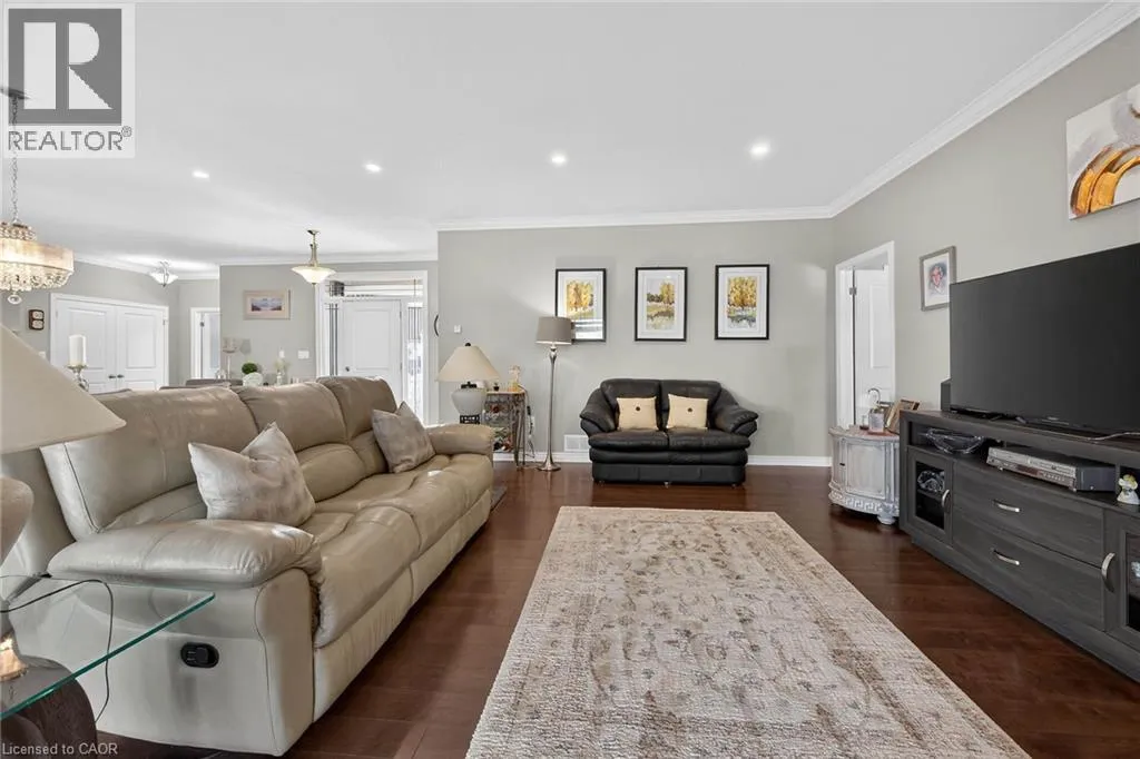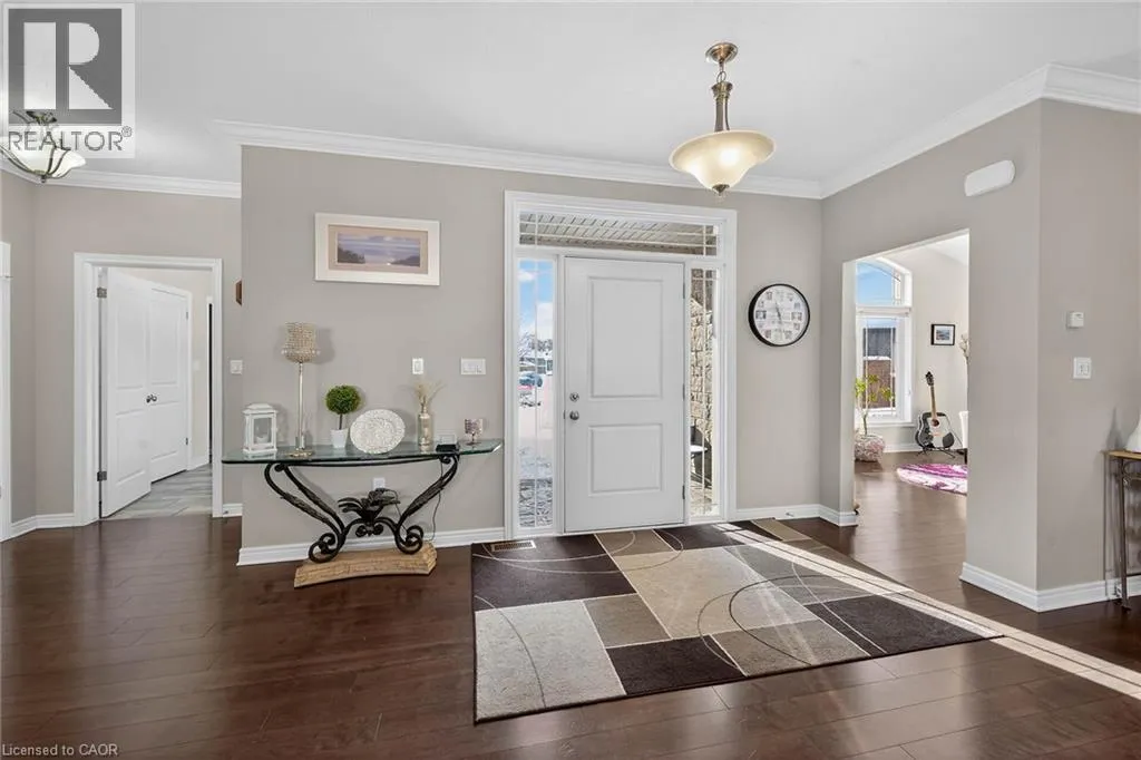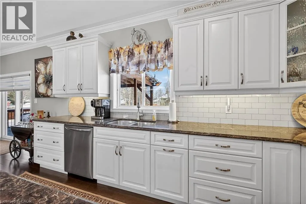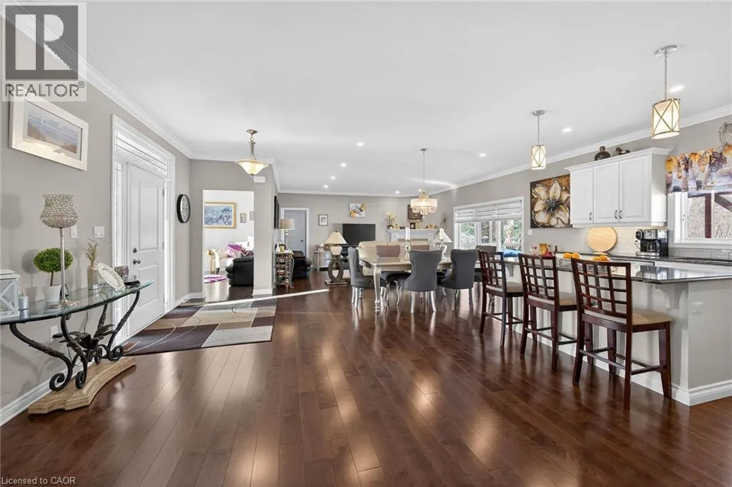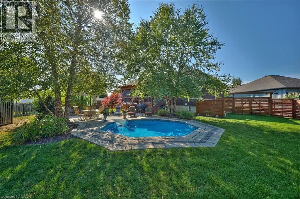 Main Street West to North on George Street to Left on Postma Drive Welcome to 49 Postma Drive located in upscale Dunnville area showcasing 2017 custom built bungalow positioned proudly on beautifully landscaped 0.30ac pie-shaped premium lot surrounded by similarly maintained properties. Close proximity to popular amenities inc Hospital, schools, churches, arena, shopping centers, downtown core & Grand River parks. Prepare to be âWOWEDâ once entering grand foyer & embrace 2,033sf of exquisite luxury highlighted w/beautiful open-conc. main edifice showcasing âChef-Worthyâ kitchen sporting chic white cabinetry, designer island, granite countertops, tile back-splash & SS appliances. Design flows to living/dining area enjoying warmth of n/g fireplace + 3 panel sliding door WO to 14'x20' covered deck overlooking resort-style rear yard ftrs octagon-shaped heated OG pool & paver stone entertainment patio nestled among mature hardwoods providing natural shade & privacy. Continues past impressive den/office ftrs vaulted ceilings w/natural light beaming thru palladium window - onto North-wing primary suite incs plethora of windows, regular closet & WI closet topped-off w/stylish 5pc en-suite. South-side incs 2 similar sized bedrooms flanking modern 4pc bath - perfect area to segregate children or guests. Convenient MF laundry room provides access to 592sf oversized 2-car garage ftrs 10.5ft ceilings & finished interior. Pristine engineered hardwood flooring & crown moulded 9ft ceilings compliment soft, neutral décor w/sophisticated swagger & flair. Wanting more space - check out expansive 2,033sf lower level incs drywalled/painted perimeter walls, hydro receptacles in place & carpeted flooring - your choice of ceiling finishes. Minimal cost to complete for either extra bedrooms, family rooms, home theatre or gym. Extras - paved double driveway, paver stone walk-ways/patios, multi-zone irrigation, all appliances, n/g furnace, AC, owned water heater, HRV & more! Experience small town living in Executive comfort - who says you canât have it all! (id:27476)