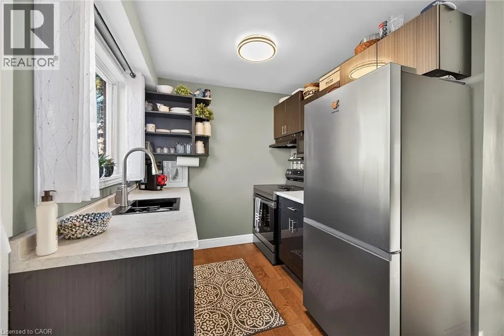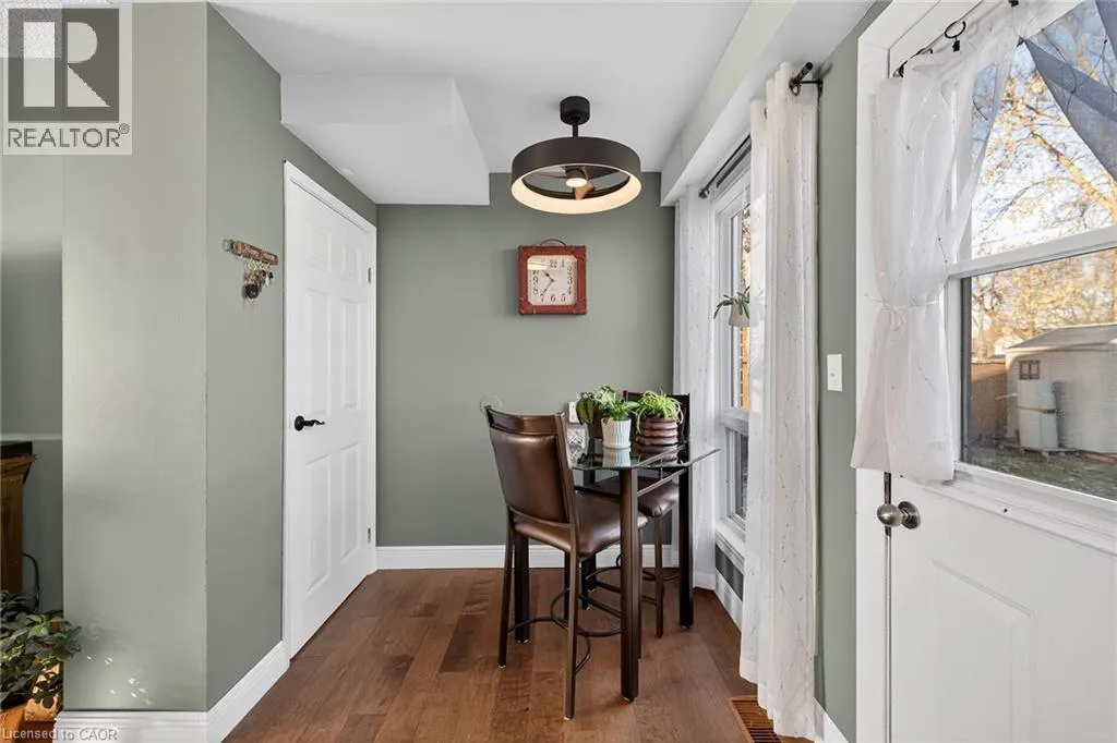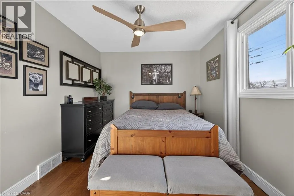 TAKE HWY #3 INTO DUNNVILLE. GO SOUTH ON NIAGARA STREET. TURN RIGHT ON MAIN STREET. HOUSE IS ON THE RIGHT SIDE. Affordable semi-detached end unit located just minutes from all amenities situated across from the Grand River. Get inside and check out this tastefully renovated home featuring 2 upper-level bedrooms, updated 4pc bath, updated kitchen with access to 22âx10â rear patio area, privacy fenced backyard, garden shed, and a paved driveway with parking for 4 vehicles. The full unfinished basement provides laundry facilities and extra storage space. Extensive updates completed in 2025 include engineered hardwood flooring throughout, new 5.5â baseboards, fresh paint, upgraded interior door hardware, new kitchen cabinets, countertops, sink and faucet, as well as bathroom vanity, toilet, and mirror. Additional improvements feature new lighting and ceiling fans, enhanced attic insulation (22.5â), Bell hi-speed internet, privacy fabric on fencing, and a vinyl shed. Conveniently located near the marina/boat launch, farmerâs market, grocery stores, schools, banks, downtown shops, arena, park, and hospital. This property is perfect as a starter home or a desirable rental opportunity for investors. (id:27476)