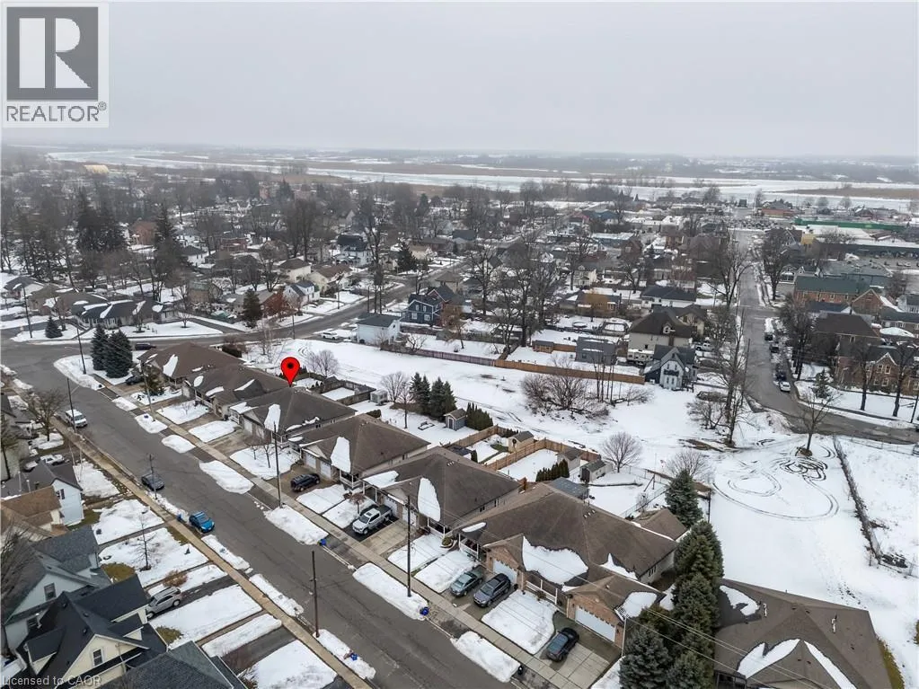 Between Tamarac St and Cedar St Extremely well cared for semi-detached home in Dunnville, built in 2007 and offering comfortable, low-maintenance living. The bright and spacious main floor features a generous living and dining area with a cozy corner fireplace and sliding doors leading to a fully fenced backyard-perfect for relaxing or entertaining. The oversized kitchen showcases classic oak cabinetry and includes appliances. Main floor laundry and main floor bedroom adds convenience, while the open staircase leads to a partially finished basement with spacious bedroom/sitting area, 3pc bath and plenty of potential for a new owner to customize. Additional highlights include an attached garage with inside entry, poured concrete driveway, and a large covered front verandah, adding to the home's inviting curb appeal. Note: Bsmt bedroom and bsmt rec room photos have been virtually staged. (id:27476)