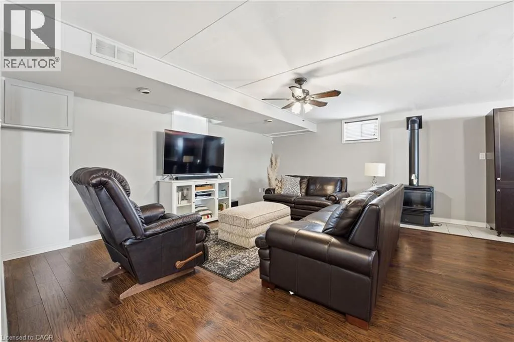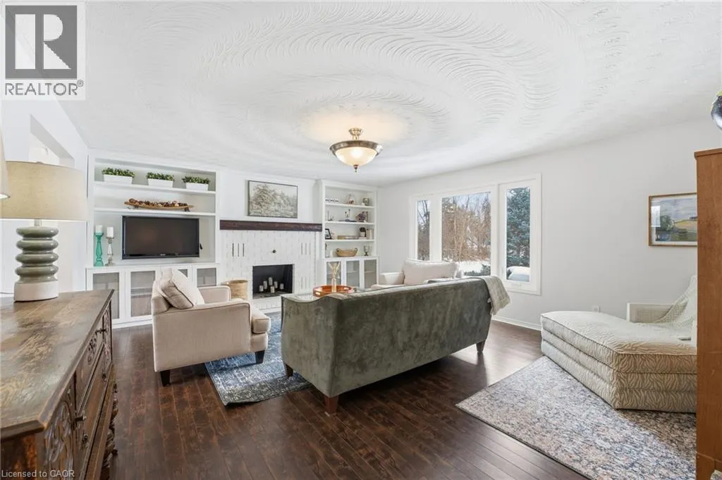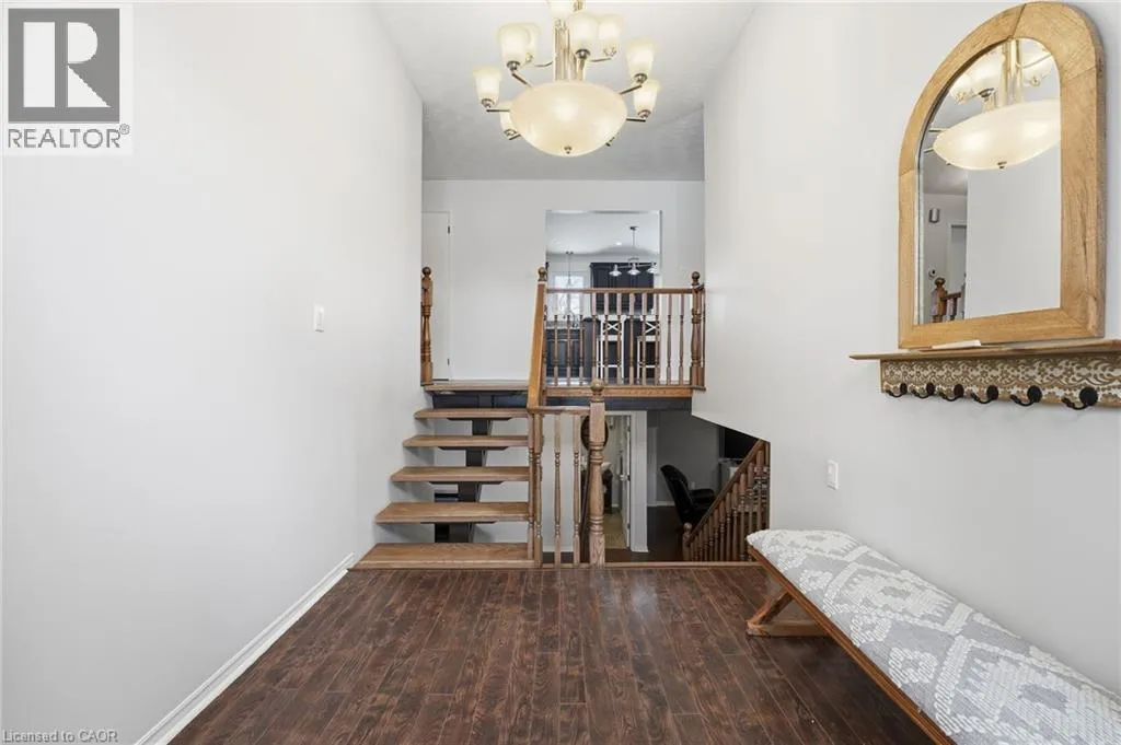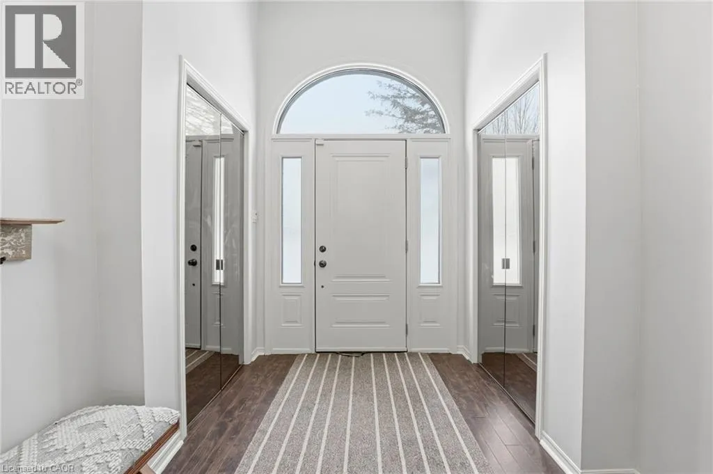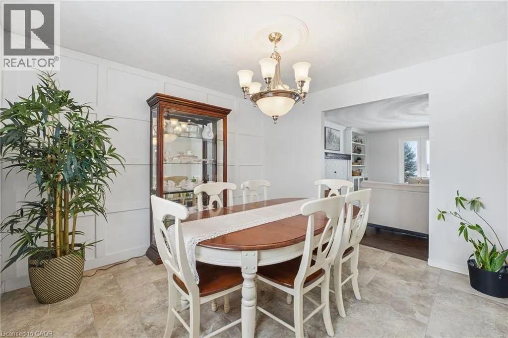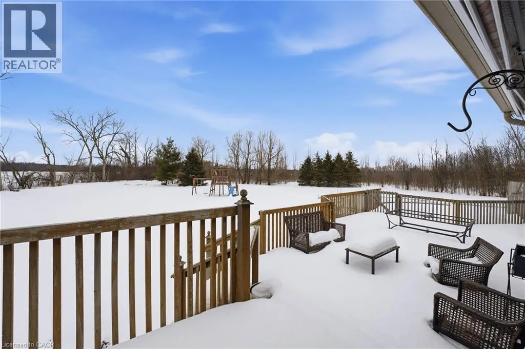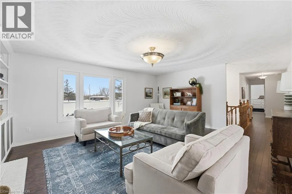 Discover peaceful country living in this all-brick, raised bungalow set on a private 1.24 acre lot surrounded by mature trees. Positioned well back from the road, the expansive driveway offers parking for 10+ vehicles - perfect for guests, trailers, or all your toys. Built with durable core slab construction, providing solid floors for the main-level, and open-concept living in the basement. Step inside through the spacious, welcoming foyer featuring dual closets and a beautiful open staircase that allows natural light to flow throughout both levels. The upper level showcases an updated kitchen with an oversized island, granite countertops, and seamless transition to the dining room with an eye-catching accent wall. The bright, spacious living room features custom built-ins framing an all-brick fireplace (not in use) and a large bay window. Three bedrooms and a 4-piece bathroom complete the upper level, with dual closets in the primary bedroom . The fully finished lower level is designed for entertaining with a built-in bar, gas fireplace, 3-piece bathroom, and flexible recreation space ideal for a playroom, home office, or future bedroom with convenient walk-up garage access and includes a utility/storage room with brand new furnace (Jan 2026). The 500+ sq ft garage comfortably fits two vehicles and includes a gas line already roughed in for a heater. Step outside into the spacious yard to an oversized back deck overlooking the above-ground pool (AS-IS) - perfect for relaxing or entertaining. Enjoy the peace and privacy of rural living while being just minutes from the downtown core of Dunnville. (id:27476)
