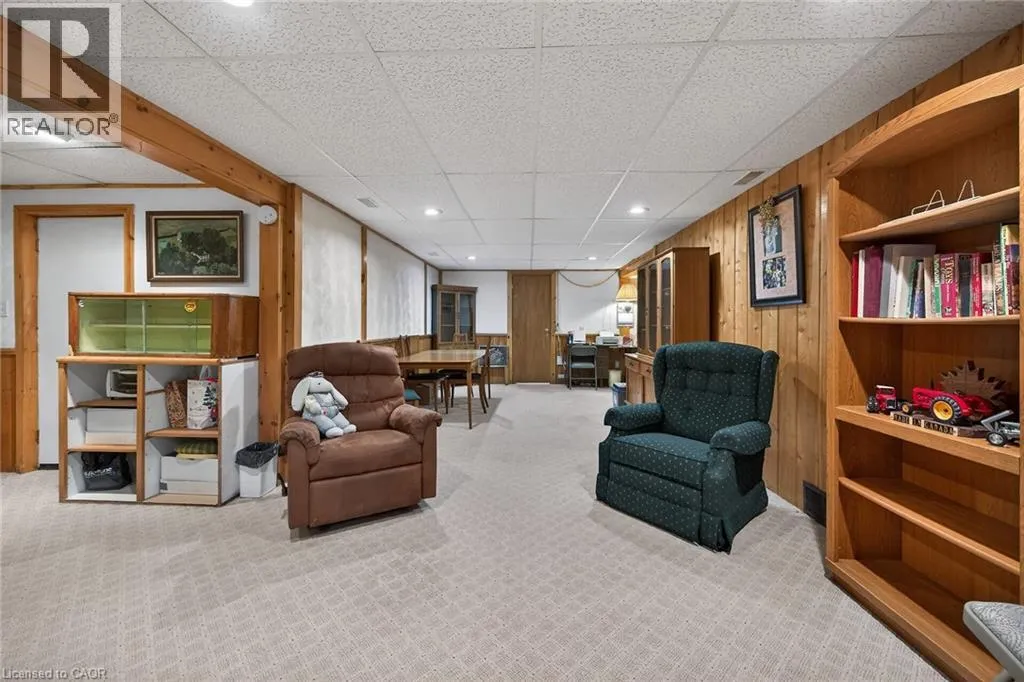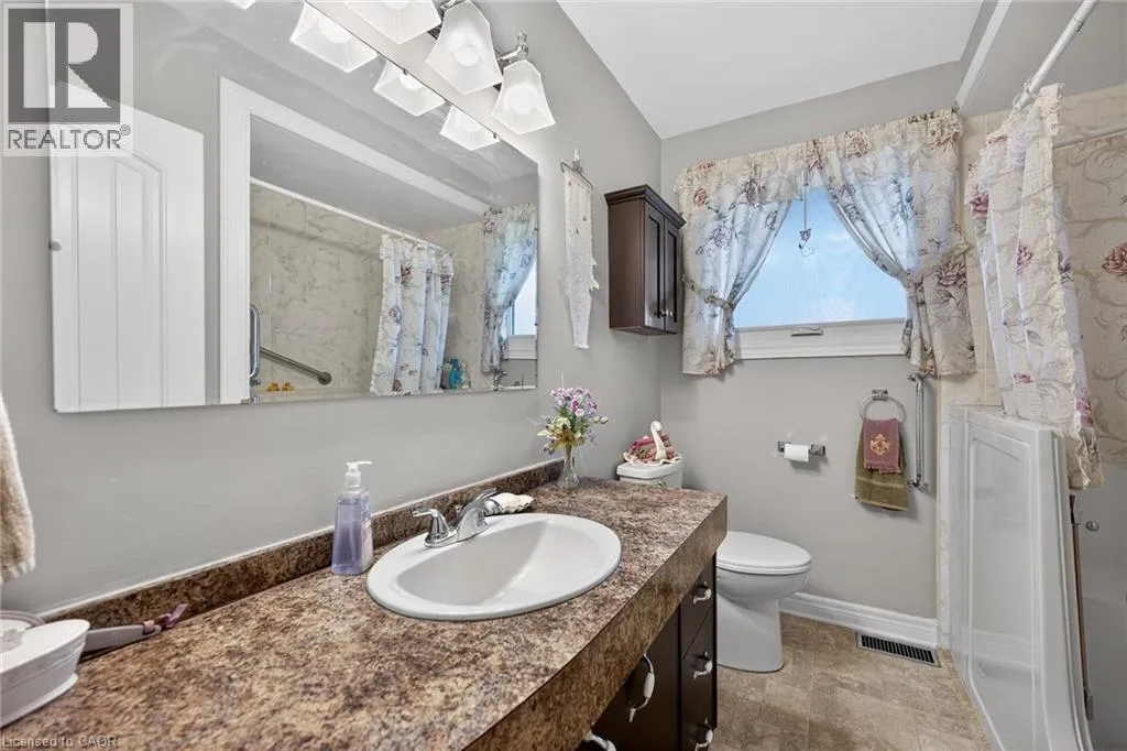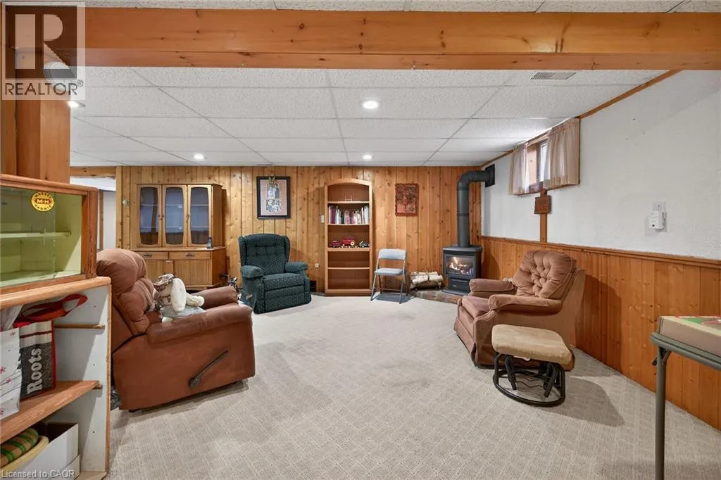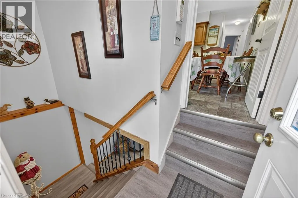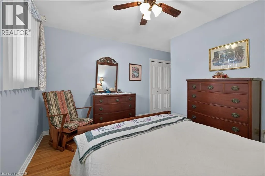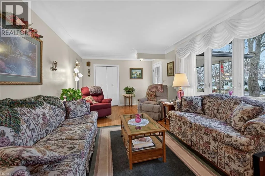 Follow Main Street into Dunnville, Take Cedar street to the property Lovingly maintained all brick 1965 built bungalow with finished basement and detached garage (blt in 2017) on mature treed 56x124ft lot in quiet area of Dunnville. This solid super clean home offers 3 bedrooms, 2 full bathrooms, large country sized eat in kitchen with oak cabinetry, gleaming original hardwood floors, and good sized lower level family room with gas fireplace. Lots of important updates including all new vinyl windows in 2000, asphalt roof shingles 2018, natural gas high efficiency furnace with central air â replaced in 2009, owned hot water tank 2012, and water purification/softener system â still under warranty. The house has 100 amp electrical and is wired ready for a generator. The upper level bathroom has a walk in bathtub for ease of use if needed, and the  lower level tub is a relaxing jacuzzi. Outside features a quaint covered front porch, parking for 3 to 4 cars, and lots of gardens to enjoy! Detached single car garage with concrete floor, power, and two windows - would make a great man cave. No worries here â come live quiet small town life in Dunnville! (id:27476)