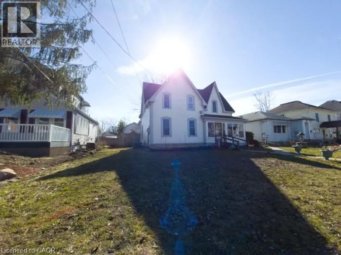 FROM MAIN ST W, N ON CEDAR HOUSE WITH SUPER MAN CAVE SHOP!!! Fronting on Cedar St is a solid spacious 1,527sq ft, 3 bed home with 1 & a half bathes, separate dining room, enclosed sun porch, big kitchen, large living room & some original hardwood flooring, updates include; (furnace/CA January 2026), hydro & windows. Super 2,100 two level man cave shop has a kitchen, bathroom, massive Rec Room, 2nd level vaulted ceilings, 100amp, furnace, central air and driveway off of Cross St E alley way. Shingles done in 2016. Great investment for possible future 2 family situation. GREAT TOWN BESIDE THE GRAND RIVER, CLOSE TO THE LAKE, LOTS OF SCHOOLS, MATURE STREET LOCATION, MODERN ARENA, SHOPPING COMPLEXES & OH SO FRIENDLY FOLK (pictures are before being occupied, vacant rooms are AI staged). (id:27476)