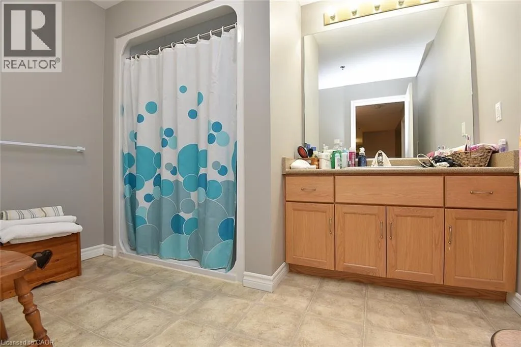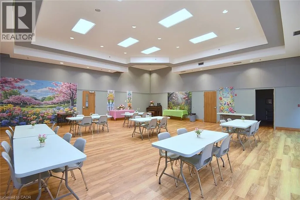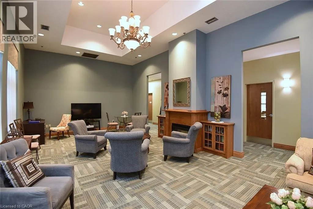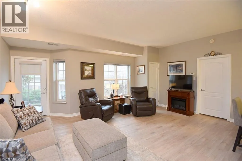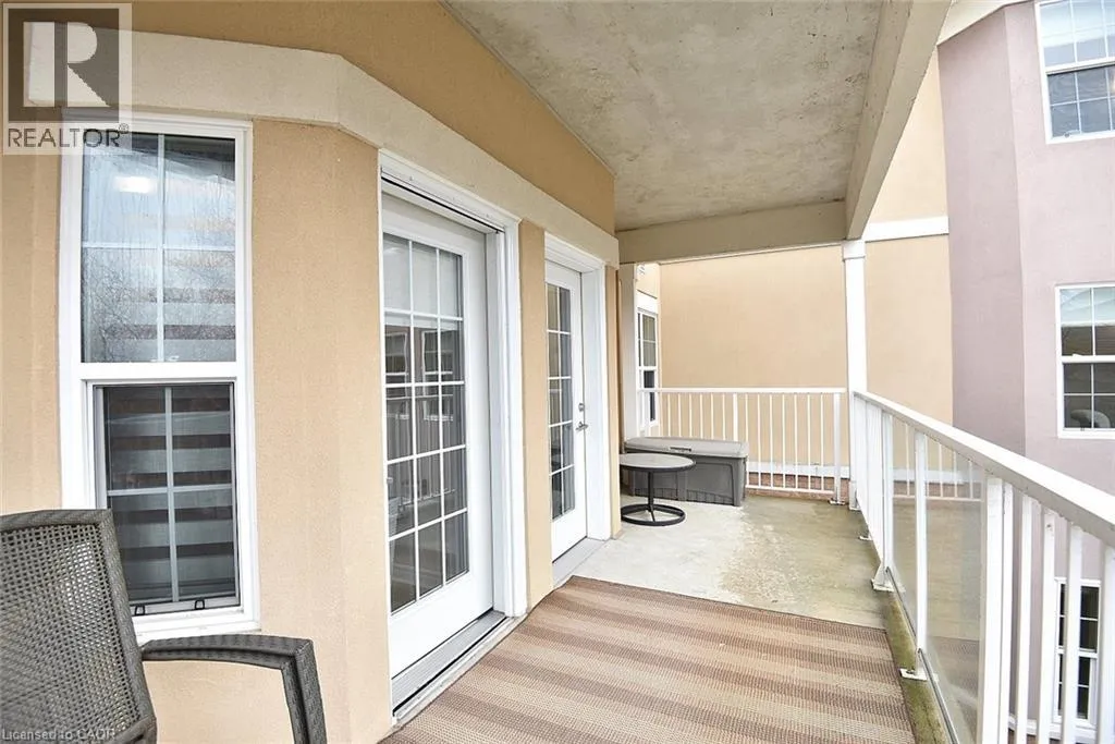 In between Broad Street and Lock Street Welcome to the upscale retirement community, Village on the Grand. The Cambridge model, 1300 square feet with 2 Beds + Dining area can be converted to den, 2 baths, 100 sq.ft. Balcony, Primary BR with Walk-In Closet. Built-In Shower Seat, large 2nd BR. The unit, Open Concept, new professionally installed laminate flooring with innovative electric opening and closing window coverings. Enjoy your private balcony through the sliding doors off the spacious living room. The open concept provides an atmosphere of social interaction from Kitchen to Living room. This sought after 55+ facility includes an Indoor Pool, Community Hall, Games Room, Lounge, Craft Room & more. Parking in Front Lot near main entrance. There is an On Site Superintendent M-F., conveniently located next door to Haldimand War Memorial Hospital and Pharmacy. The location close to shopping, the downtown and the Beautiful Grand River, allows the residents to continue the enjoyment of life outside of their residence. (id:27476)