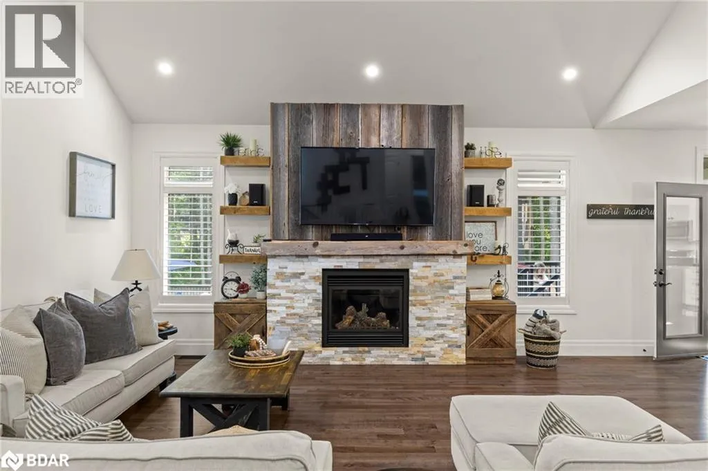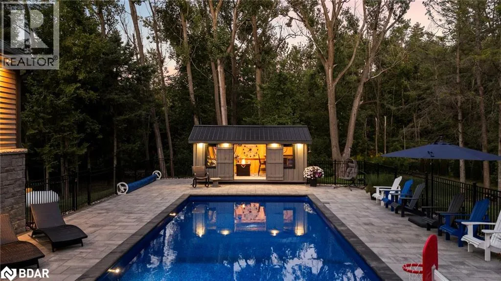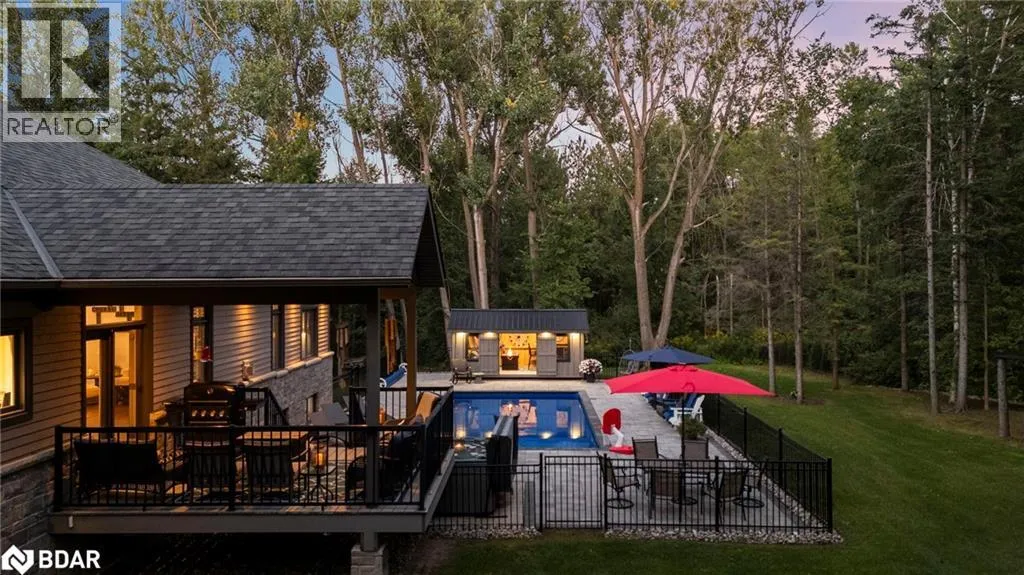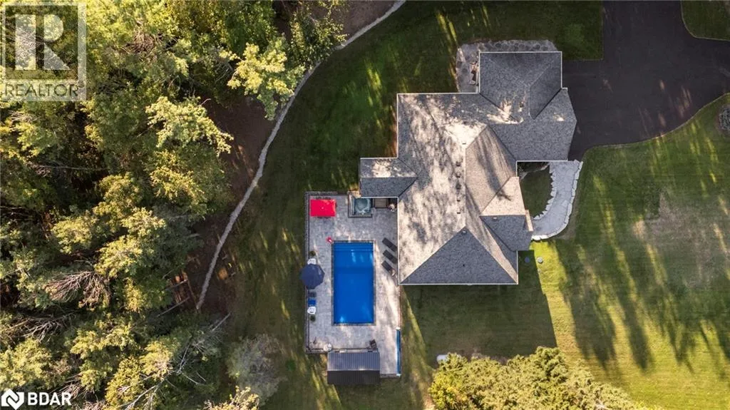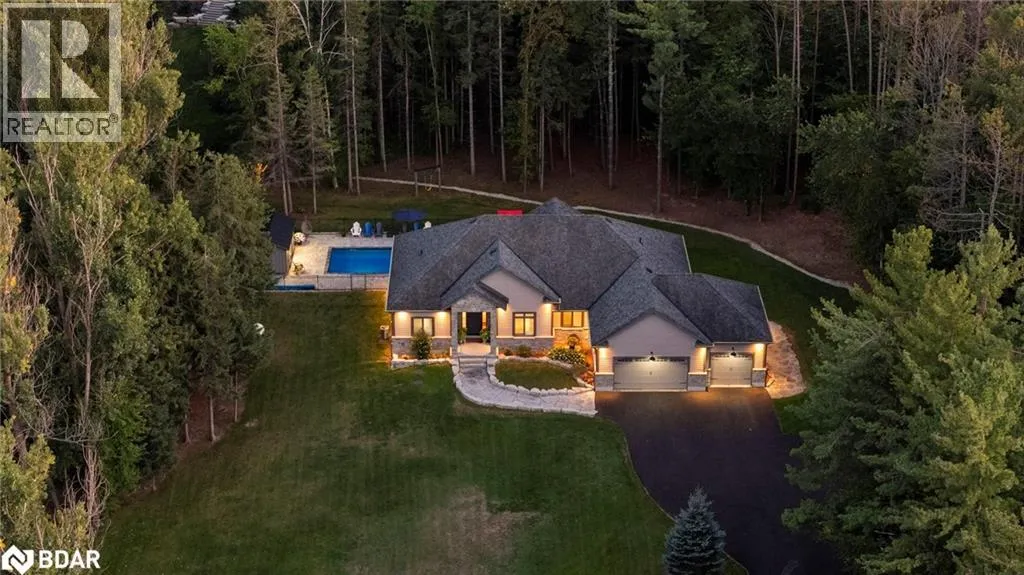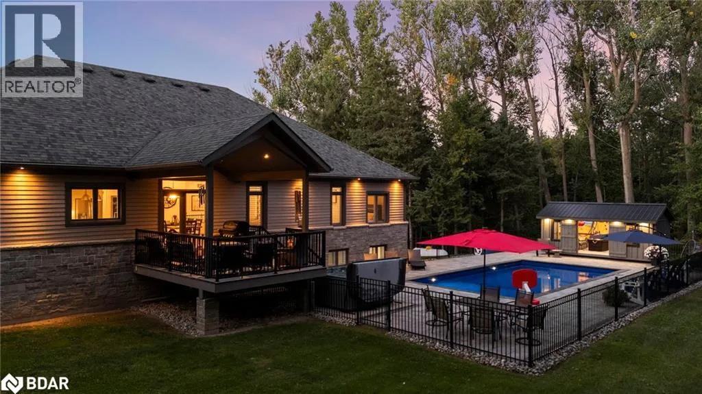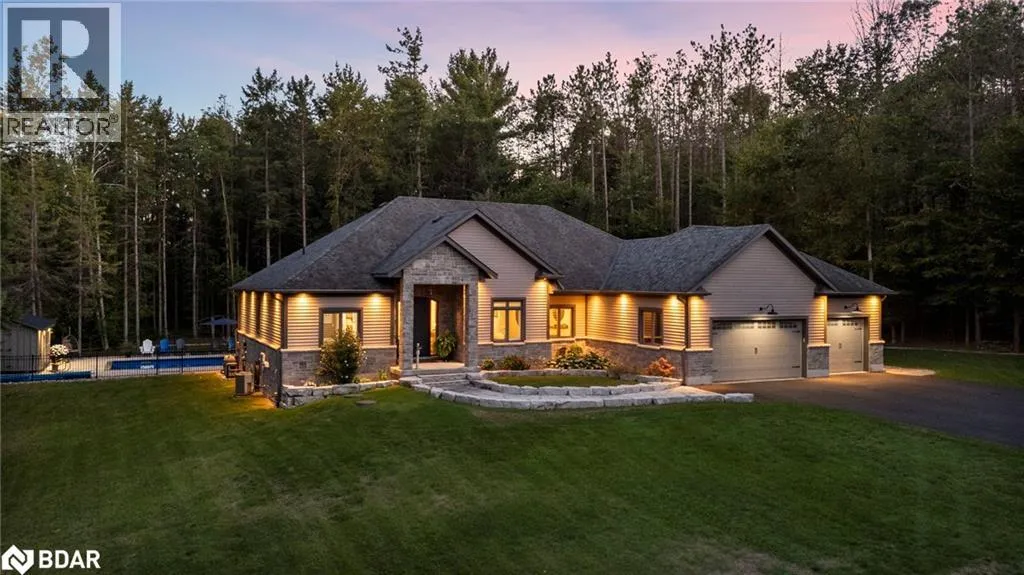 HWY 124 to Sydenham Trail Your Private Resort, Every Day of the Year. Tucked away on 2.5 acres of mature trees and rolling landscape, this custom-built home isnât just a place to live - itâs a lifestyle. From the moment you arrive, youâll feel the peace and privacy of country living, all while being steps from walking trails and minutes from town conveniences. Inside, soaring vaulted ceilings and a floor-to-ceiling propane fireplace set the tone for gatherings with family and friends. The open-concept design flows seamlessly from the living and dining area into a chefâs kitchen with quartz countertops, extended cabinetry, stainless steel appliances, and a striking glass backsplash. Every detail has been crafted for both function and style. The main floor offers four bedrooms, including a primary suite designed as a true retreat, complete with a spa-like 5-piece ensuite and walk-in closet. The finished lower level with private garage entrance extends the lifestyleâwhether you need a guest suite, home gym, or office. A 5th bedroom, 3-pc bath, and expansive mudroom with storage make the space versatile and practical. Step outside and discover why this property is truly exceptional. A saltwater pool glistens in the sun, paired with a hot tub and covered deck that invite you to host summer parties, quiet evening dinners, or simply unwind after a long day. With walking trails at your doorstep and a backyard that feels like a private resort, this home delivers a lifestyle most only dream of. Luxury, privacy, and connection to natureâthis home is more than a residence. Itâs where family memories are made, friends gather, and every day feels like a getaway. (id:27476)