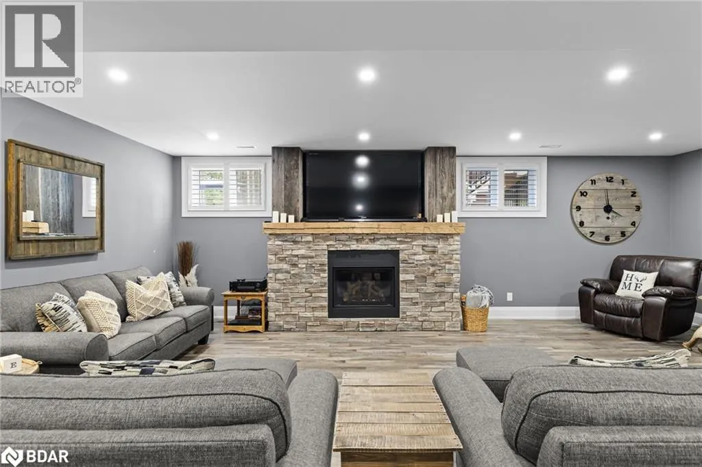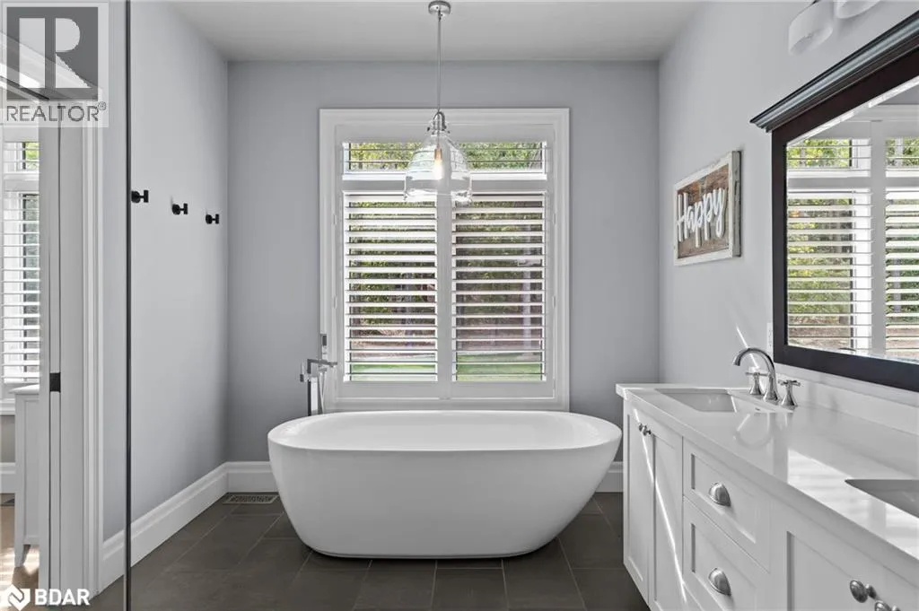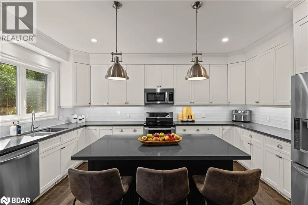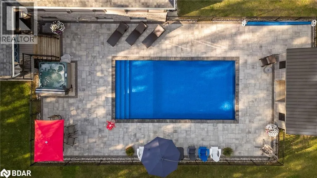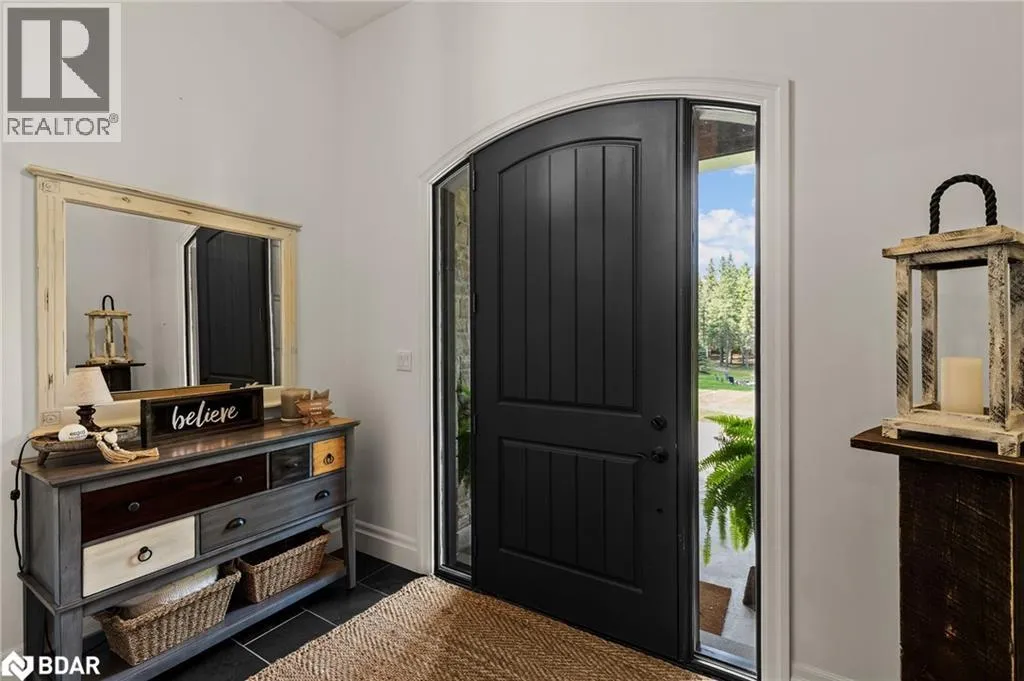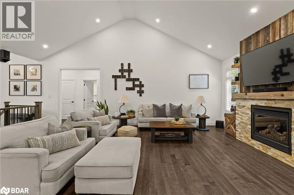 HWY 124 to Sydenham Trail Your Private Resort, Every Day of the Year. Tucked away on 2.5 acres of mature trees and rolling landscape, this custom-built home isnât just a place to live - itâs a lifestyle. From the moment you arrive, youâll feel the peace and privacy of country living, all while being steps from walking trails and minutes from town conveniences. Inside, soaring vaulted ceilings and a floor-to-ceiling propane fireplace set the tone for gatherings with family and friends. The open-concept design flows seamlessly from the living and dining area into a chefâs kitchen with quartz countertops, extended cabinetry, stainless steel appliances, and a striking glass backsplash. Every detail has been crafted for both function and style. The main floor offers four bedrooms, including a primary suite designed as a true retreat, complete with a spa-like 5-piece ensuite and walk-in closet. The finished lower level with private garage entrance extends the lifestyleâwhether you need a guest suite, home gym, or office. A 5th bedroom, 3-pc bath, and expansive mudroom with storage make the space versatile and practical. Step outside and discover why this property is truly exceptional. A saltwater pool glistens in the sun, paired with a hot tub and covered deck that invite you to host summer parties, quiet evening dinners, or simply unwind after a long day. With walking trails at your doorstep and a backyard that feels like a private resort, this home delivers a lifestyle most only dream of. Luxury, privacy, and connection to natureâthis home is more than a residence. Itâs where family memories are made, friends gather, and every day feels like a getaway. (id:27476)