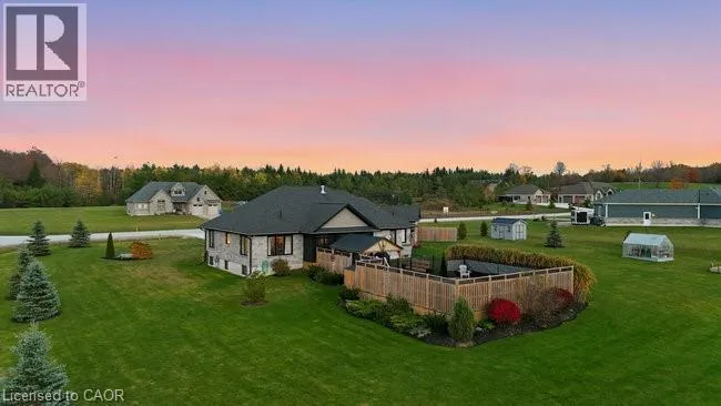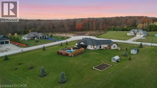 Marshall Heights Rd / Southgate Gleneig Townline Welcome to this exceptional bungalow, perfectly situated on a spacious lot offering privacy, style, and room to entertain. The property features an impressive 4-car garage and a driveway that accommodates 12+ vehicles -perfect for gatherings or hobby enthusiasts. Step inside to an open-concept main floor filled with natural light and modern finishes. The bright, upgraded kitchen is a chef's dream, featuring a double-door pantry, Italian pot filler, and under-island garbage bins -beautifully blending function and design. The mudroom offers custom cabinetry and convenient direct garage access. The primary bedroom is a true retreat, showcasing a coffered ceiling, custom reading lights, and a luxurious 5-piece ensuite with a walk-in shower and free-standing tub. The second bedroom is currently used as a home office, offering flexibility for your lifestyle. A finished basement provides plenty of additional living space, including two additional spacious bedrooms, a home gym complete with sauna, and a 4-piece bathroom-ideal for guests or family. Step outside to your own private oasis: a covered lanai, on-ground pool, and hot tub create the perfect setting for relaxation and entertaining - all fenced and landscaped to provide the ultimate in privacy. This property truly offers the best of country living with refined style and comfort -an exceptional opportunity in beautiful West Grey. (id:27476)