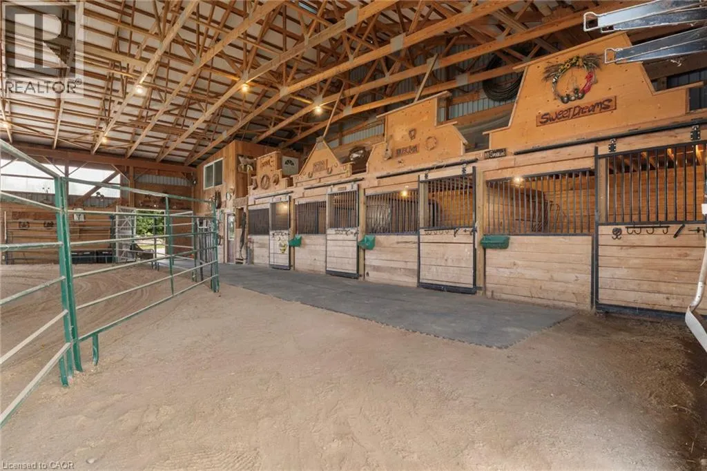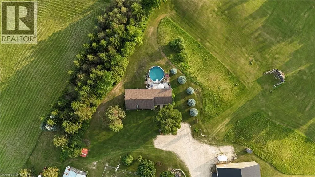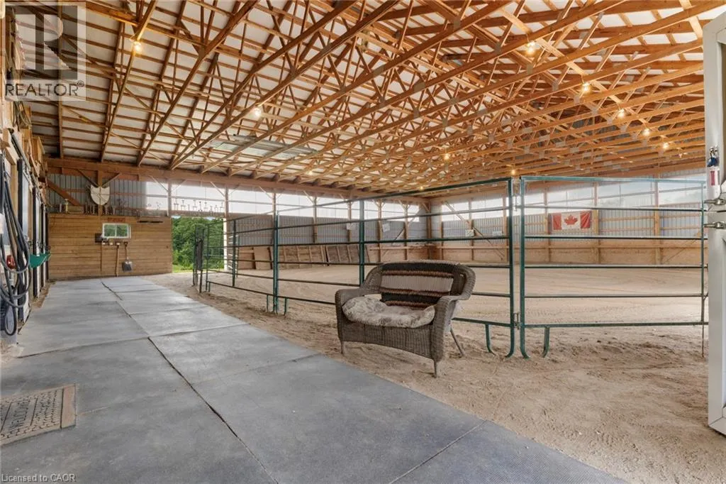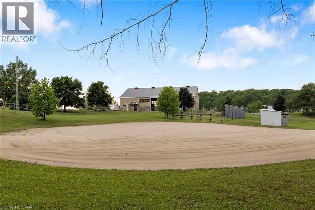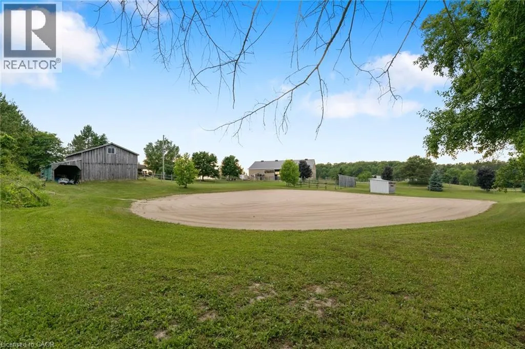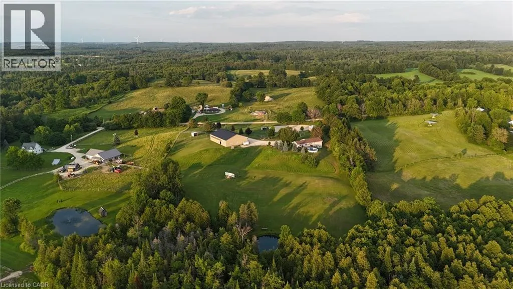 From Durham head east on Grey Rd 4, and right on Baseline Rd. Beautiful 6.43-acre hobby farm offering peaceful country living with excellent equestrian facilities and stunning sunrise and sunset views. The standout feature is the 50' x 80' indoor riding arena with steel siding, four hardwood stalls, tack room, rubber-matted tack-up area, hay storage above stalls, and a viewing room or office overlooking the arena. Three exit points, including an oversized sliding door with motorhome clearance, provide easy access.Outside you'll find a 100' x 150' sand riding ring and three fenced paddocks with run-in sheds and electric fencing-perfect for horses or other animals. Water access is available at the arena, paddocks, and bunkie. The bunkie and stable both have electricity, and the bunkie offers flexible space for a workshop, studio, or guest accommodation.The custom addition of 1994 (Schwindt W Building & Sons Contractors) completes this 3-bedroom, 2-bath ranch bungalow offers approx. 1,885 sq ft of finished living space including a walk-out basement. Features include a wrap-around deck, bright kitchen with walkout to the deck and above-ground pool, spacious living/dining area with large windows, main-floor laundry (potential additional bedroom), and a primary bedroom with ensuite and skylight. Recently added mudroom provides a practical space for boots and riding gear.The finished basement includes a walkout to the backyard, rec room, bedroom, and storage. Outdoor highlights include an above-ground pool with newer heater (2022), new liner and pump (2024), a small pond, and a private road providing access to the back field. Several riding trails are located just minutes away.A rare opportunity for equestrians seeking a well-equipped property in a convenient rural location. (id:27476)