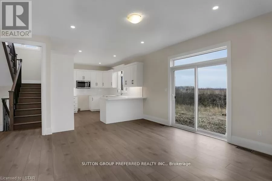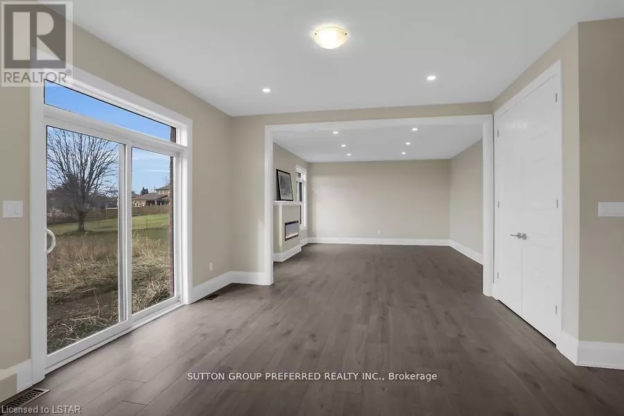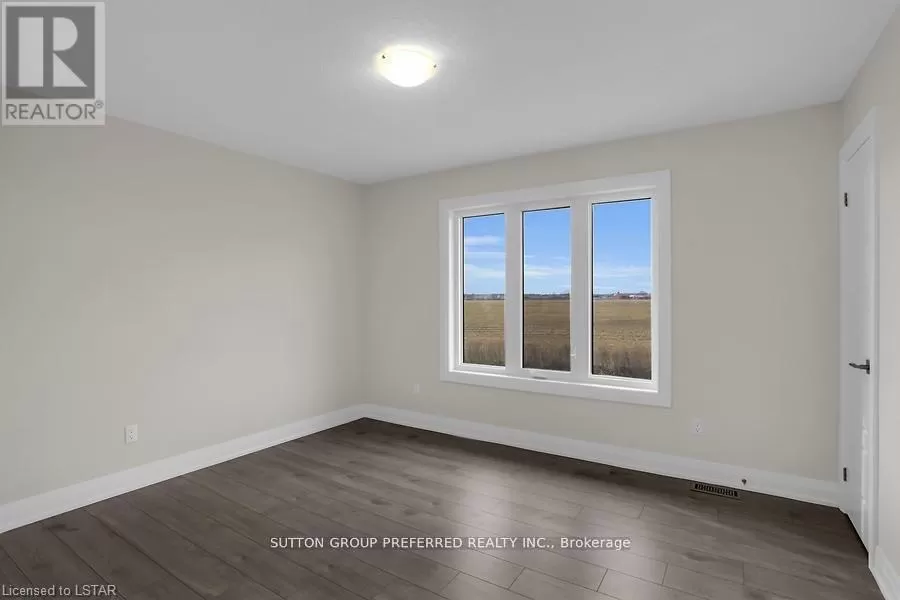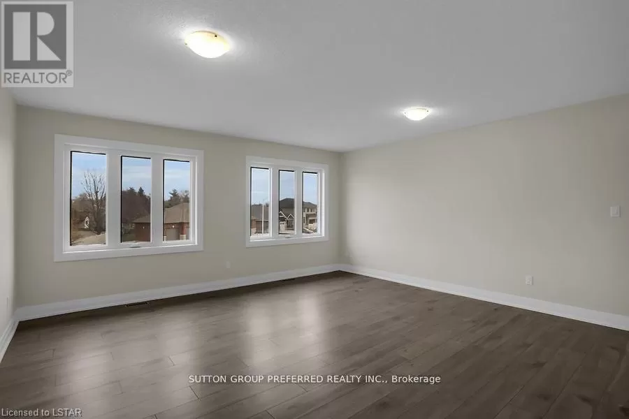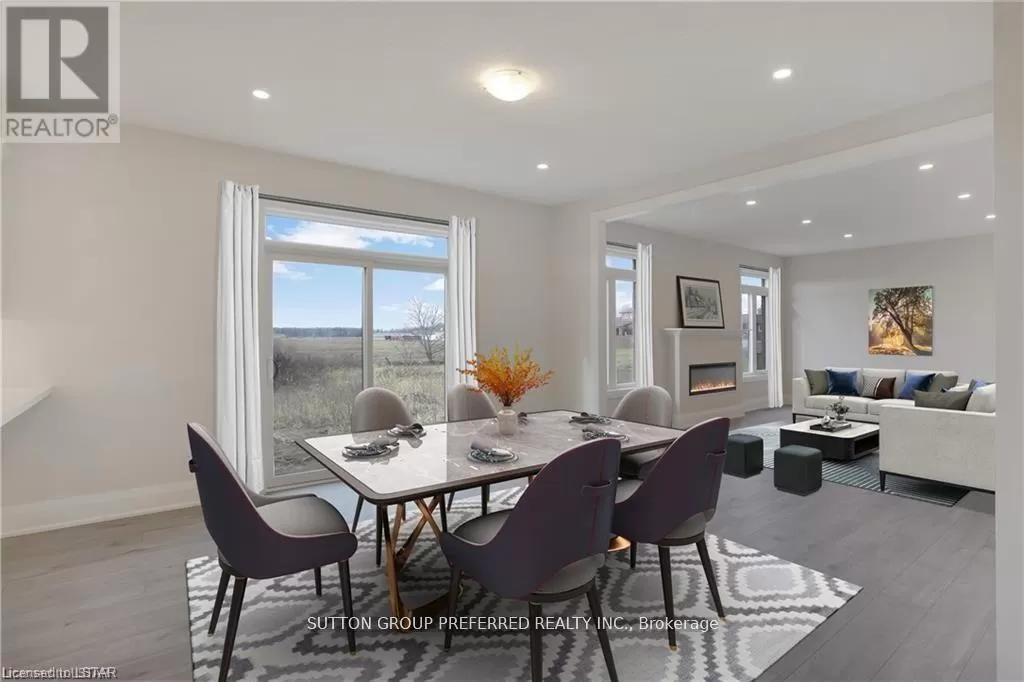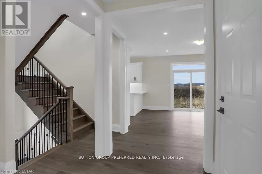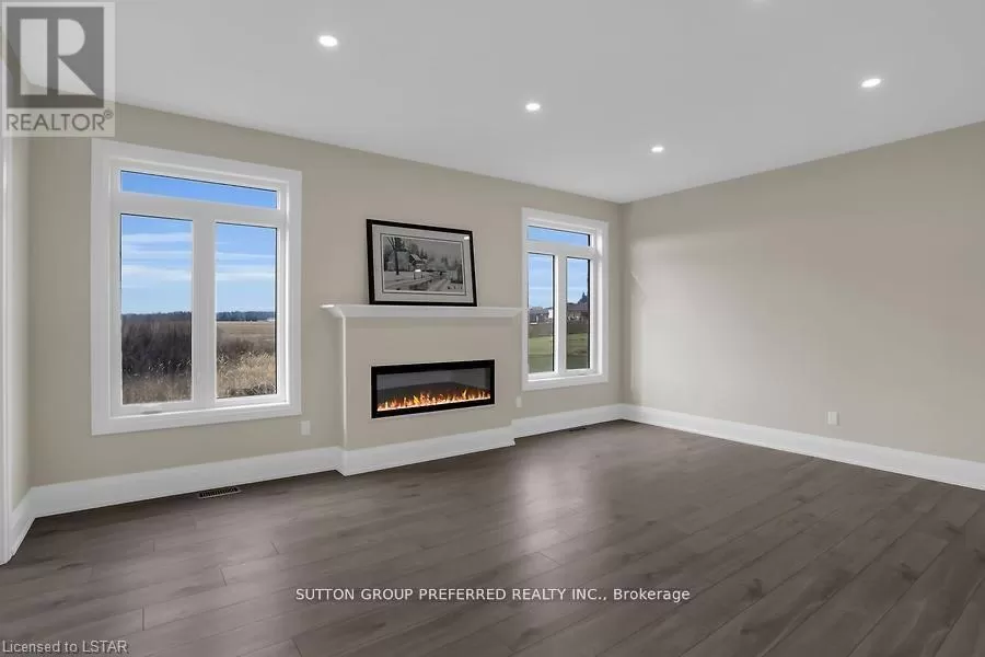 South off 401 on Currie Road to Pioneer Line (first road). Turn left on Miller Road to Leitch Street. Turn right on Leitch Street and property is on right. Stunning executive 2-storey with 5 bedrooms& 4 bathrooms is on a premium pie shaped lot backing onto farmland! This brick & stone 2851 sqft family home with 3 car attached garage is ready to move in! Tastefully designed with high quality finishing, this home features an open concept floor plan. Great room showcases the electric fireplace. Quartz countertops in bright kitchen and bathrooms. 4-pc ensuite with large glass corner shower & 2 sinks and walk-in closet off main bedroom. Convenient second floor laundry with cupboards. Impressive 9ft ceilings, 8ft doors, beautiful luxury plank vinyl & gleaming tile floors. Desirable location in Highland Estate subdivision close to park, walking path, rec centre, shopping, library, splash pad, pickle ball court, & public school with quick access to the 401. Move in and enjoy this family home. Other new homes for sale - contact listing agent. (id:27476)