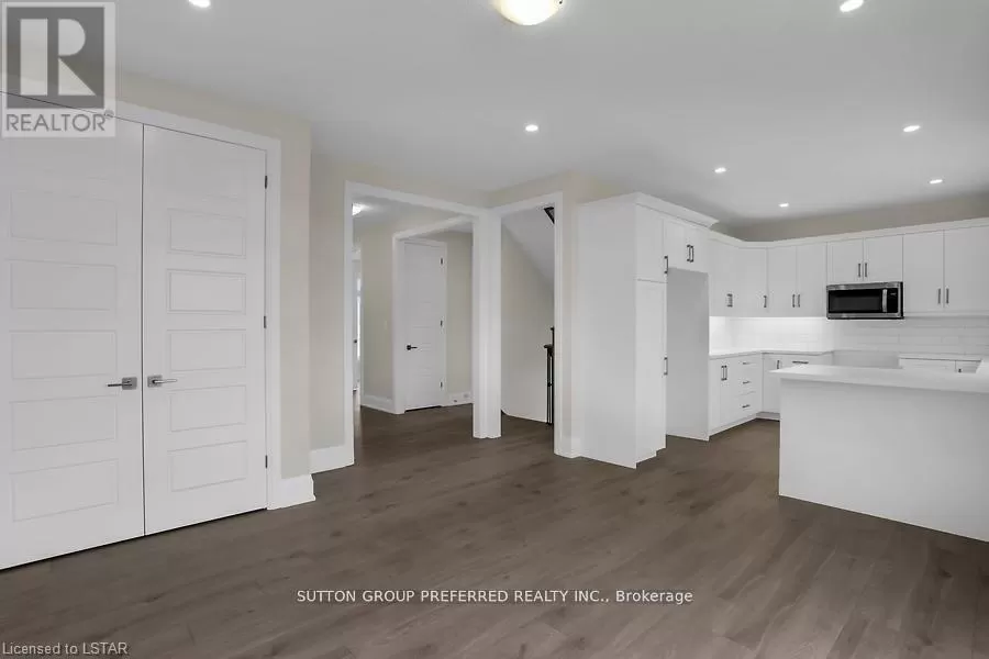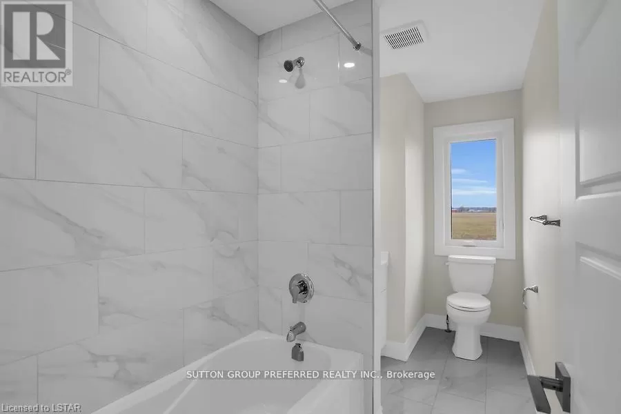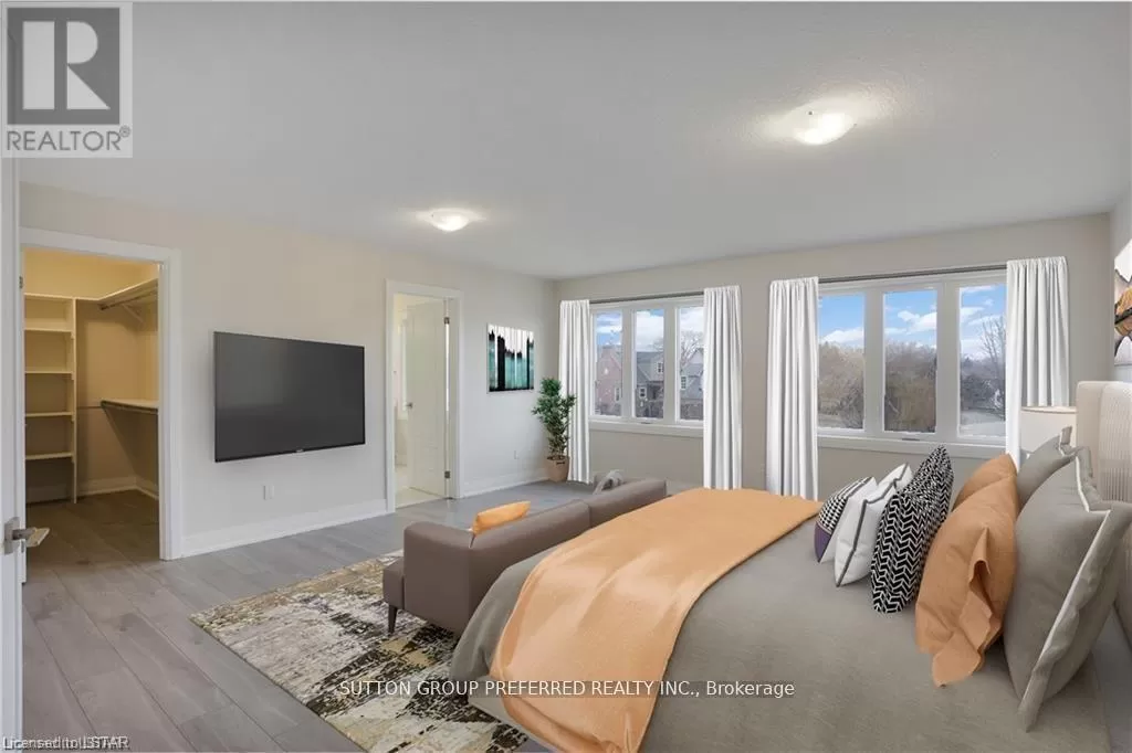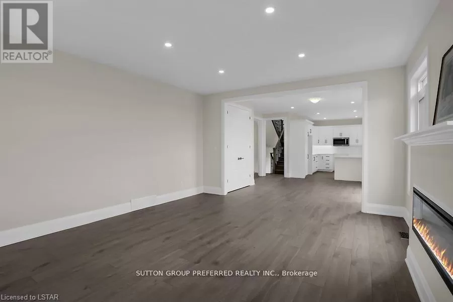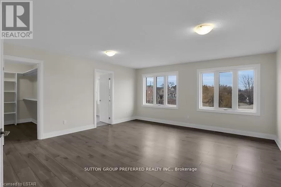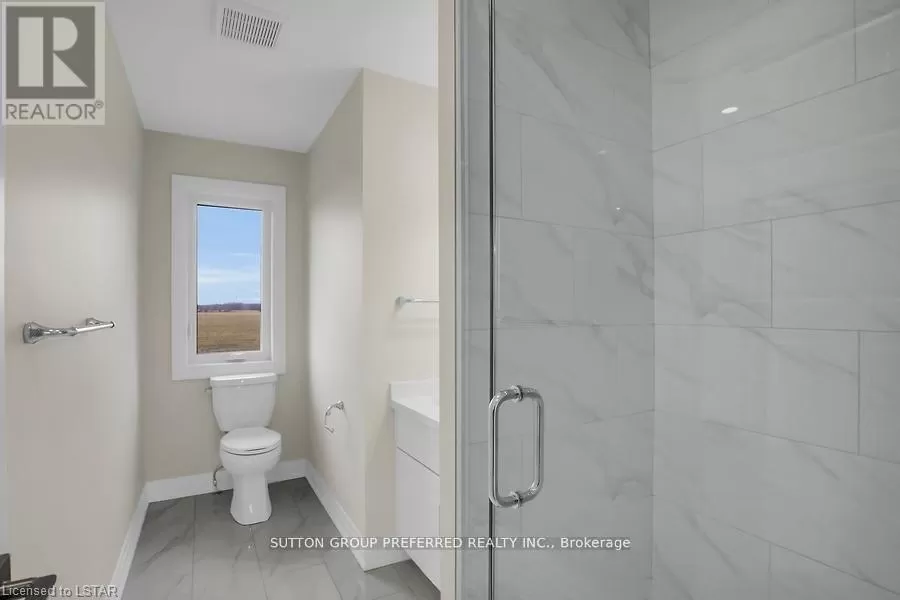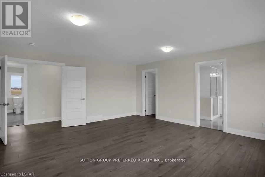 South off 401 on Currie Road to Pioneer Line (first road). Turn left on Miller Road to Leitch Street. Turn right on Leitch Street and property is on right. Stunning executive 2-storey with 5 bedrooms& 4 bathrooms is on a premium pie shaped lot backing onto farmland! This brick & stone 2851 sqft family home with 3 car attached garage is ready to move in! Tastefully designed with high quality finishing, this home features an open concept floor plan. Great room showcases the electric fireplace. Quartz countertops in bright kitchen and bathrooms. 4-pc ensuite with large glass corner shower & 2 sinks and walk-in closet off main bedroom. Convenient second floor laundry with cupboards. Impressive 9ft ceilings, 8ft doors, beautiful luxury plank vinyl & gleaming tile floors. Desirable location in Highland Estate subdivision close to park, walking path, rec centre, shopping, library, splash pad, pickle ball court, & public school with quick access to the 401. Move in and enjoy this family home. Other new homes for sale - contact listing agent. (id:27476)