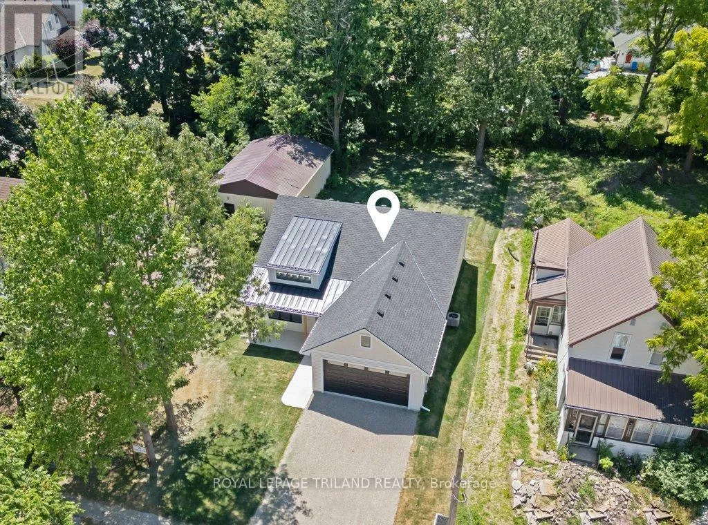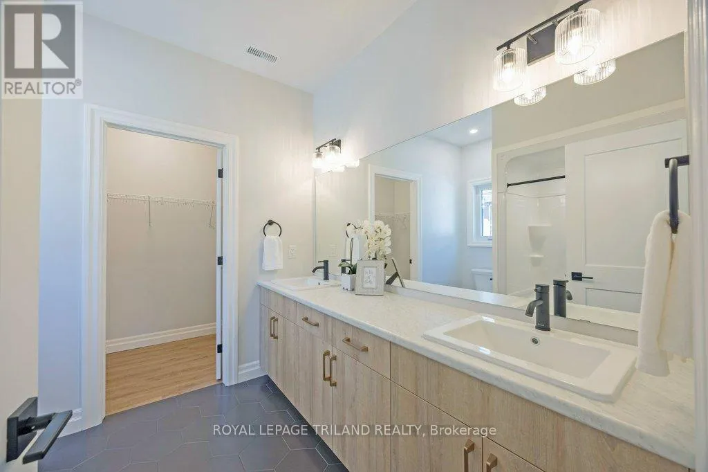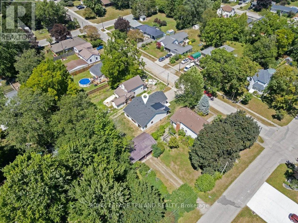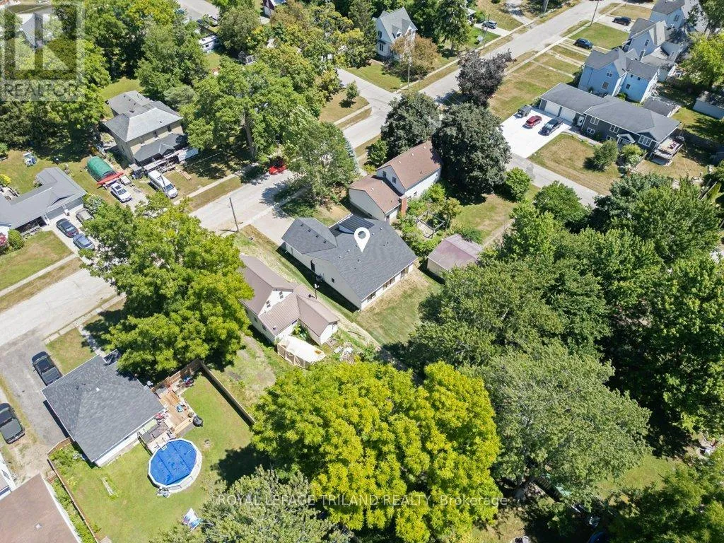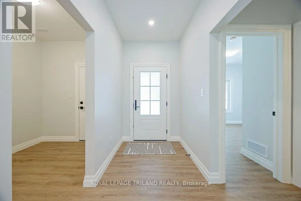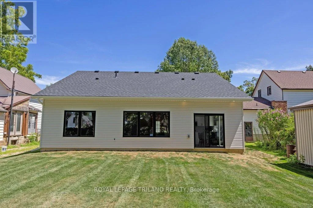 Cross Streets: Ridge St. ** Directions: From Currie Rd, go south, left on Jordan St., right on Nancy. This new, NO-STEP bungalow with a covered front porch sits on a spacious 165ft lot, surrounded by mature trees, and includes a $10k fencing allowance. Offering 1,369 sq. ft. of living space, a double garage(with included asphalt driveway), and high-quality finishes, this home provides exceptional value and upgrades. Located in the growing town of Dutton, just 30 minutes from London with easy access to the 401, it blends country charm with modern convenience. Dutton offers a variety of amenities, including a community center, public school, park, sports fields, splash pad, pool, shopping, businesses at 174 Currie Rd., restaurants, a library, medical office, and Gritfit gym. The home features a thoughtful layout with 9ft ceilings, a welcoming front foyer, and a mudroom with a closet, offering garage access and side yard entry. The mudroom leads to the main-floor laundry room, complete with a sink. The open-concept living, kitchen, and dining area boasts laminate floors, large windows, and a patio door that opens to the backyard. The kitchen includes quartz counters, soft-close cabinetry, a tile backsplash, an undermount sink, and a pantry closet. The primary bedroom offers a serene view of the yard, along with an ensuite featuring double sinks, a shower with a built-in seat, tile floors, and a walk-in closet. The second bedroom includes a spacious closet and is conveniently located near a linen closet and the second bathroom, which offers a tub/shower combo and tile flooring. Included with the home is an asphalt driveway, a $10k fencing allowance, and a Tarion Warranty. HST is included but rebated to the builder, and taxes will be assessed based on the MPAC valuation. (id:27476)