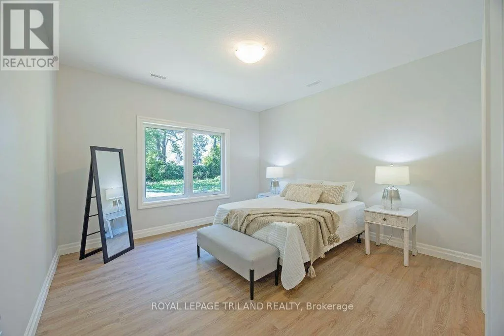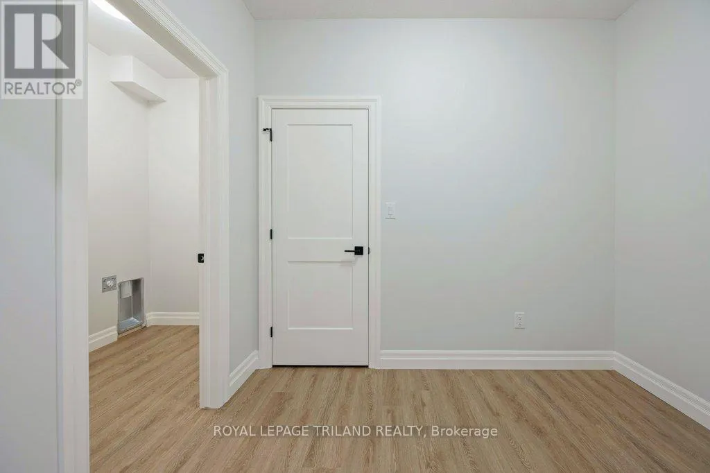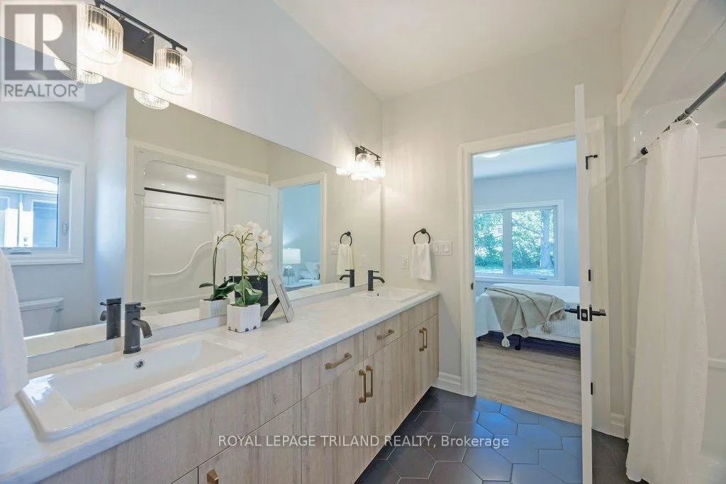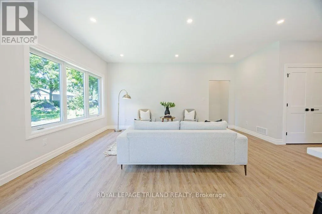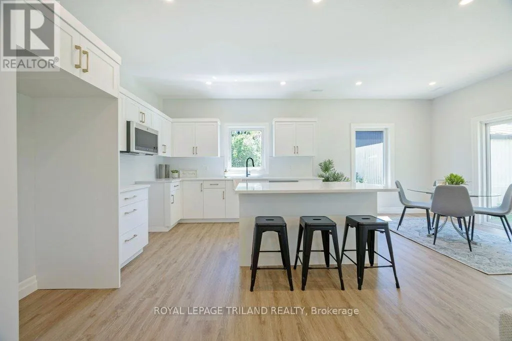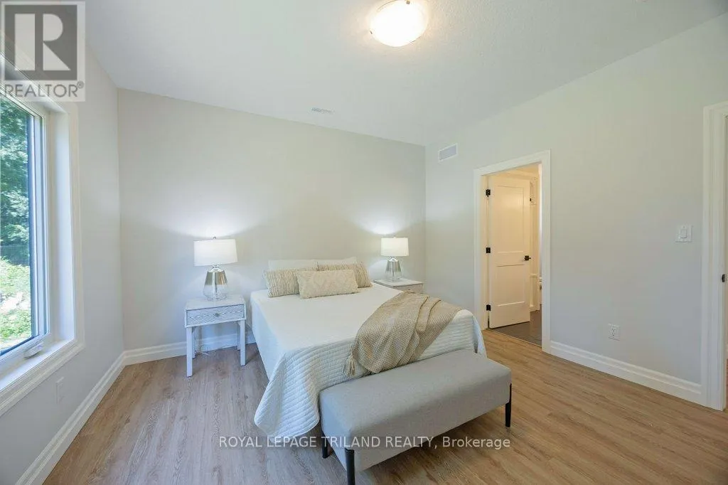 Cross Streets: Ridge St. ** Directions: From Currie Rd, go south, left on Jordan St., right on Nancy. This new, NO-STEP bungalow with a covered front porch sits on a spacious 165ft lot, surrounded by mature trees, and includes a $10k fencing allowance. Offering 1,369 sq. ft. of living space, a double garage(with included asphalt driveway), and high-quality finishes, this home provides exceptional value and upgrades. Located in the growing town of Dutton, just 30 minutes from London with easy access to the 401, it blends country charm with modern convenience. Dutton offers a variety of amenities, including a community center, public school, park, sports fields, splash pad, pool, shopping, businesses at 174 Currie Rd., restaurants, a library, medical office, and Gritfit gym. The home features a thoughtful layout with 9ft ceilings, a welcoming front foyer, and a mudroom with a closet, offering garage access and side yard entry. The mudroom leads to the main-floor laundry room, complete with a sink. The open-concept living, kitchen, and dining area boasts laminate floors, large windows, and a patio door that opens to the backyard. The kitchen includes quartz counters, soft-close cabinetry, a tile backsplash, an undermount sink, and a pantry closet. The primary bedroom offers a serene view of the yard, along with an ensuite featuring double sinks, a shower with a built-in seat, tile floors, and a walk-in closet. The second bedroom includes a spacious closet and is conveniently located near a linen closet and the second bathroom, which offers a tub/shower combo and tile flooring. Included with the home is an asphalt driveway, a $10k fencing allowance, and a Tarion Warranty. HST is included but rebated to the builder, and taxes will be assessed based on the MPAC valuation. (id:27476)
