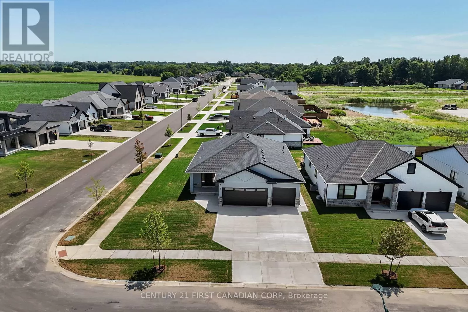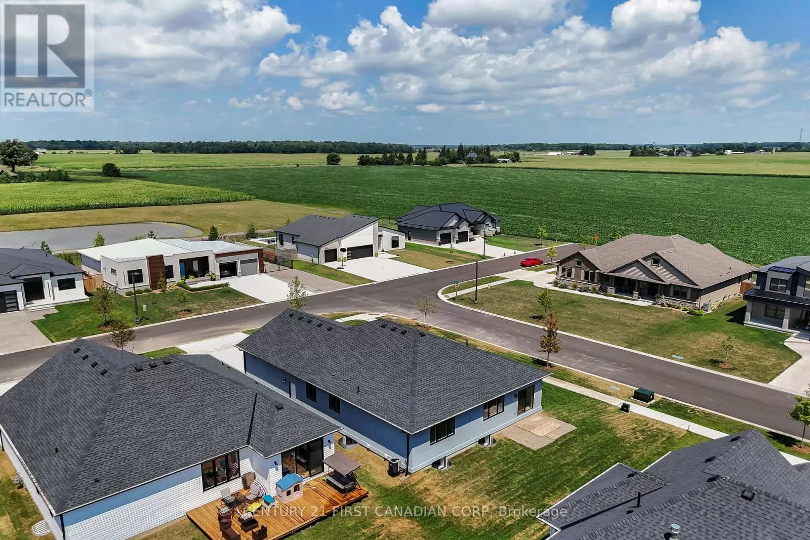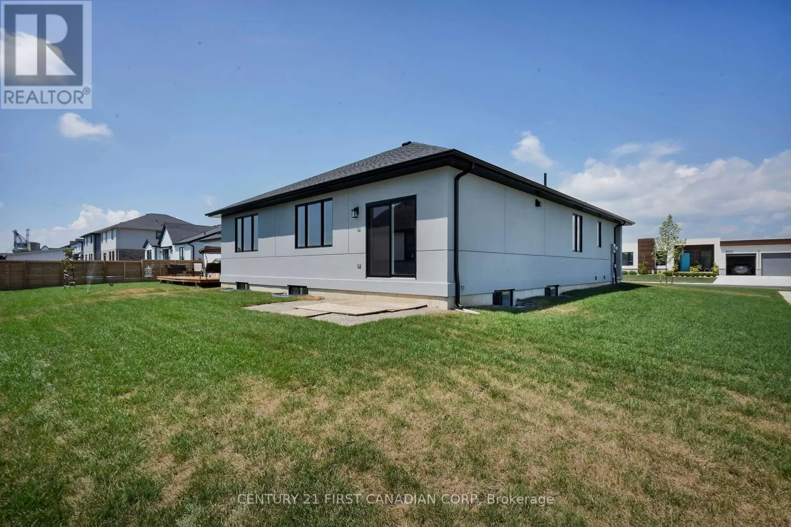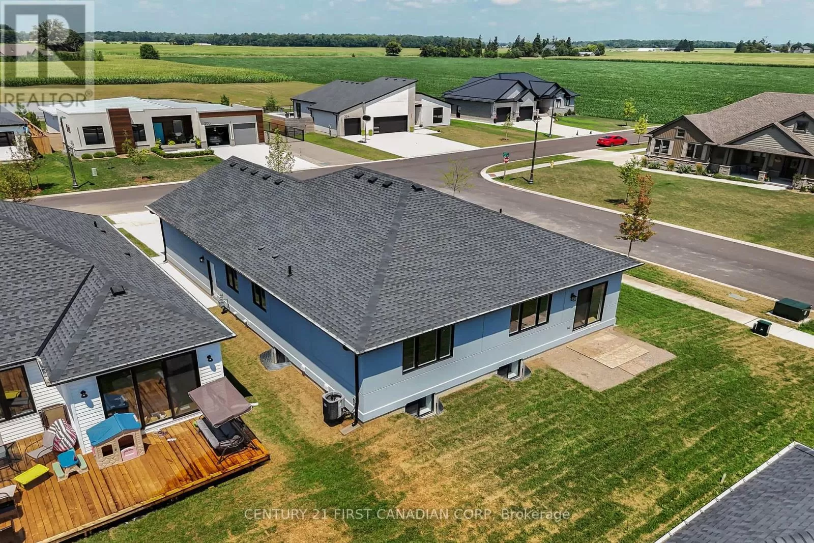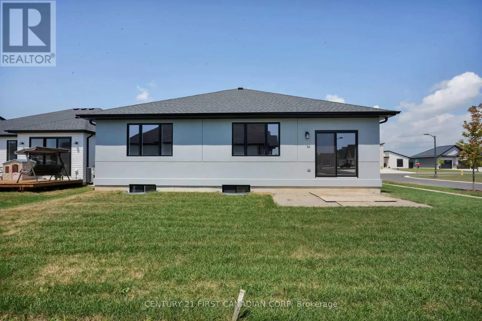 Cross Streets: Lila Street. ** Directions: NANCY & LILA. Step inside this sleek and contemporary bungalow in Dutton's highly sought after neighbourhood, Lila North! This brand new build boasts 3,275 sq.ft of refined finished living space, high end finishes throughout, and was designed with the modern family in mind. The main floor is generously scaled with 9ft ceilings, 8ft interior doors, engineered hardwood, and oversized windows throughout - making the home feel both bright and luxurious. The chefs kitchen is equipped with floor to ceiling soft-close cabinetry, quartz countertops, and a pantry to provide you with additional storage. The kitchen is an entertainers dream as it opens up to the dining room and warm & inviting living room which is perfect for hosting family and friends. The living room is the perfect spot to cozy up in after a long day - featuring a custom tv & electric fireplace surround wall and stunning coffered ceilings constructed out of wooden beams. The primary suite is located right off of the living room, has a custom accent wall, a HUGE walk-in closet, and a spa-like 5pc bathroom with his & hers double vanity, a soaker tub perfect for relaxing, and a tiled shower. The other 2 bedrooms on the main floor are generously sized, and also feature eye catching accent walls, and share a 4pc bathroom. The mud room doubles as main floor laundry and has built in cabinetry, a custom bench and a convenient 2pc powder room - perfect for guests. A huge bonus that this home offers is a FULLY FINISHED BASEMENT that is entirely IN-LAW COMPATIBLE! Making your way down to the basement, you will find a continuation of the high ceilings, large egress windows, and light coloured LVP flooring. The lower level has a kitchenette, a huge rec-room that makes a perfect hangout spot for teenagers or man cave, 2 more large bedrooms, a 4pc bathroom, rough-in for lower level laundry, and a separate entrance that leads to the garage (perfect for in-laws). (id:27476)