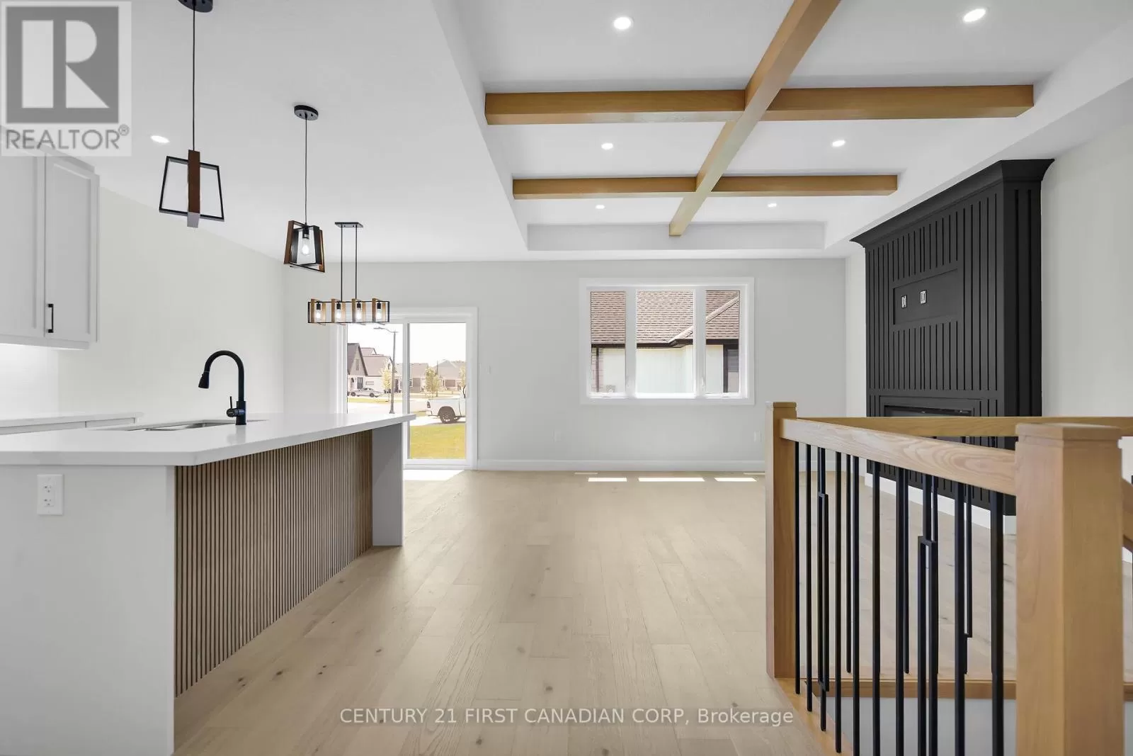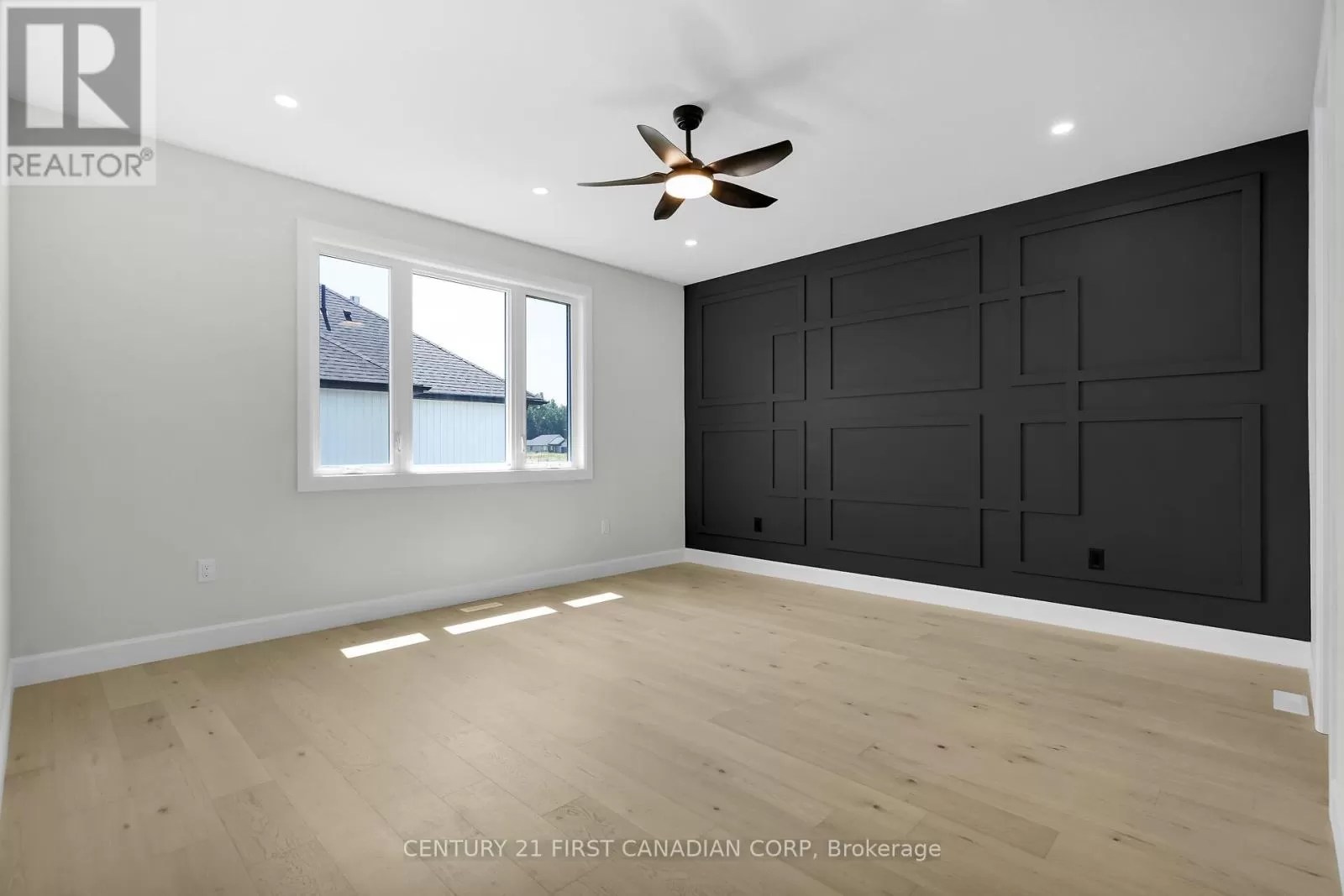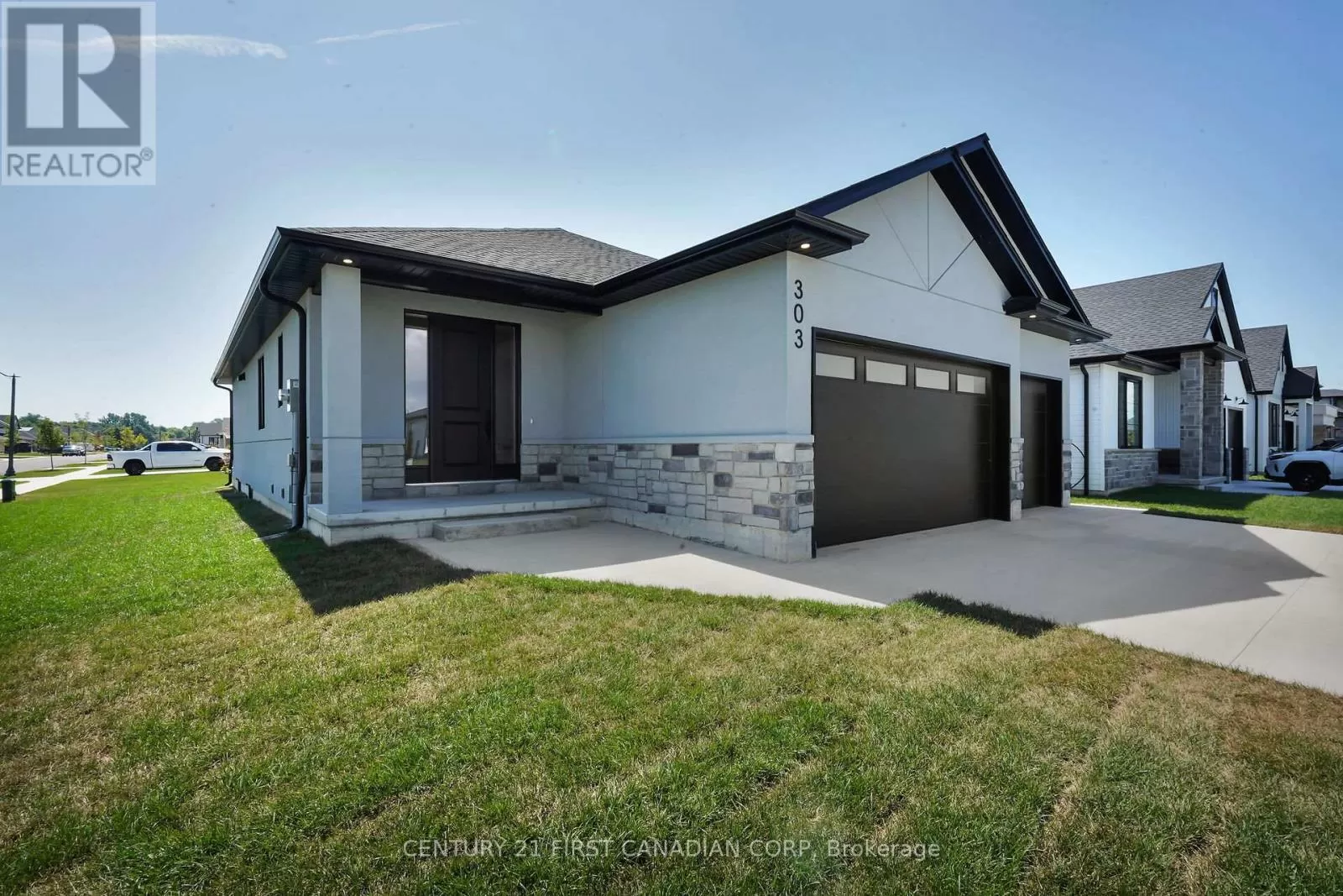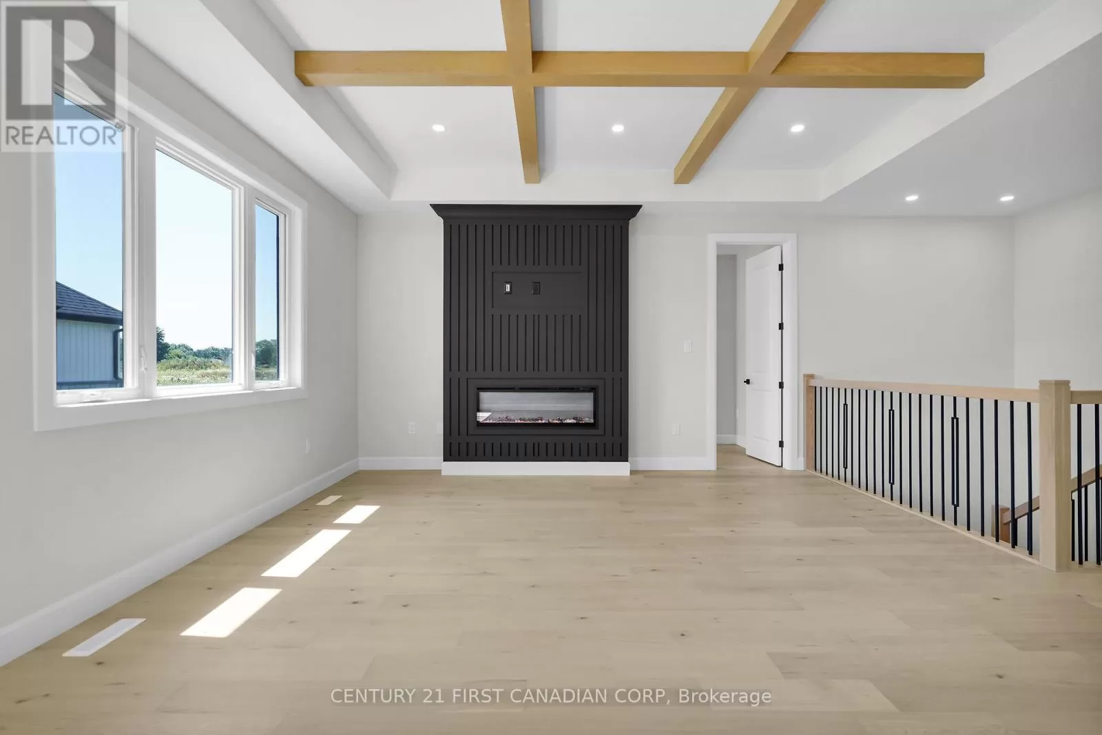 Cross Streets: Lila Street. ** Directions: NANCY & LILA. Step inside this sleek and contemporary bungalow in Dutton's highly sought after neighbourhood, Lila North! This brand new build boasts 3,275 sq.ft of refined finished living space, high end finishes throughout, and was designed with the modern family in mind. The main floor is generously scaled with 9ft ceilings, 8ft interior doors, engineered hardwood, and oversized windows throughout - making the home feel both bright and luxurious. The chefs kitchen is equipped with floor to ceiling soft-close cabinetry, quartz countertops, and a pantry to provide you with additional storage. The kitchen is an entertainers dream as it opens up to the dining room and warm & inviting living room which is perfect for hosting family and friends. The living room is the perfect spot to cozy up in after a long day - featuring a custom tv & electric fireplace surround wall and stunning coffered ceilings constructed out of wooden beams. The primary suite is located right off of the living room, has a custom accent wall, a HUGE walk-in closet, and a spa-like 5pc bathroom with his & hers double vanity, a soaker tub perfect for relaxing, and a tiled shower. The other 2 bedrooms on the main floor are generously sized, and also feature eye catching accent walls, and share a 4pc bathroom. The mud room doubles as main floor laundry and has built in cabinetry, a custom bench and a convenient 2pc powder room - perfect for guests. A huge bonus that this home offers is a FULLY FINISHED BASEMENT that is entirely IN-LAW COMPATIBLE! Making your way down to the basement, you will find a continuation of the high ceilings, large egress windows, and light coloured LVP flooring. The lower level has a kitchenette, a huge rec-room that makes a perfect hangout spot for teenagers or man cave, 2 more large bedrooms, a 4pc bathroom, rough-in for lower level laundry, and a separate entrance that leads to the garage (perfect for in-laws). (id:27476)