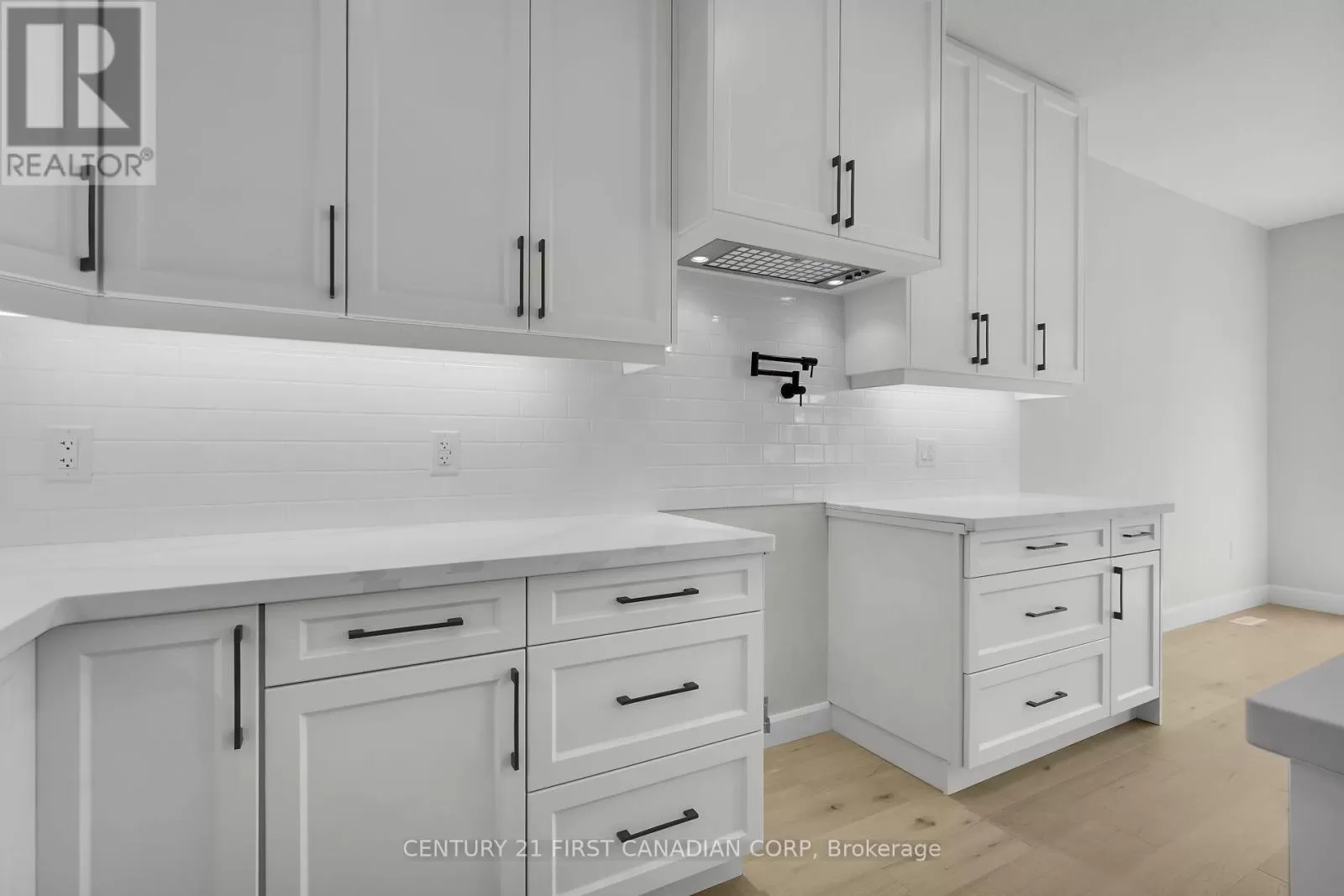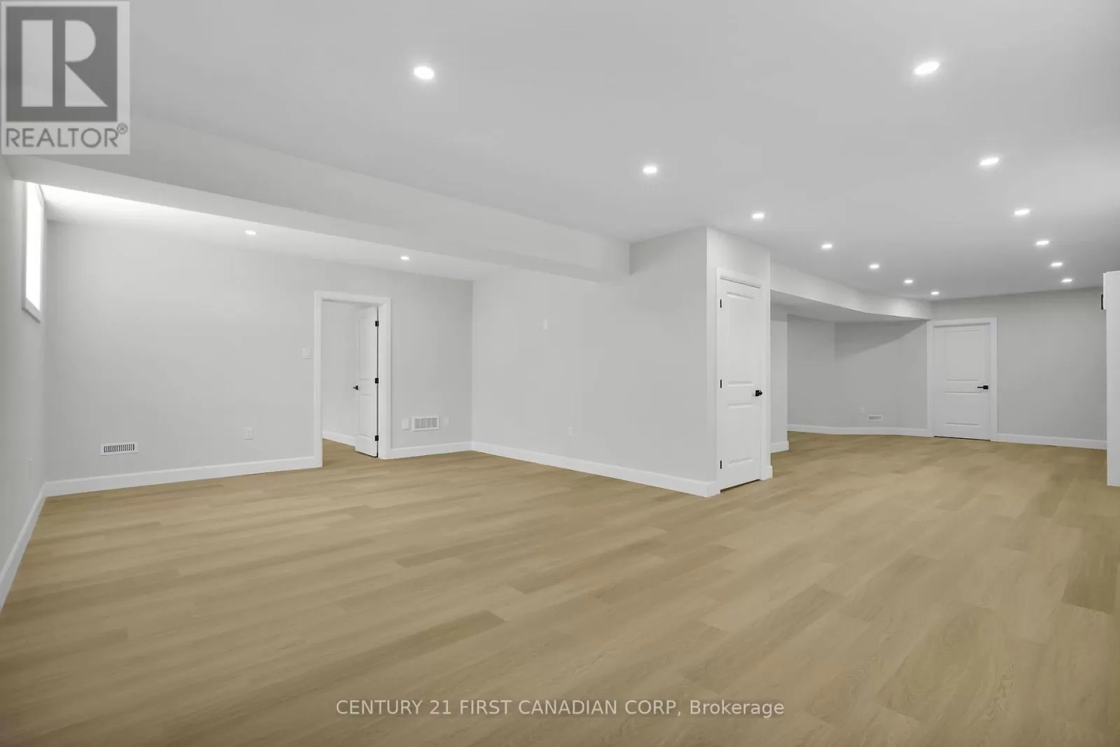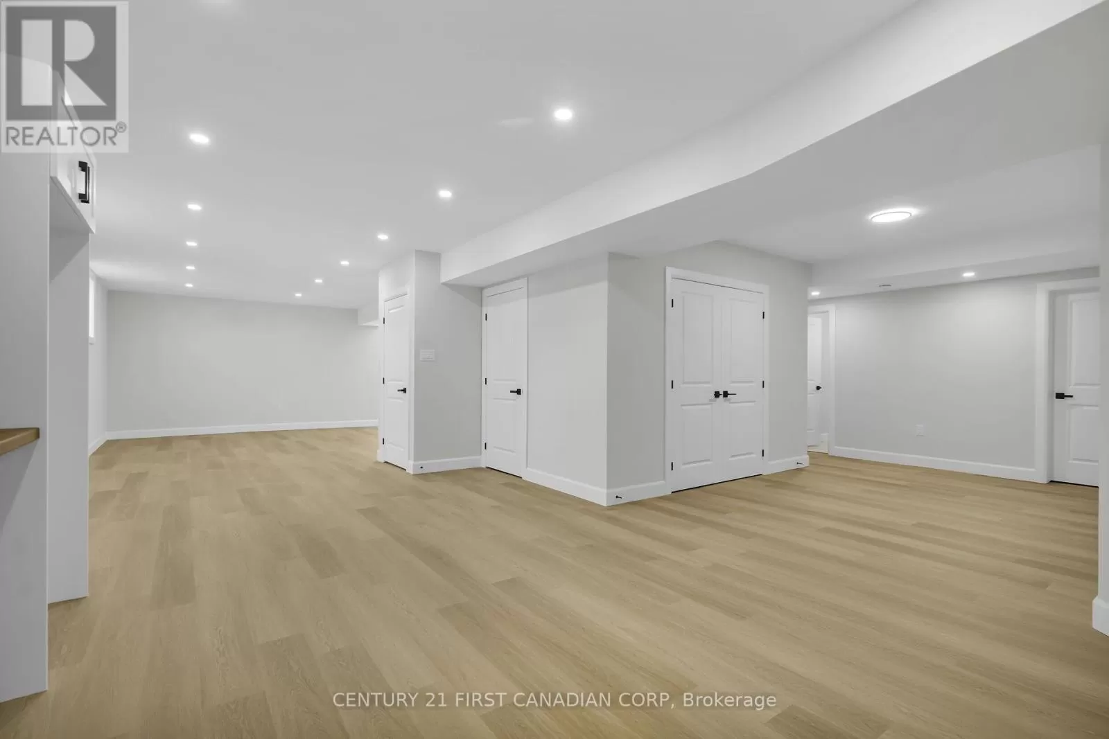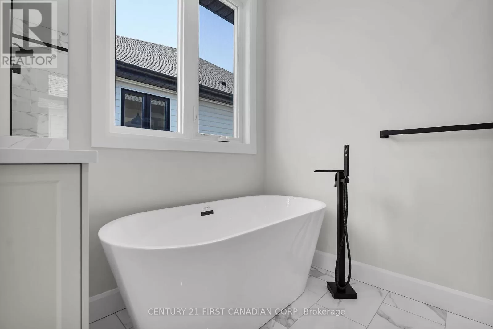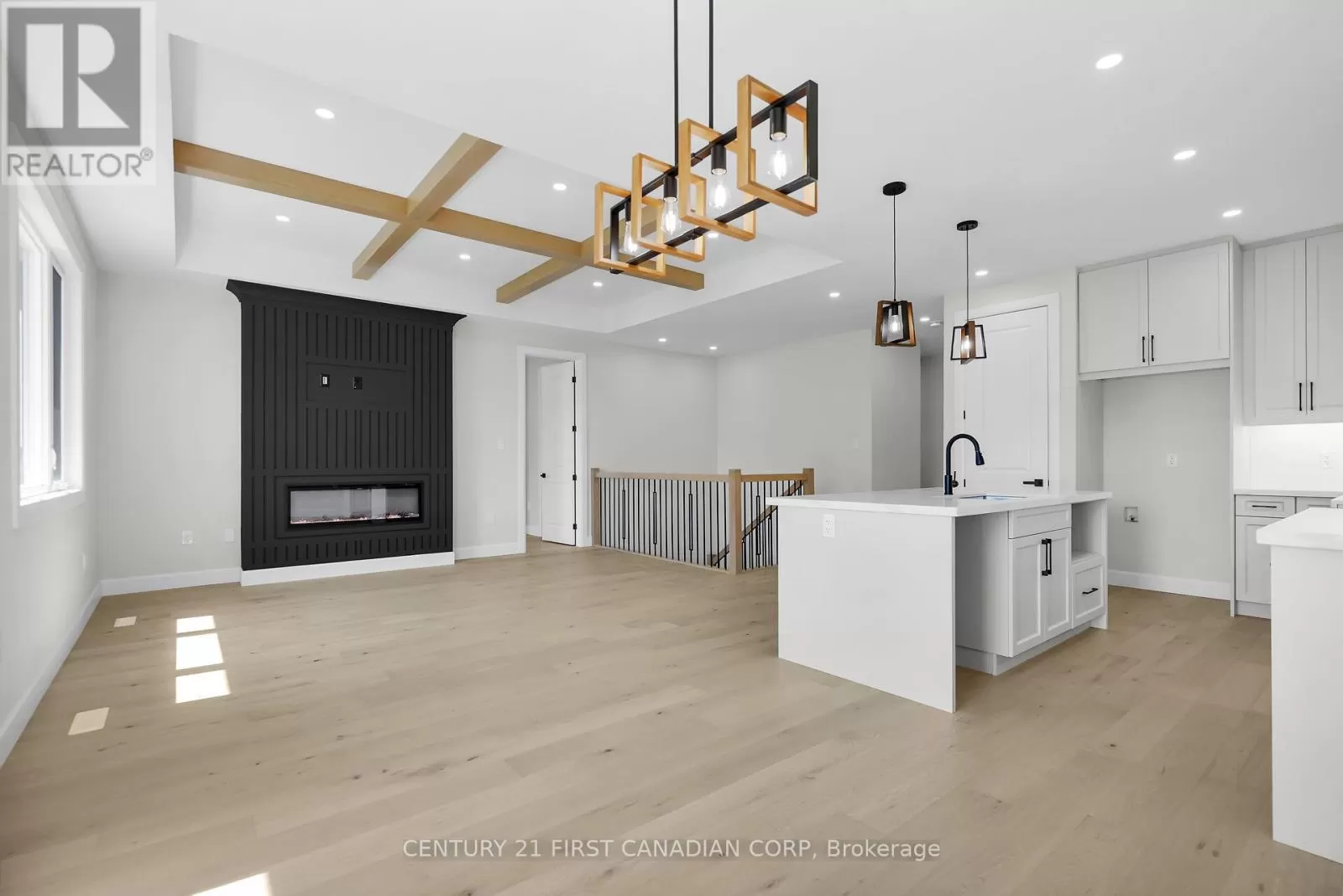 Cross Streets: Lila Street. ** Directions: NANCY & LILA. Step inside this sleek and contemporary bungalow in Dutton's highly sought after neighbourhood, Lila North! This brand new build boasts 3,275 sq.ft of refined finished living space, high end finishes throughout, and was designed with the modern family in mind. The main floor is generously scaled with 9ft ceilings, 8ft interior doors, engineered hardwood, and oversized windows throughout - making the home feel both bright and luxurious. The chefs kitchen is equipped with floor to ceiling soft-close cabinetry, quartz countertops, and a pantry to provide you with additional storage. The kitchen is an entertainers dream as it opens up to the dining room and warm & inviting living room which is perfect for hosting family and friends. The living room is the perfect spot to cozy up in after a long day - featuring a custom tv & electric fireplace surround wall and stunning coffered ceilings constructed out of wooden beams. The primary suite is located right off of the living room, has a custom accent wall, a HUGE walk-in closet, and a spa-like 5pc bathroom with his & hers double vanity, a soaker tub perfect for relaxing, and a tiled shower. The other 2 bedrooms on the main floor are generously sized, and also feature eye catching accent walls, and share a 4pc bathroom. The mud room doubles as main floor laundry and has built in cabinetry, a custom bench and a convenient 2pc powder room - perfect for guests. A huge bonus that this home offers is a FULLY FINISHED BASEMENT that is entirely IN-LAW COMPATIBLE! Making your way down to the basement, you will find a continuation of the high ceilings, large egress windows, and light coloured LVP flooring. The lower level has a kitchenette, a huge rec-room that makes a perfect hangout spot for teenagers or man cave, 2 more large bedrooms, a 4pc bathroom, rough-in for lower level laundry, and a separate entrance that leads to the garage (perfect for in-laws). (id:27476)