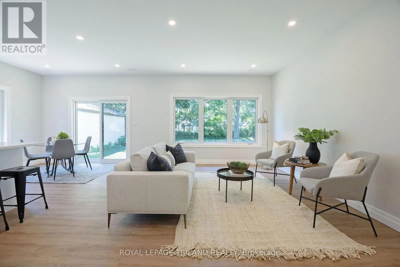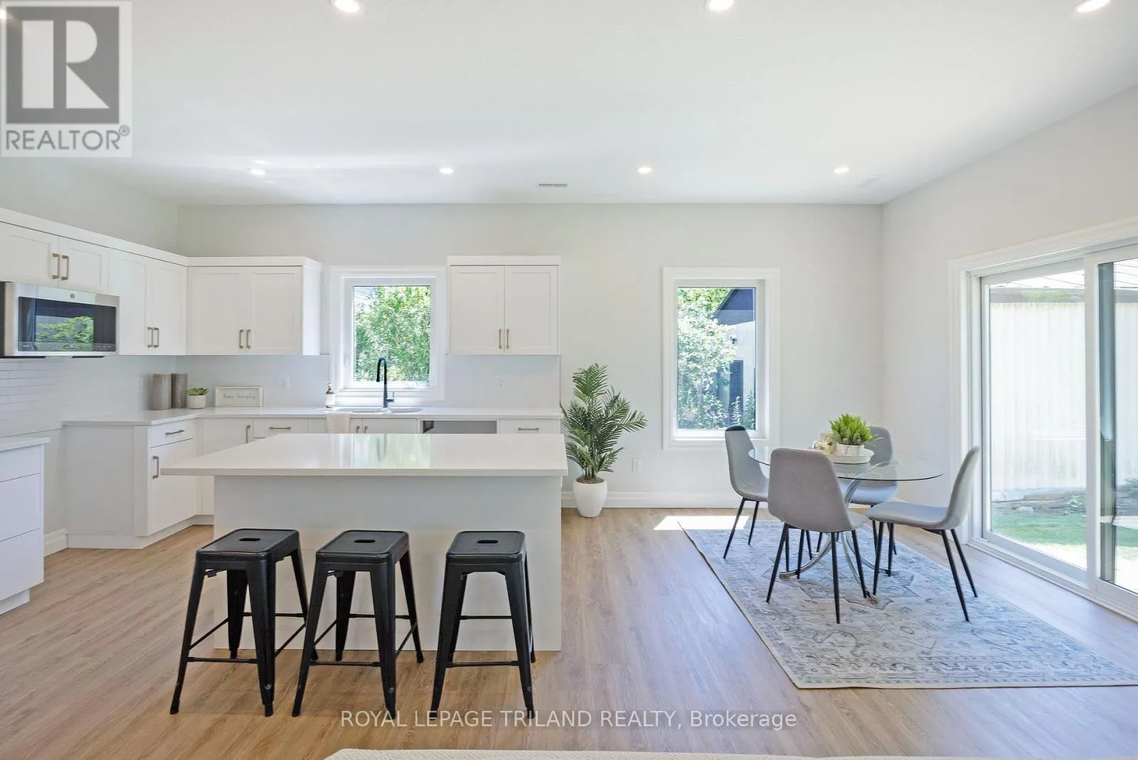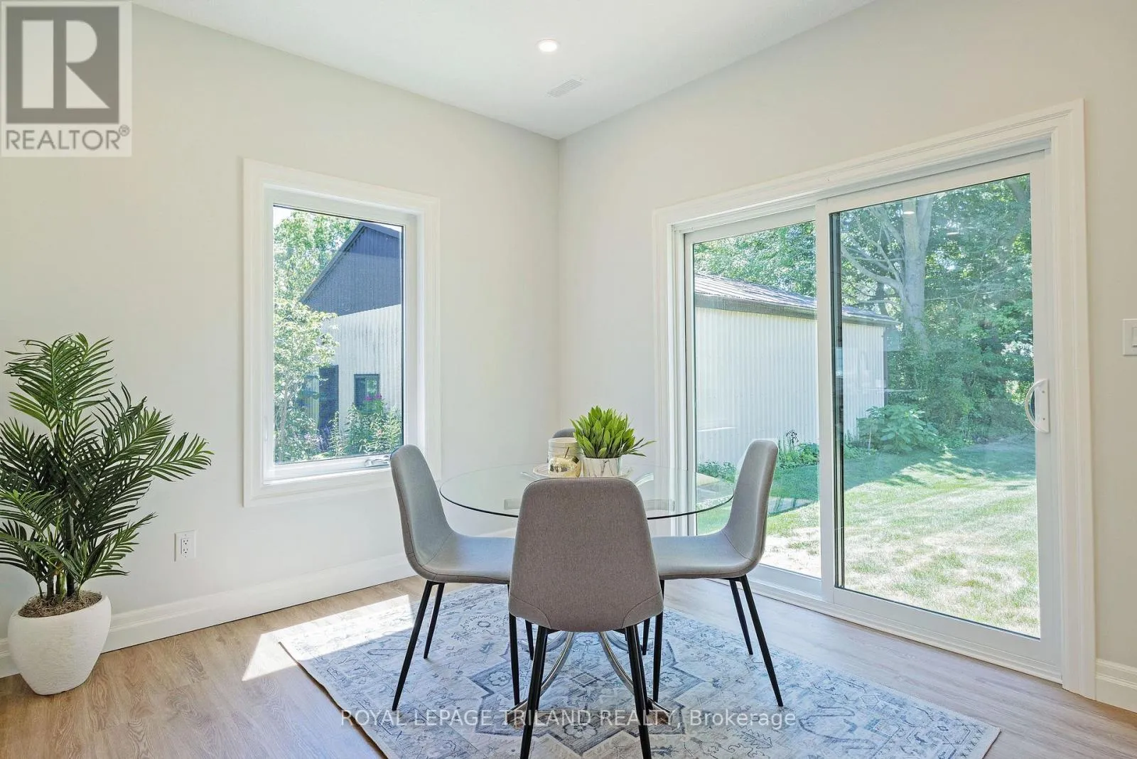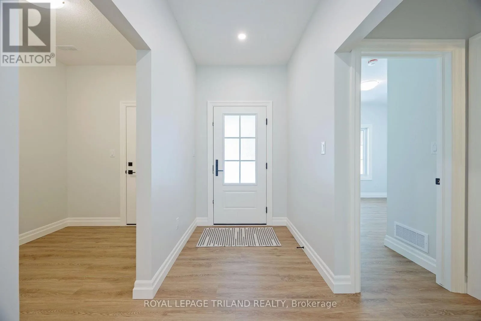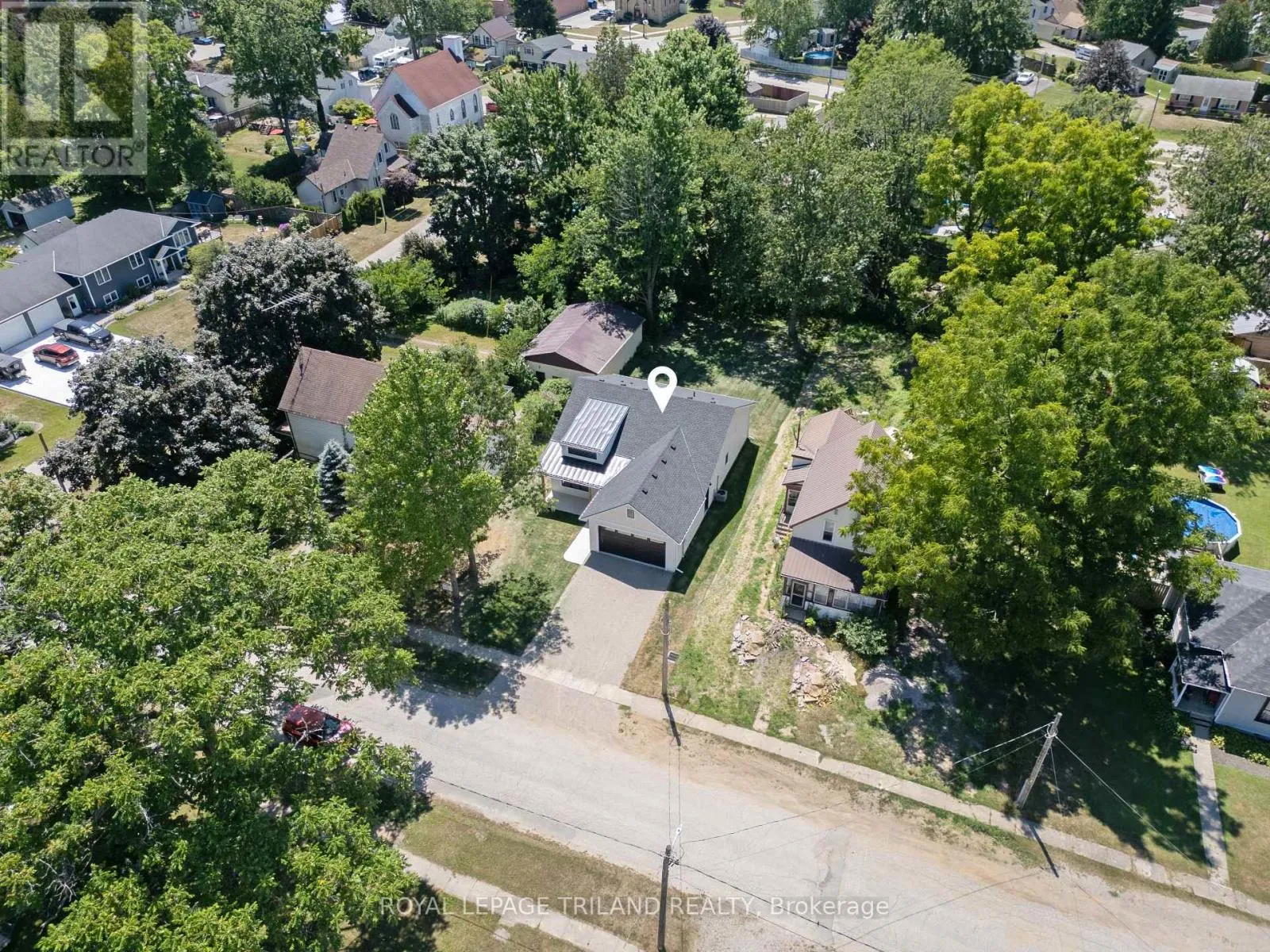 Cross Streets: Ridge St. ** Directions: From Currie Rd, go south, left on Jordan St., right on Nancy. This new, NO-STEP bungalow with a covered front porch sits on a spacious 165ft lot, surrounded by mature trees, and includes a $10k fencing allowance. Offering 1,369 sq. ft. of living space, a double garage(with included asphalt driveway), and high-quality finishes, this home provides exceptional value and upgrades. Located in the growing town of Dutton, just 30 minutes from London with easy access to the 401, it blends country charm with modern convenience. Dutton offers a variety of amenities, including a community center, public school, park, sports fields, splash pad, pool, shopping, businesses at 174 Currie Rd., restaurants, a library, medical office, and Gritfit gym. The home features a thoughtful layout with 9ft ceilings, a welcoming front foyer, and a mudroom with a closet, offering garage access and side yard entry. The mudroom leads to the main-floor laundry room, complete with a sink. The open-concept living, kitchen, and dining area boasts laminate floors, large windows, and a patio door that opens to the backyard. The kitchen includes quartz counters, soft-close cabinetry, a tile backsplash, an undermount sink, and a pantry closet. The primary bedroom offers a serene view of the yard, along with an ensuite featuring double sinks, a shower with a built-in seat, tile floors, and a walk-in closet. The second bedroom includes a spacious closet and is conveniently located near a linen closet and the second bathroom, which offers a tub/shower combo and tile flooring. Included with the home is an asphalt driveway, a $10k fencing allowance, and a Tarion Warranty. HST is included but rebated to the builder, and taxes will be assessed based on the MPAC valuation. (id:27476)
