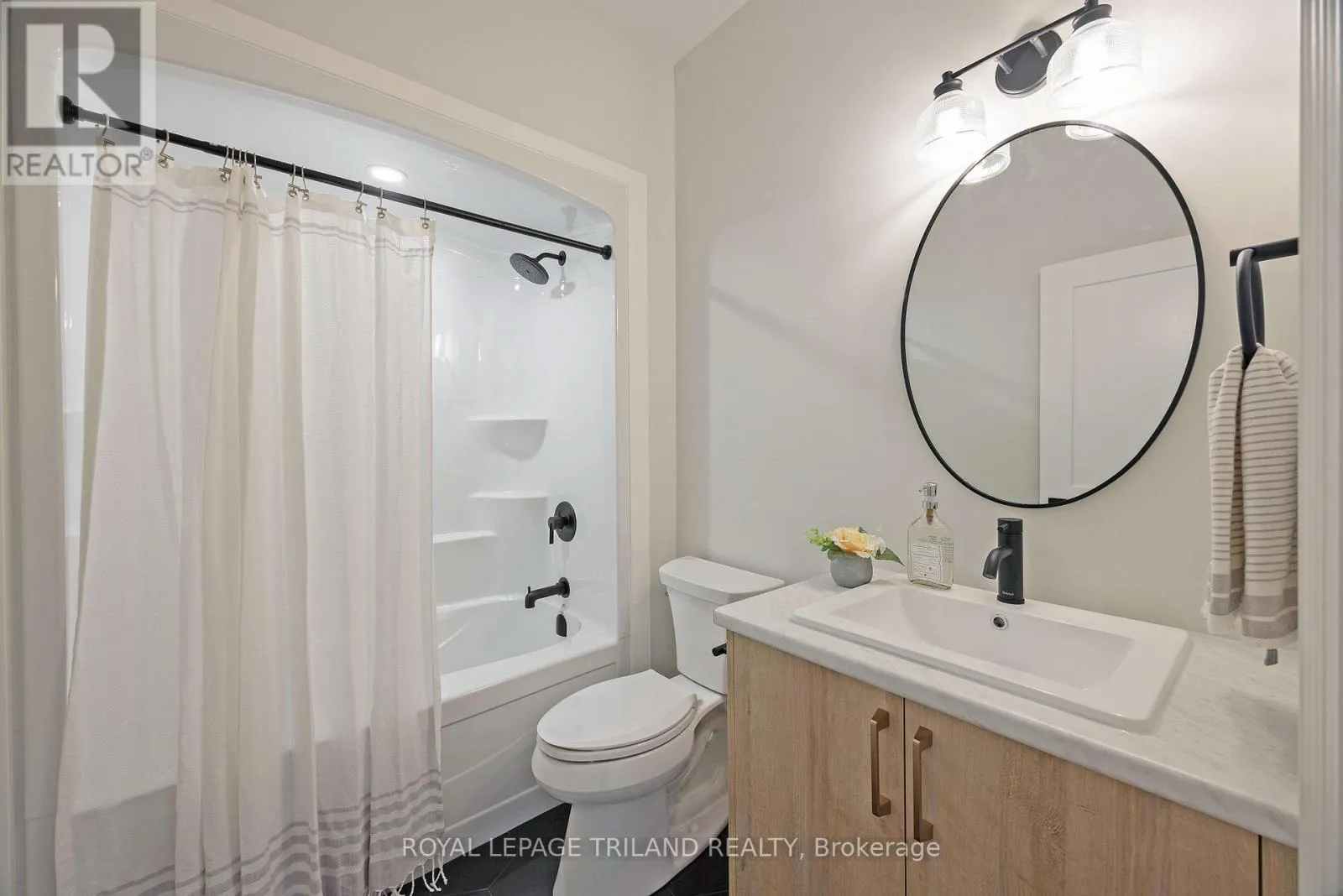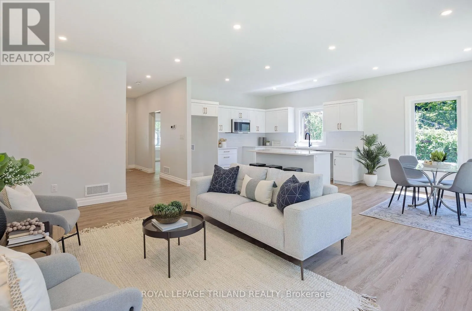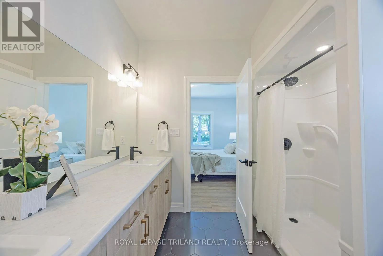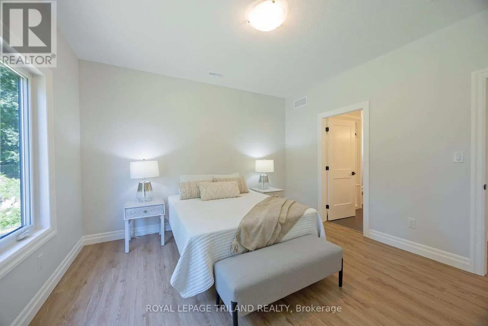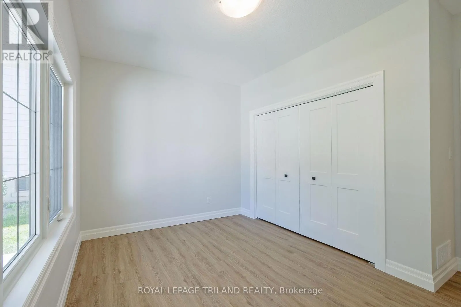 Cross Streets: Ridge St. ** Directions: From Currie Rd, go south, left on Jordan St., right on Nancy. This new, NO-STEP bungalow with a covered front porch sits on a spacious 165ft lot, surrounded by mature trees, and includes a $10k fencing allowance. Offering 1,369 sq. ft. of living space, a double garage(with included asphalt driveway), and high-quality finishes, this home provides exceptional value and upgrades. Located in the growing town of Dutton, just 30 minutes from London with easy access to the 401, it blends country charm with modern convenience. Dutton offers a variety of amenities, including a community center, public school, park, sports fields, splash pad, pool, shopping, businesses at 174 Currie Rd., restaurants, a library, medical office, and Gritfit gym. The home features a thoughtful layout with 9ft ceilings, a welcoming front foyer, and a mudroom with a closet, offering garage access and side yard entry. The mudroom leads to the main-floor laundry room, complete with a sink. The open-concept living, kitchen, and dining area boasts laminate floors, large windows, and a patio door that opens to the backyard. The kitchen includes quartz counters, soft-close cabinetry, a tile backsplash, an undermount sink, and a pantry closet. The primary bedroom offers a serene view of the yard, along with an ensuite featuring double sinks, a shower with a built-in seat, tile floors, and a walk-in closet. The second bedroom includes a spacious closet and is conveniently located near a linen closet and the second bathroom, which offers a tub/shower combo and tile flooring. Included with the home is an asphalt driveway, a $10k fencing allowance, and a Tarion Warranty. HST is included but rebated to the builder, and taxes will be assessed based on the MPAC valuation. (id:27476)