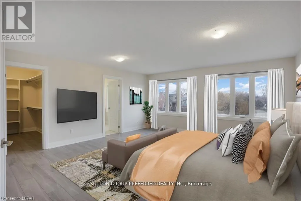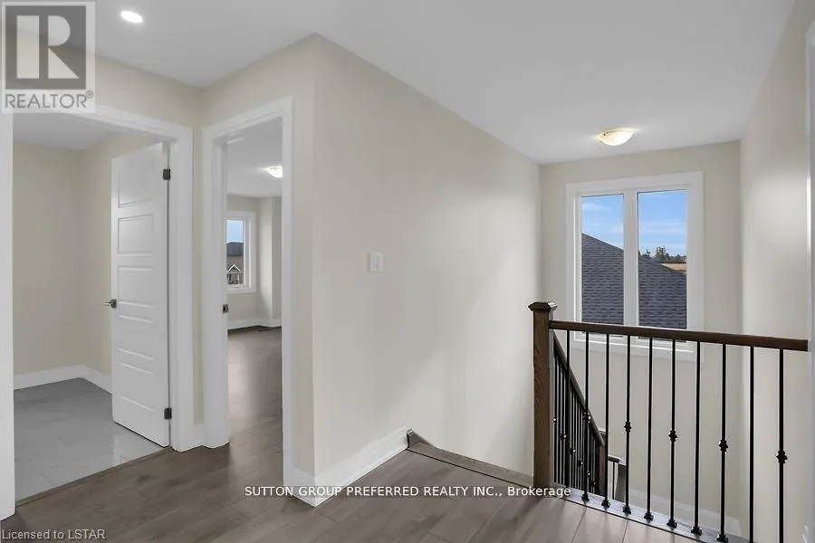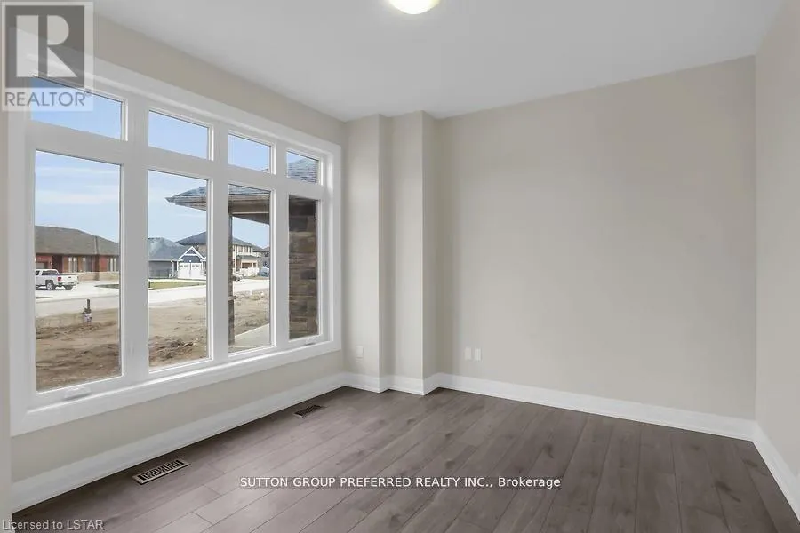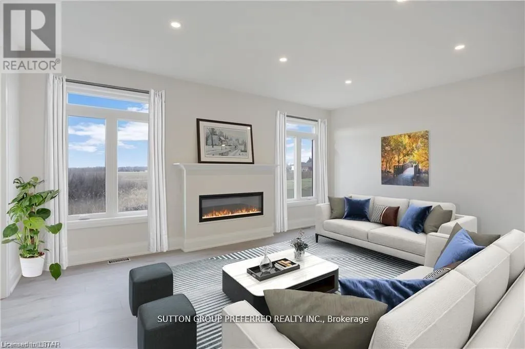 Cross Streets: MILLER RD. ** Directions: South off 401 on Currie Road to Pioneer Line (first road). Turn left on Miller Road to Leitch Street. Turn right on Leitch Street and property is on right. Stunning executive 2-storey with 5 bedrooms& 4 bathrooms is on a premium pie shaped lot backing onto farmland! This brick & stone 2851 sqft family home with 3 car attached garage is ready to move in! Tastefully designed with high quality finishing, this home features an open concept floor plan. Great room showcases the electric fireplace. Quartz countertops in bright kitchen and bathrooms. 4-pc ensuite with large glass corner shower & 2 sinks and walk-in closet off main bedroom. Convenient second floor laundry with cupboards. Impressive 9ft ceilings, 8ft doors, beautiful luxury plank vinyl & gleaming tile floors. Desirable location in Highland Estate subdivision close to park, walking path, rec centre, shopping, library, splash pad, pickle ball court, & public school with quick access to the 401. Move in and enjoy this family home. Other new homes for sale - contact listing agent. (id:27476)