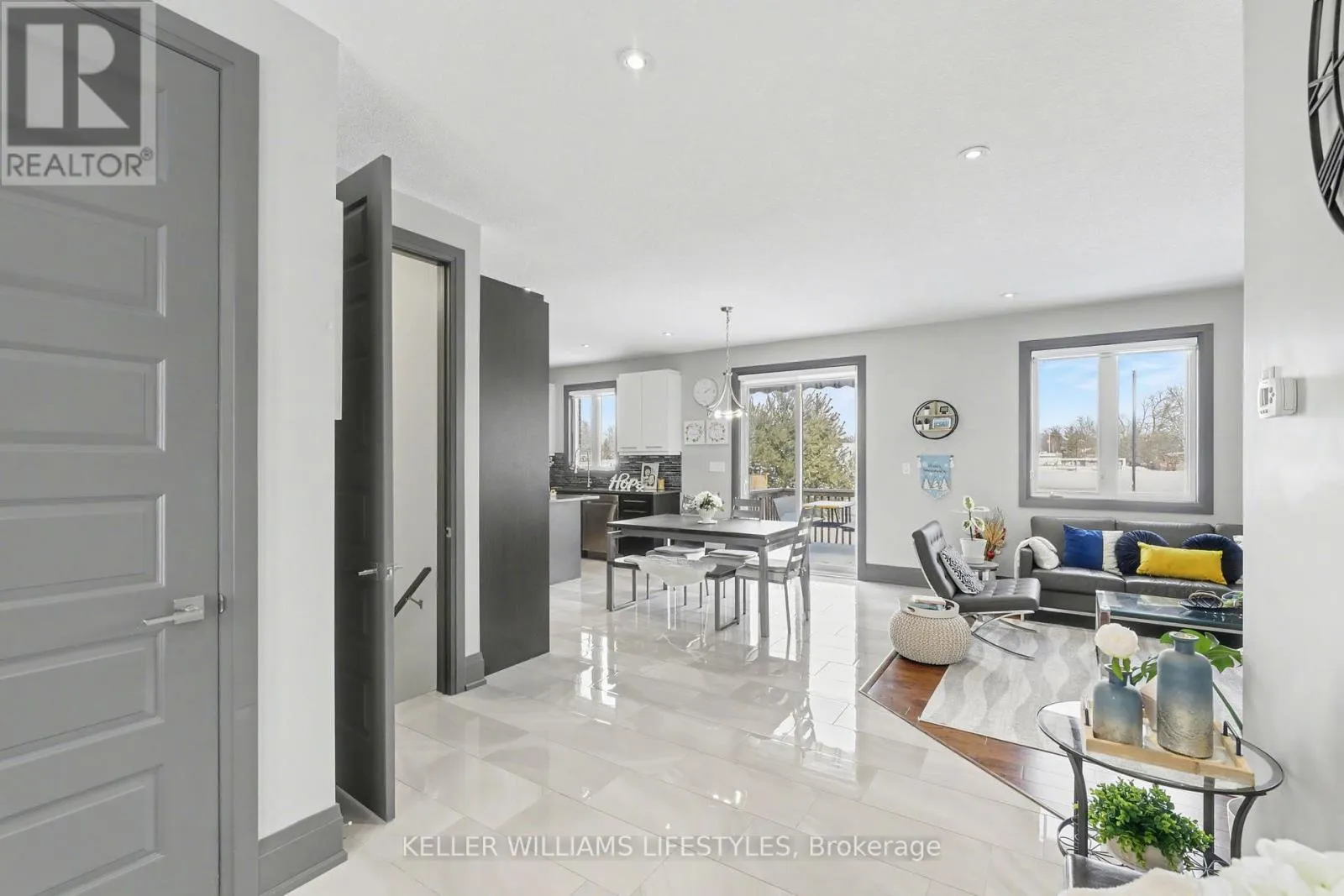 Cross Streets: Mary St. ** Directions: From 401, Take Currie Rd South to Mary St.Turn right at Leitch St and home on the right. Welcome to this beautifully designed brick and stone bungalow offering exceptional space, style, and comfort. Featuring 3 spacious bedrooms on the main level plus 2 additional bedrooms in the fully finished basement (2022), this home is ideal for families or multi-generational living. The double attached garage and parking for 6 vehicles on the driveway provide rare convenience. Flooded with abundant natural light, the open-concept layout offers breathtaking sunrise and sunset views and seamlessly blends elegance with functionality. The inviting living room showcases a built-in electric fireplace with a recessed TV mount, creating a perfect focal point for relaxation and entertaining. The bright kitchen and bathrooms are finished with granite countertops, complemented by engineered hardwood flooring, gleaming porcelain tile, and high-quality finishes throughout. Enjoy 9-foot ceilings, 8-foot doors, a walk-in pantry, mudroom, and convenient main-floor laundry. The primary bedroom retreat features a walk-in closet and a 4-piece ensuite. Patio doors lead to a large deck, perfect for outdoor enjoyment while overlooking the park. The professionally finished basement includes two generous bedrooms and a luxurious 5-piece full bathroom, offering excellent endless living space. Located in the highly desirable Highland Estate subdivision, this home is steps from parks, walking paths, a recreation centre, shopping, library, and public school-combining peaceful surroundings with everyday convenience.A rare opportunity to own a thoughtfully designed home in an exceptional location. (id:27476)