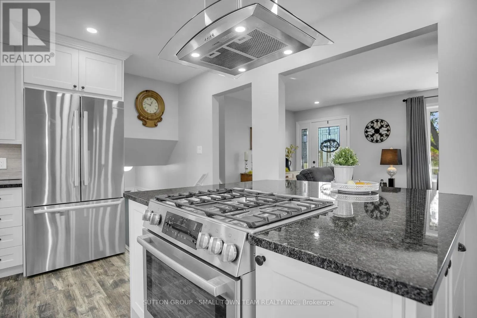 Cross Streets: Poplar Street. ** Directions: From the 401, take exit 149 toward Currie Rd/County Rd 8 (Dutton), Continue 6km to Talbot Line, turn left, 29788 Talbot Line is 0.5 km on the left. Welcome to this beautifully renovated country retreat that perfectly combines modern style, everyday convenience, and peaceful rural charm. Set back from the road on a picturesque lot surrounded by mature landscaping, this move-in-ready home has been thoughtfully upgraded inside and out. The bright, open-concept main floor showcases a completely renovated kitchen featuring custom soft-close cabinetry, gleaming 3cm solid granite countertops, and premium Bosch stainless steel appliances. The adjoining dining area provides additional cabinetry for effortless entertaining, while upgraded lighting, solid five-panel doors, and tasteful finishes add sophistication throughout. The main floor offers exceptional versatility with an extra living space featuring a built-in Murphy bed- ideal as a guest suite, private home office, or potential in-law suite with its own entrance. Upstairs, the spacious primary bedroom boasts a luxurious walk-in closet, while both the powder room and full bathroom have been fully renovated, complete with a new skylight for added natural light. Step outside to enjoy a private oasis, complete with a 12 x 24 cedar deck overlooking lush perennial gardens bursting with color through the seasons. The exterior upgrades include new shingles, vinyl vertical siding, soffit, fascia, eavestroughs with leaf guards, and a recycled asphalt driveway for easy maintenance. The impressive 38 x 24 ft heated and insulated garage is a dream space for hobbyists, tradesmen, or car enthusiasts, featuring spray foam insulation, a natural gas heater, and new insulated doors with openers. The property also includes a shed with hydro, a new septic pump system, and numerous quality inclusions such as built-in shelving, a pedestal washer and dryer, and Blink security cameras. Meticulously maintained and beautifully updated, this property offers modern comfort, flexible living, and peaceful country living. A truly turn-key home where every detail has been carefully considered. (id:27476)