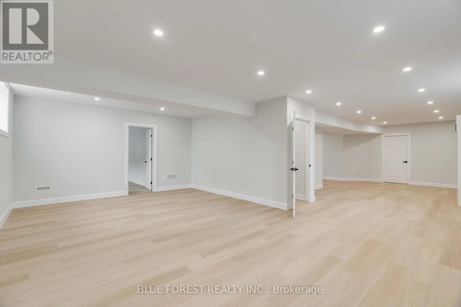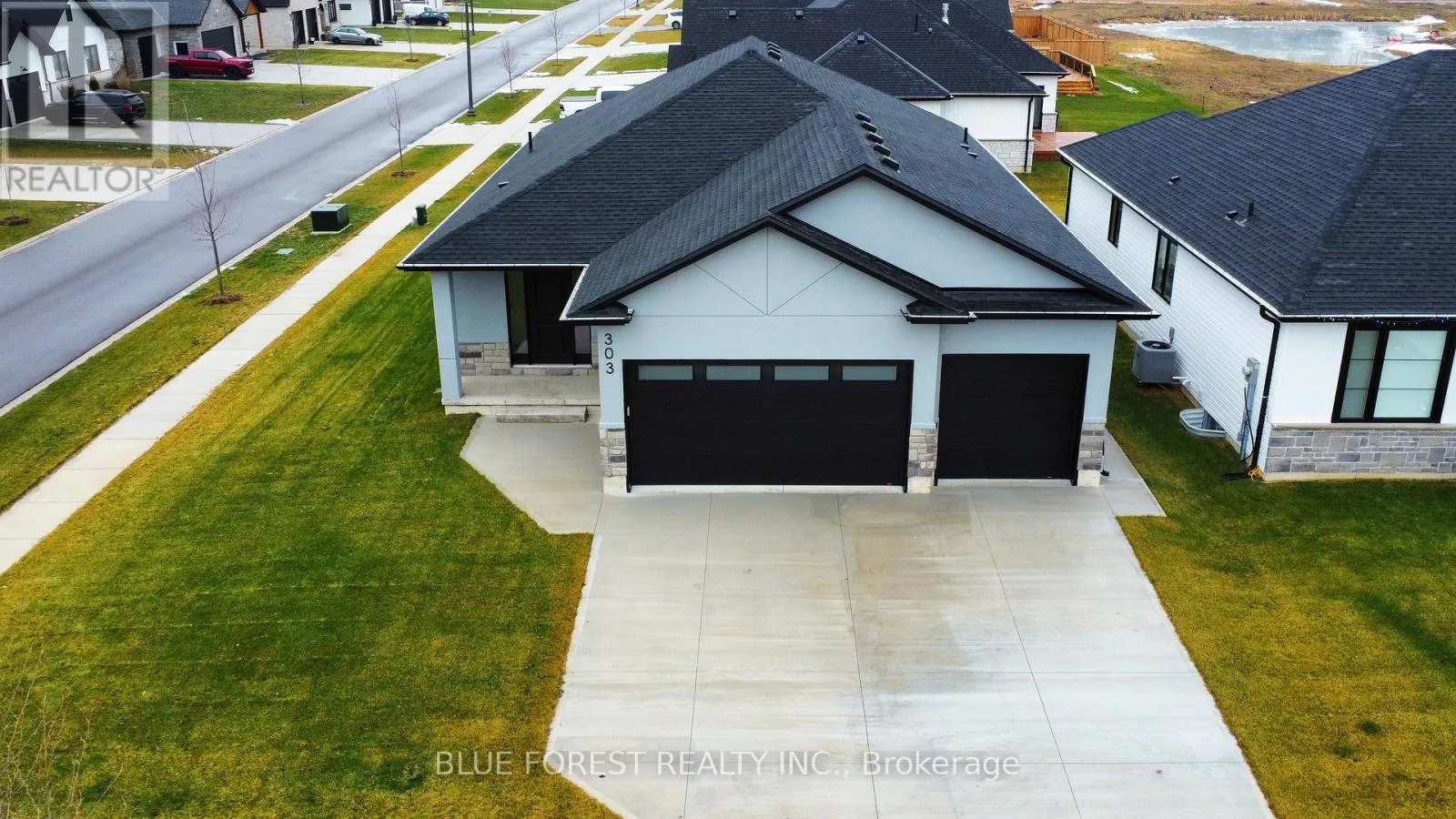 Cross Streets: Lila St / Nancy St. ** Directions: From HWY 8 (Currie Rd) turn NE onto Annabelle St, turn left onto Nancy St, follow the road until Lila St, house on right. Welcome to 303 Nancy Street - a stunning 3+2 bedroom, 3,225 sq.ft. bungalow tucked away in the quiet Lila North neighbourhood of Dutton. This bright, open-concept home features 9 foot ceilings, 8 foot doors, large windows, pot lights galore, and numerous upgrades. The gourmet kitchen is sure to please the chef of the family, offering quartz countertops, floor to ceiling soft close cabinetry, a bonus pantry, ample counter and cupboard space, a large island with breakfast bar seating for four, and a stylish backsplash. The spacious primary bedroom includes a walk-in closet and a luxurious ensuite with his/her sinks, a freestanding tub, and a walk-in glass shower. Custom millwork is showcased throughout the home, including a fireplace feature wall and coffered ceiling in the living room, plus feature walls in each main floor bedroom. Two additional generously sized bedrooms, a 4-piece bathroom, 2-piece powder room, and a laundry room with a custom mudroom area complete the main floor. Engineered hardwood and ceramic tile run throughout - no carpet here! FULLY FINISHED BASEMENT IN LAW SUITE with a separate entrance from the garage! Ideal for multigenerational living, visiting family, work space, rental income, man cave or extra space for the kids. The lower level includes a full kitchen, large open rec room, two spacious bedrooms, a 4-piece bathroom, and a separate laundry room. The space is bright and welcoming with it's tall ceilings, large windows, tons of potlights, and plenty of storage. Upgraded owned on-demand water heater. 3-car insulated garage designed so the third bay can be separated for the in-law suite. Low-maintenance concrete driveway. The large corner lot offers excellent flexibility and easy access for a future pool. Located just minutes from local amenities including groceries, restaurants, and the Dutton Community Centre, this home is only 3 minutes from Hwy 401 and 25 minutes to London. (id:27476)