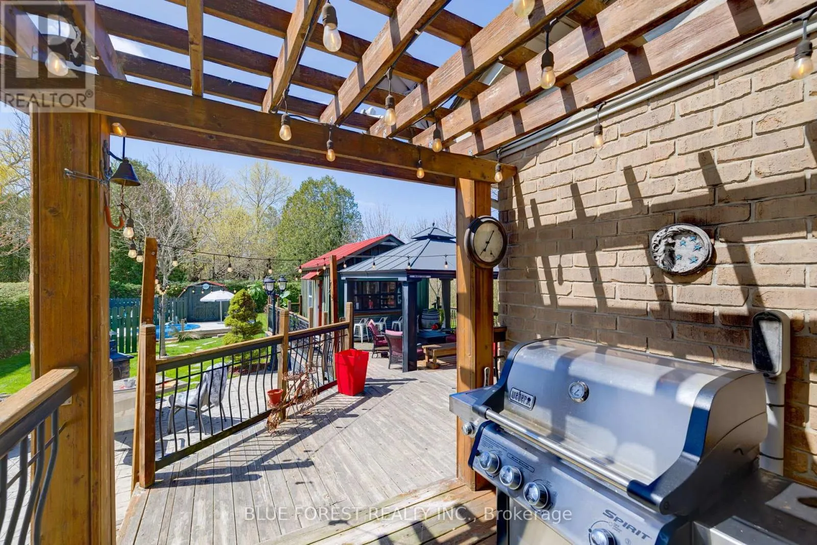 Cross Streets: WEST 401 TO CURRIE RD/MARY ST. ** Directions: From 401: Head South on Currie Road, Turn Left on Shackleton and then Left onto McArthur. **Upscale Custom-Built 2-Storey Home in the Highly Sought-After Community of Dutton** This upscale and stunning custom-built 2-storey home is perfectly situated on a private, deep lot in the desirable community of Dutton. From the moment you step through the welcoming front entrance, you'll feel the warmth and quality of the luxurious finishes throughout. The main floor features a seamless blend of oak hardwood, bamboo, and tile flooring, showcasing craftsmanship and attention to detail. The gorgeous kitchen is a chef's dream, offering rich cherry cabinetry, under-cabinet lighting, a wet bar with sit-up island and Corian Countertops, and high-end built-in appliances. Just off the kitchen, terrace doors lead to a sunken living room, while a separate recreation room invites you to relax by the beautiful fireplace-perfect for entertaining or family gatherings. A main floor 2-piece bath and inside entry to the two-car garage (with newer insulated roll-up doors) add convenience and functionality. All three bathrooms have been tastefully updated with modern sinks, toilets, and high-end vinyl flooring. Upstairs, you'll find three spacious bedrooms and a 4-piece main bath. The primary suite is a true retreat, complete with a floor-to-ceiling custom closet organizer, a private ensuite and Walk-in Closet. Step outside to experience one of the best backyard entertainment areas around! The fully landscaped yard includes stamped concrete patios and walkways, Small above ground pool with pump and equipment(2022), and a heated, fully insulated patio shed/bunkhouse featuring roll-up bar access from the gazebo.(2021) Additional updates include:Roof (2016) with 50-year shingles, Updated windows and skylight on the upper level(2017), Updated insulated garage doors, Updated patio door off kitchen(2017). This home combines luxury, comfort, and functionality in every detail - ready for you to move in and enjoy! (id:27476)