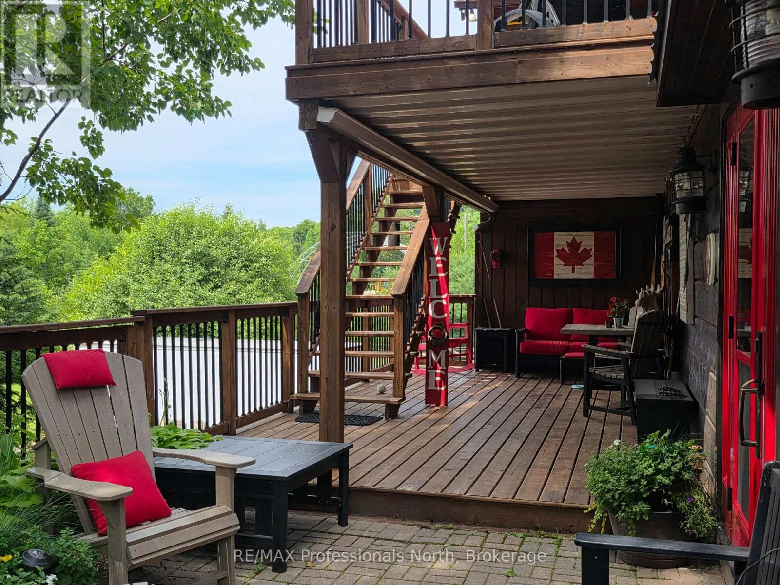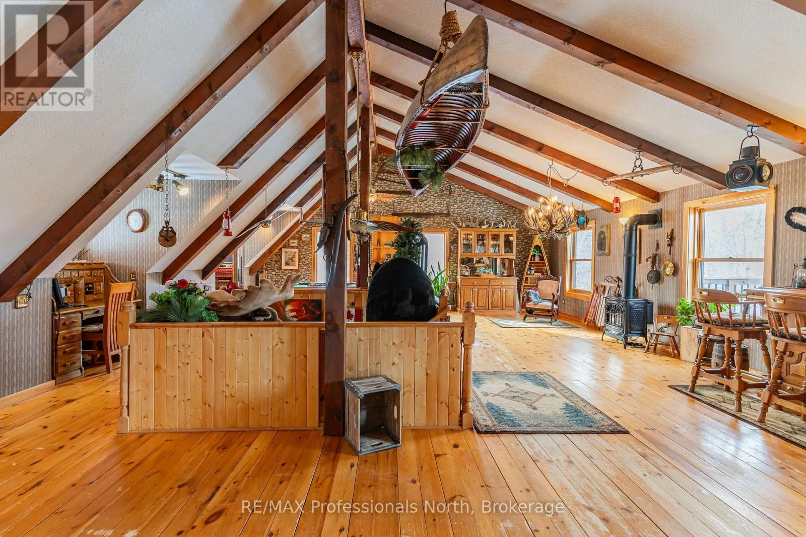 Suburban Truly a Road Trip Destination! Haliburton County Commercial building and lot for sale! The Owner is looking to retire and here is your opportunity to own one of the most recognized commercial buildings in the area. Nestled and located within West Guilford's commercial and community's recreation hub, this 3,762 sq. ft. building (excluding the basement) has an incredible retail location! The short 12 minute drive from Haliburton, easy access off Hwy. 118, and being located on the direct path to the Kennisis Lake/Redstone tourist area, make this a popular spot for local clientele and cottagers/visitors alike. The impressive log and frame building has been the home to the iconic Cottage Country Log Cabin and its well-known owner for over 20 years. The 1,955 sq. ft. main floor is currently packed with hand-chosen giftware, home wares, and quality-custom themed lake clothing and hats attracting and servicing an impressive, loyal and long-standing clientele. The upper area consists of a large open rec room area that was one also part of the retail space, plus a spacious 2-bdrm. living quarters, allowing the new owner to live on the premises in style. The living area includes 2 bdrms., a combined kitchen/eating room with walkout to a large deck, living room , and sunroom. In addition to the 2 levels there is an expansive 1,758 sq. ft. basement that offers office space, storage and stock area with easy access. Extra parking behind the building leads to the basement for convenient stock deliveries. The relative 1.2 acre lot has excellent expansion possibilities and versatile zoning providing for multiple uses for business and office opportunities. Thinking of a restaurant? Check out the additional back deck for a great outdoor food experience. This iconic building and location will not disappoint. (id:27476)