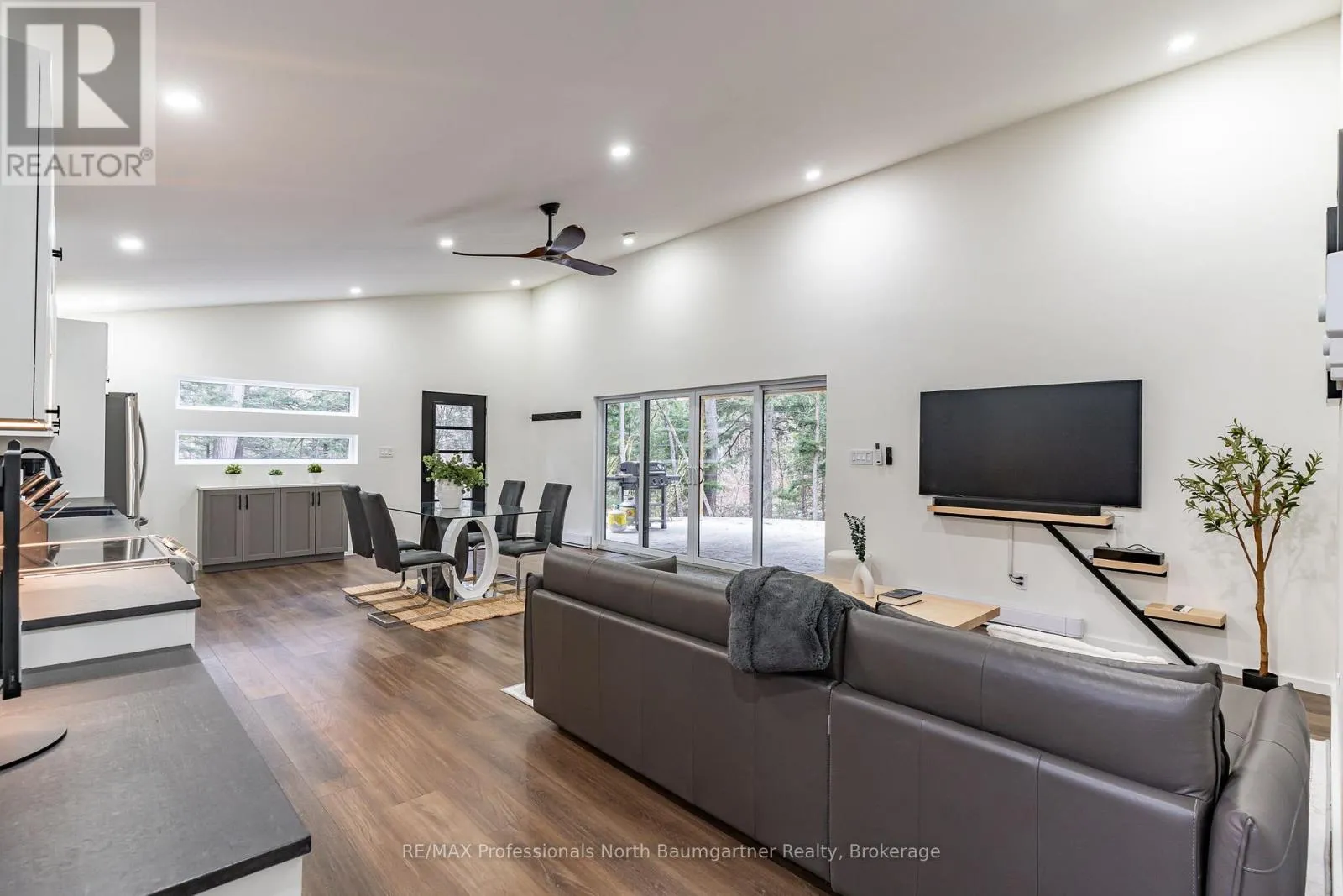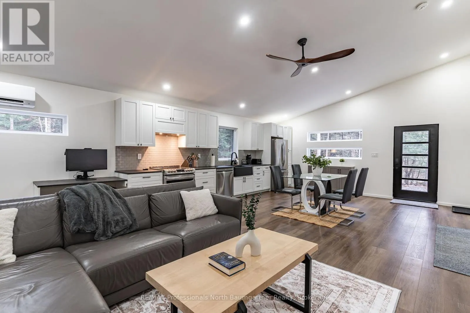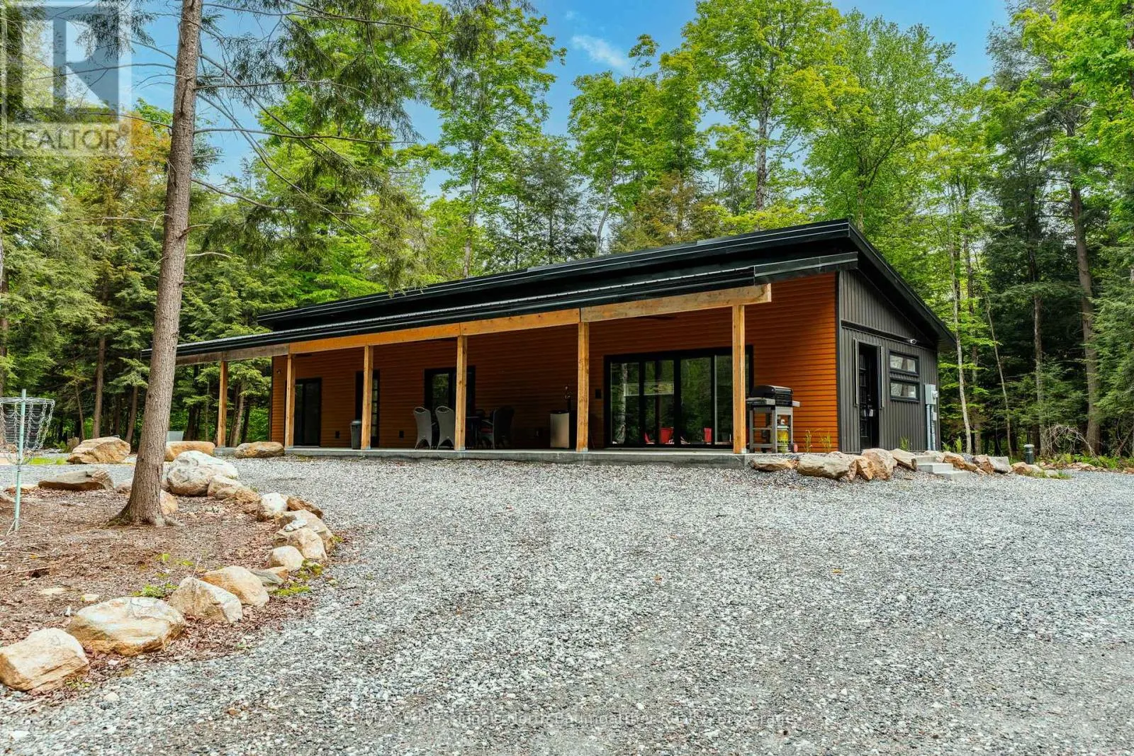 Haliburton Lake Road to Sir Sam's Road to Liswood Road to Basshaunt Lake Road to SOP Stunning Eagle Lake Bungalow - Your Dream Home Awaits! Immaculate single-level living at its finest. The open concept design of this newly constructed home (2022) has a seamless, modern interior enhanced by soaring high ceilings that maximize natural light and living space. The two spacious bedrooms, each featuring private walkouts to a charming covered veranda perfect for morning coffee or evening relaxation softly lit by the overhead pot lights. Only a few steps from the veranda you will find the perfect place to gather around a fire and create memories surrounded by family and friends. Thoughtfully situated on a private lot with a gated driveway, this home offers the ultimate in peace and seclusion while remaining minutes from key amenities. Outdoor enthusiasts will appreciate the convenient proximity to Sir Sam's ski hill, Eagle lake, local hiking trails, Eagle Lake Country Market, and Sir Sam's Inn and Spa, and only a short walk away is the Basshaunt lake public access. A property that combines modern design, quality construction, and prime location this bungalow represents an exceptional opportunity for discerning buyers seeking a move-in ready home with immediate lifestyle appeal. Don't miss your chance to make this remarkable property your own! (id:27476)