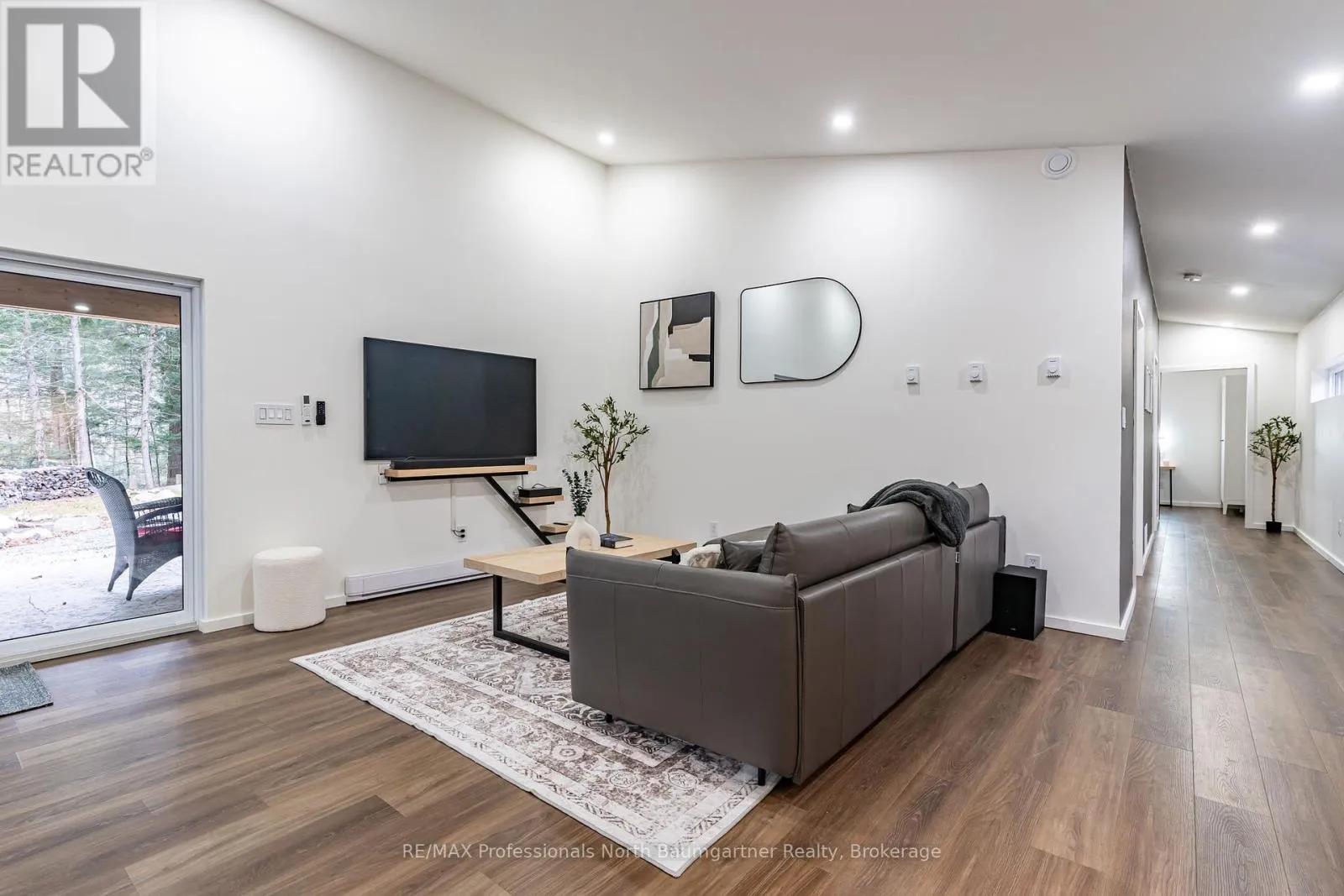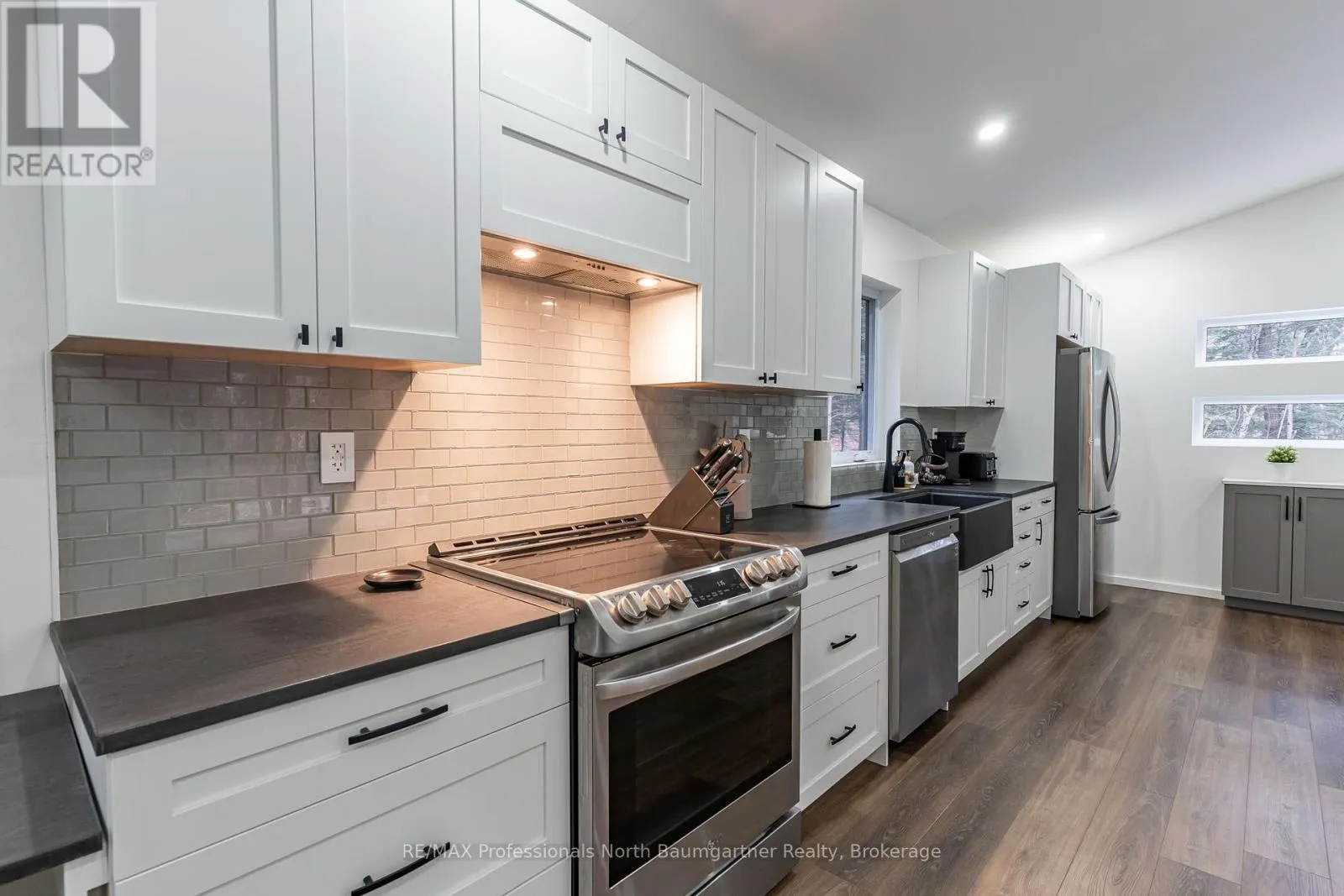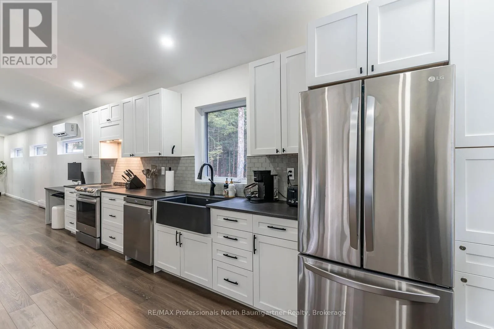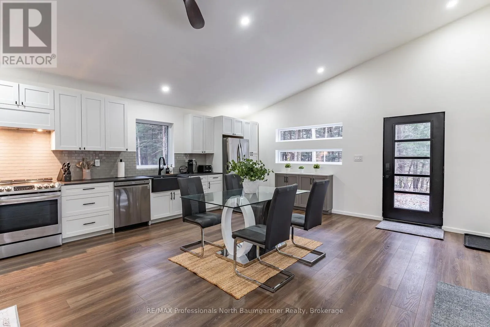 Haliburton Lake Road to Sir Sam's Road to Liswood Road to Basshaunt Lake Road to SOP Stunning Eagle Lake Bungalow - Your Dream Home Awaits! Immaculate single-level living at its finest. The open concept design of this newly constructed home (2022) has a seamless, modern interior enhanced by soaring high ceilings that maximize natural light and living space. The two spacious bedrooms, each featuring private walkouts to a charming covered veranda perfect for morning coffee or evening relaxation softly lit by the overhead pot lights. Only a few steps from the veranda you will find the perfect place to gather around a fire and create memories surrounded by family and friends. Thoughtfully situated on a private lot with a gated driveway, this home offers the ultimate in peace and seclusion while remaining minutes from key amenities. Outdoor enthusiasts will appreciate the convenient proximity to Sir Sam's ski hill, Eagle lake, local hiking trails, Eagle Lake Country Market, and Sir Sam's Inn and Spa, and only a short walk away is the Basshaunt lake public access. A property that combines modern design, quality construction, and prime location this bungalow represents an exceptional opportunity for discerning buyers seeking a move-in ready home with immediate lifestyle appeal. Don't miss your chance to make this remarkable property your own! (id:27476)