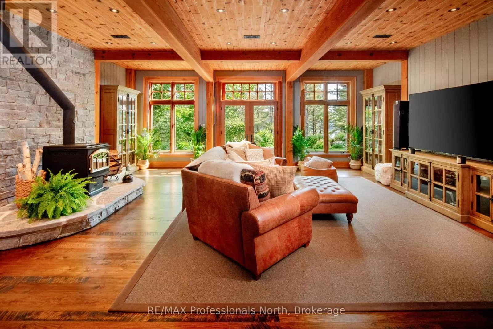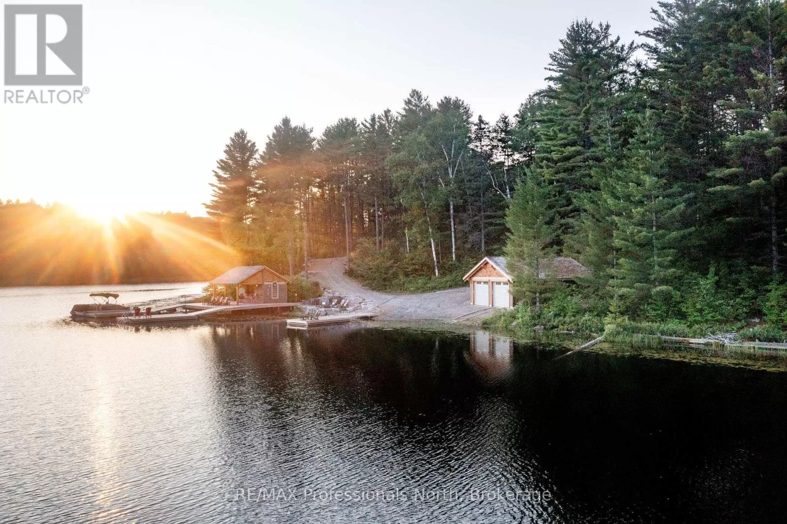 Cross Streets: Kennisis Lake Road. ** Directions: Directions are 118 to Kennisis lake road to west shore drive to misty knoll trail. Welcome to Klaxon Lake on Misty Knoll Trail, a once-in-a-lifetime opportunity to own an extraordinary sanctuary nestled in the heart of Ontario's Haliburton Highlands. Spanning over 1,449 acres of untouched Canadian wilderness, this double-gated private estate delivers an unparalleled lifestyle defined by serenity, luxury, and absolute privacy. Property Highlights: Expansive Private Grounds: Explore a breathtaking landscape that includes a 108-acre private lake stocked with lake trout, seven additional ponds, and frontage on three separate lakes. With multiple parcels, the estate offers flexibility for future expansion or development ideal for a legacy family compound or private nature reserve. Architectural Elegance: The 8,800 sq. ft. main residence is the epitome of refined comfort. Thoughtfully designed with six bedrooms and eight and a half bathrooms, the home blends warmth with high-end finishes, open-concept living spaces, and lake views from nearly every room. Premium Outbuildings: A true standout is the custom-built vehicle and motorcycle shop, perfect for collectors or hobbyists, with ample room for luxury cars, ATVs, and tools. In total, seven buildings are strategically located across the estate for guests, entertainment, or staff offering immense versatility and functionality. Nature Lovers Dream: Discover over 179 documented species of wildlife, miles of manicured trails, scenic lookouts, multiple ponds, and secluded spots for picnics, hiking, or meditation. Every corner of this property invites exploration and reflection. Whether you're hosting lavish retreats, building a family legacy, or simply seeking complete escape, Klaxon Lake Estate is the ultimate expression of luxury in nature. Close to shops and restaurants, yet it feels like your own private world. To schedule your private tour, contact Haliburton Gold Group at 833-457-8487 or visit haliburtonluxury.com for the full property tour and details. (id:27476)