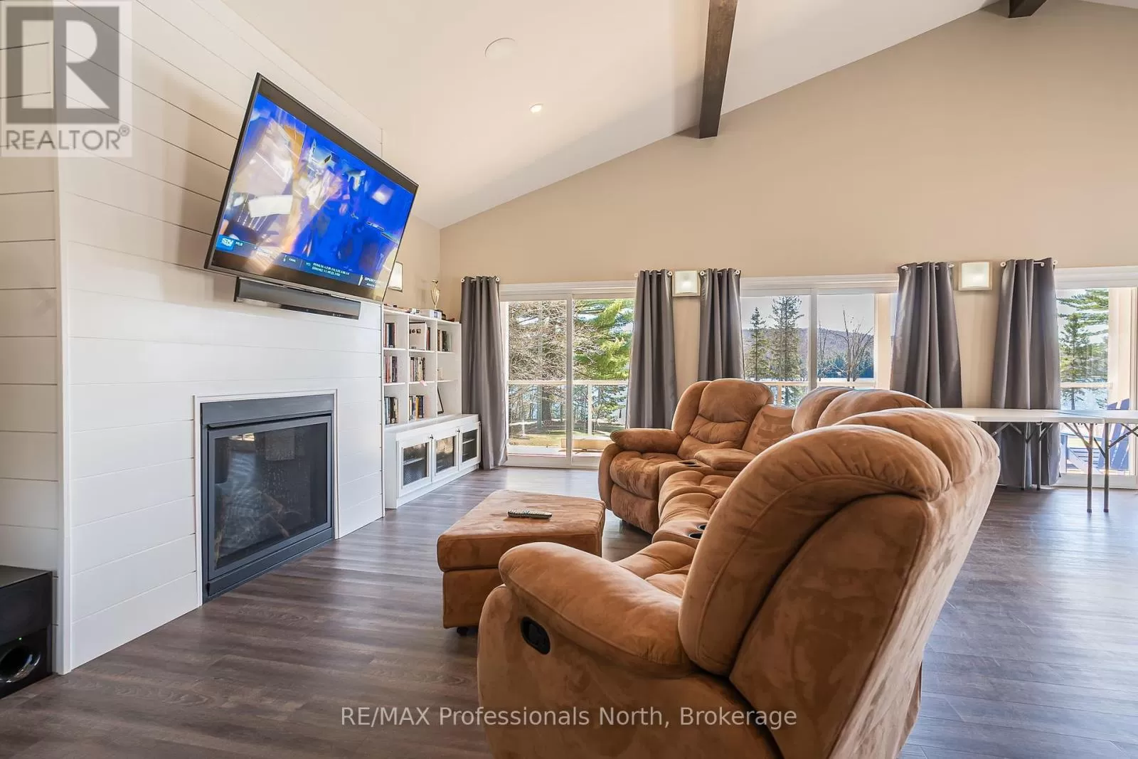 Cross Streets: Wigamog Rd. ** Directions: County Rd 21 to Wigamog Rd to Margaret's Trail to Webb Circle. Welcome to your dream retreat in the prestigious Silver Beach subdivision directly across from the popular Kashagawigamog Lake, part of the stunning five-lake chain In Haliburton County. This immaculate, beautifully decorated 3-bedroom, 3-bathroom masterpiece boasts over 2,300 square feet of luxurious living space. The main level features an open-concept living, kitchen, and dining area, complete with modern appliances, a stylish coffee bar, and ample storage. Step out onto the balconies and soak in the breathtaking views. The upper level boasts two generously sized bedrooms including a primary suite with ensuite privilege, featuring a relaxing soaker tub and a walk-in shower. The fully finished walk-out basement offers a guest room, a four-piece bath, and plenty of space for family and friends to gather. This property includes an attached garage, providing plenty of storage space for all your outdoor gear. Enjoy stress-free living with lawn care and snow removal as some of the added perks of this fantastic neighbourhood. For relaxation and socializing, the clubhouse offers a kitchenette, a spacious gathering area, an exercise room, and a games room. Directly across the quietly travelled road, enjoy exclusive access to a private dock on Kashagawigamog Lake. Haliburton's 5-lake chain offers fantastic boating and fishing and recreational opportunities. Luxury lakeside living at its very best - all waiting for you to enjoy! (id:27476)