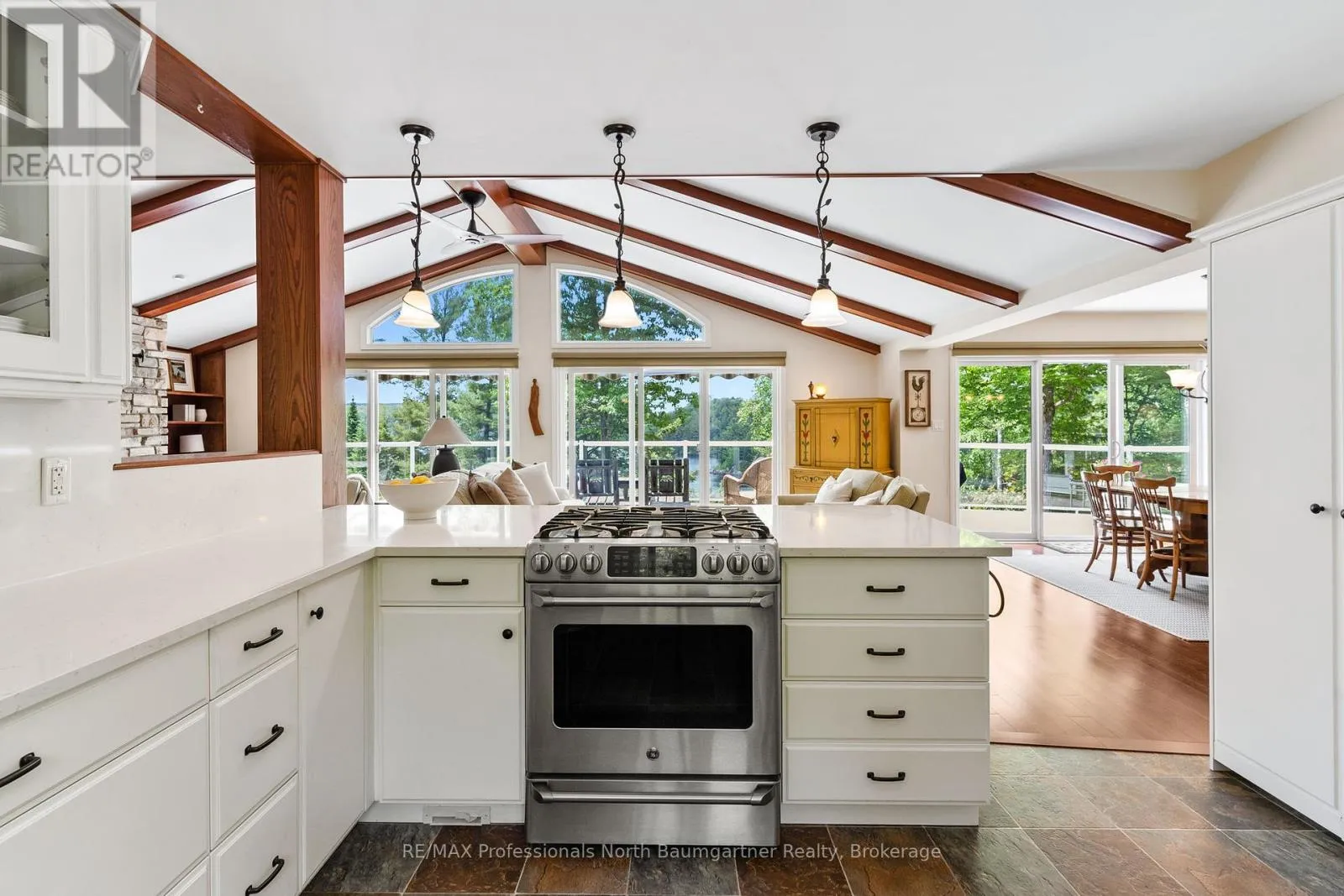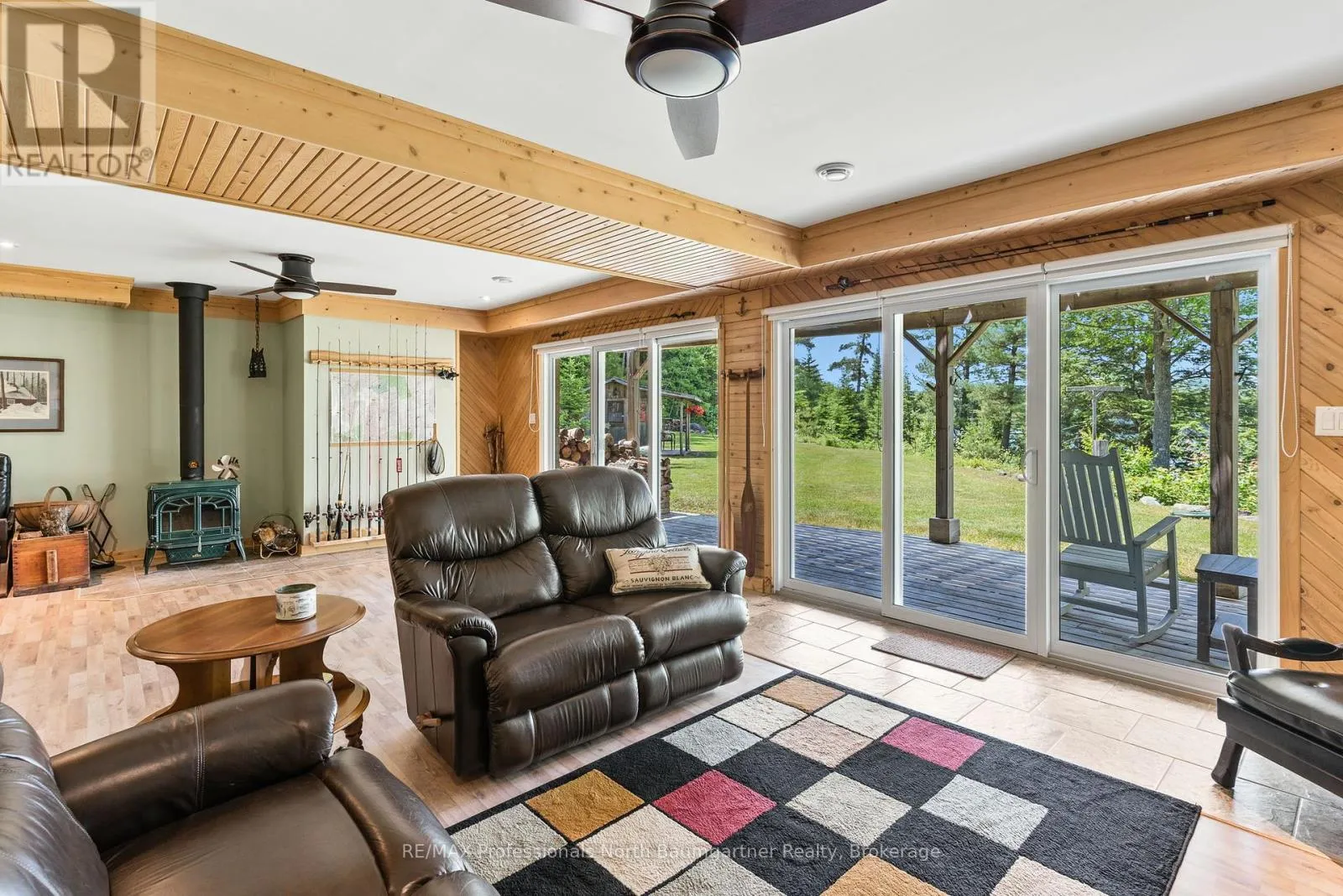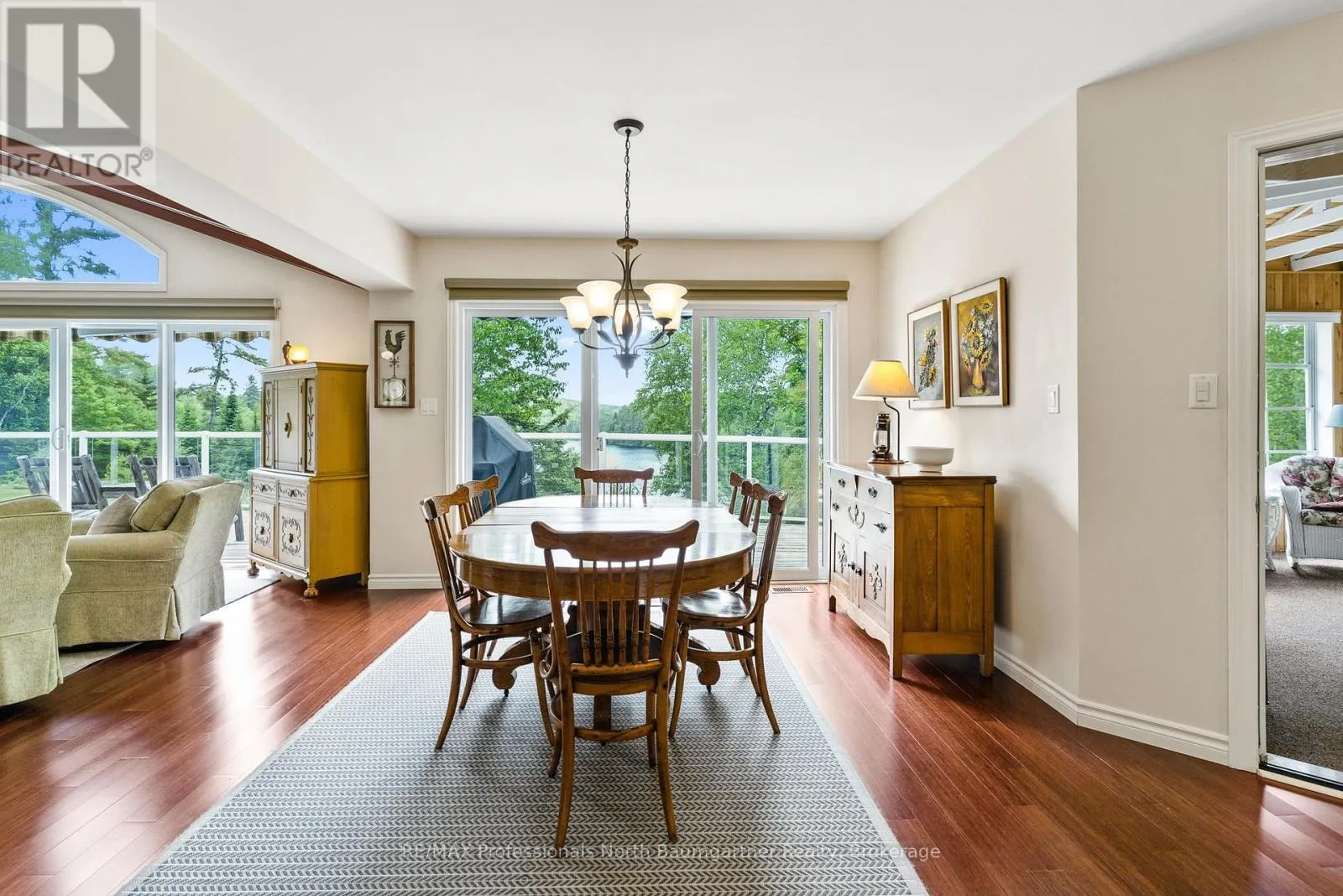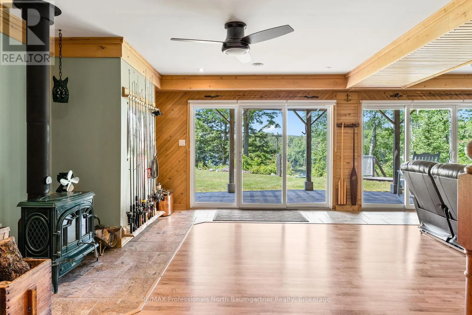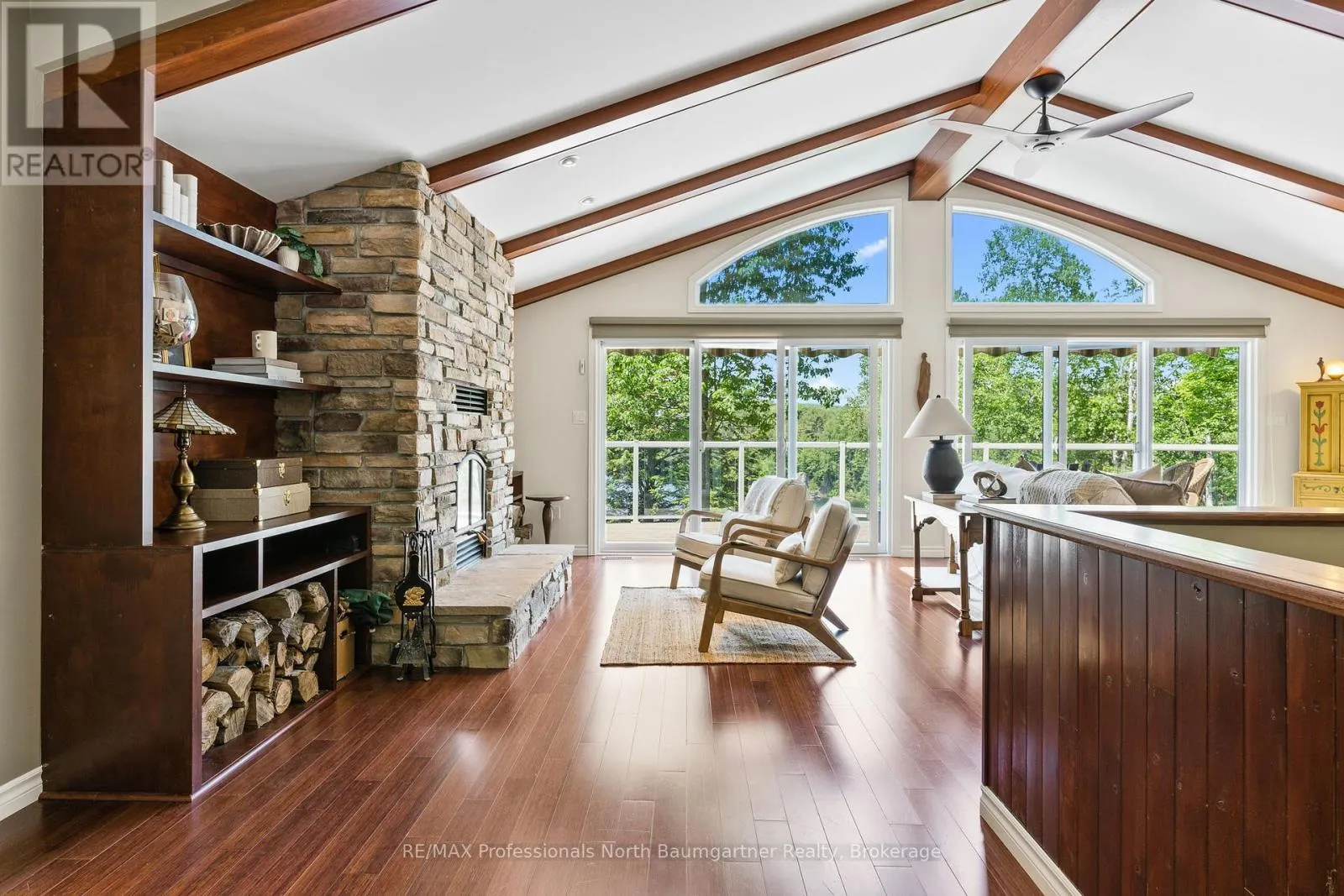 Cross Streets: Kennisis Lake Road and Growler Lake Road. ** Directions: Kennisis Lake Road + Growler Lake Road. Imagine owning 3500 sq ft of living space on 45.53 acres of Haliburton Forest and 520 ft of water frontage. Wake each morning to the whisper of wind through towering trees and Growler Lakes mirror surface reflecting the morning light. This isn't just a cottage; it's your gateway to life at nature's pace, where every sunset paints the sky. Wildlife roams freely and mature trees stand guard. Autumn brings crimson and gold, winter creates a snow-covered wonderland, spring awakens with birdsong, and summer invites lake adventures. Currently under a Managed Forest Plan, this land can be your legacy. The lake is ideal for morning swims, afternoon paddle boarding, and evening kayaking. The substantial 40-foot dock is perfect for diving, fishing, or simply enjoying coffee while loons call across the water. The thoughtful layout of this 5-bedroom, 4-bathroom home balances comfort with connection. A great room anchors each level. The open-concept kitchen features quartz countertops and backsplash, with breakfast bar seating. A window-walled 3 season porch captures views of natural surroundings and serves as alternative dining space. Each bedroom is generously sized, offering personal retreats. Two 44-foot lake-facing decks create multiple outdoor living areas. The upper deck features glass paneling and an electric awning and the lower one stays naturally shaded, perfect for escaping summer heat. An Opel low-emission fireplace and Napoleon wood stove provide warmth and ambiance. The west-facing orientation delivers spectacular sunsets every day so you can watch the sky transform from blue to pink to orange to purple, painting the lake in changing colors for your own private daily show. This isn't just a cottage; it's the setting for the life you want to live. Host memorable gatherings, create family traditions, and discover the peace that comes with owning a piece of paradise. Your escape is waiting. Welcome home to Growler Lake. (id:27476)