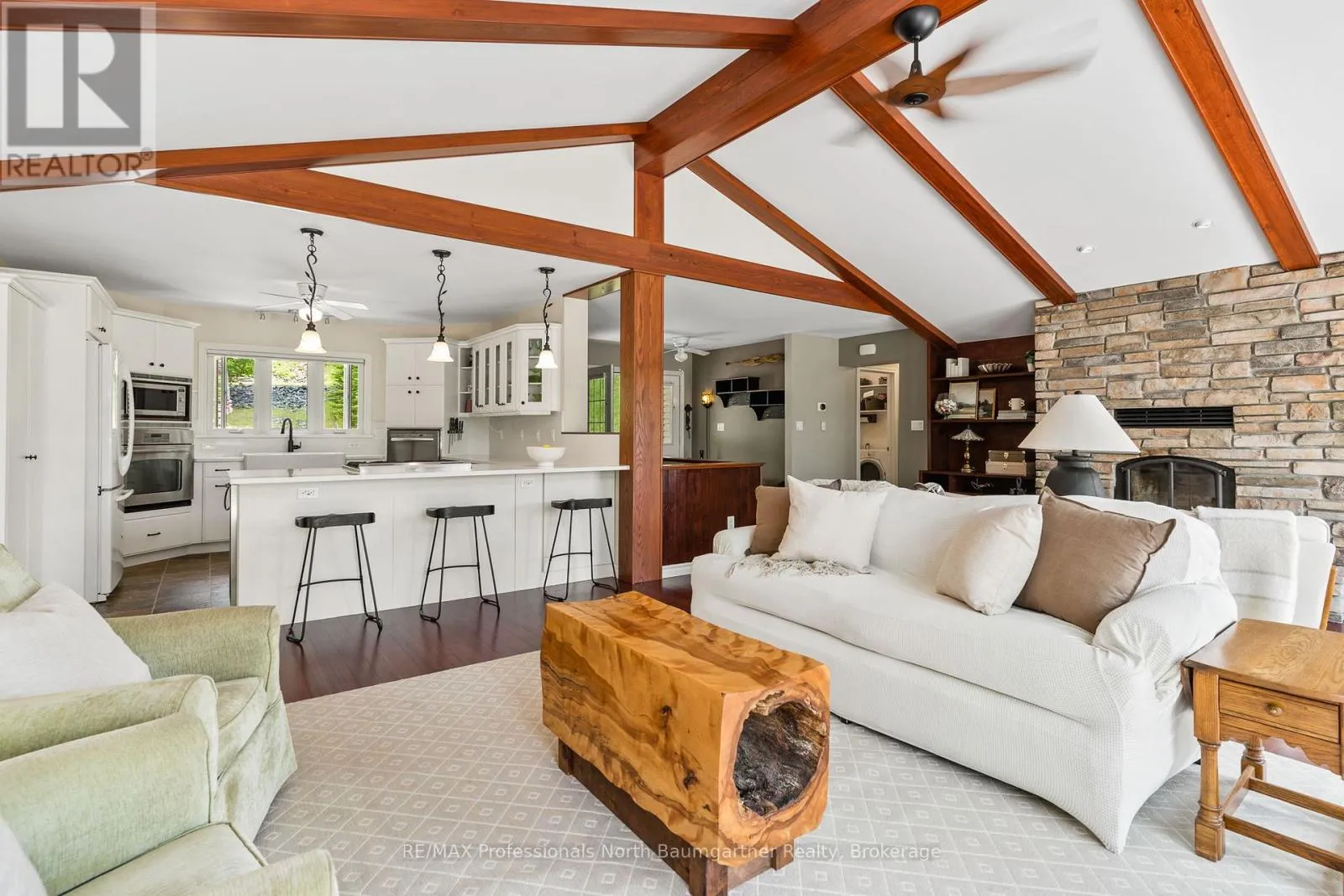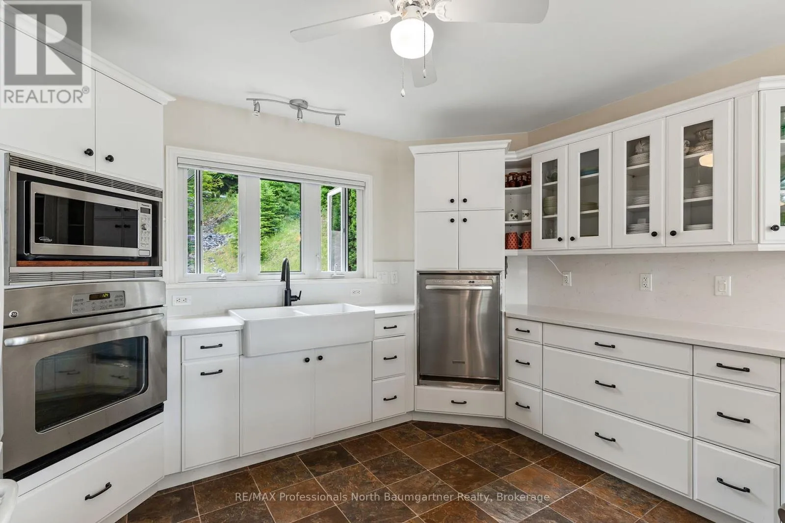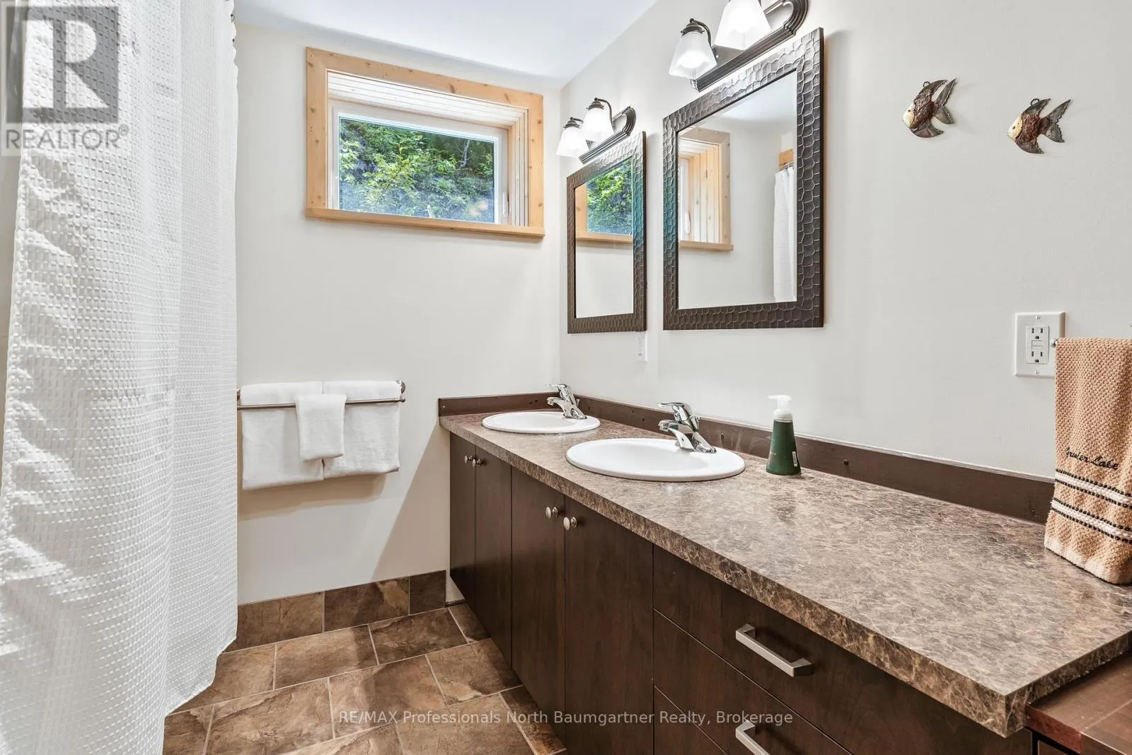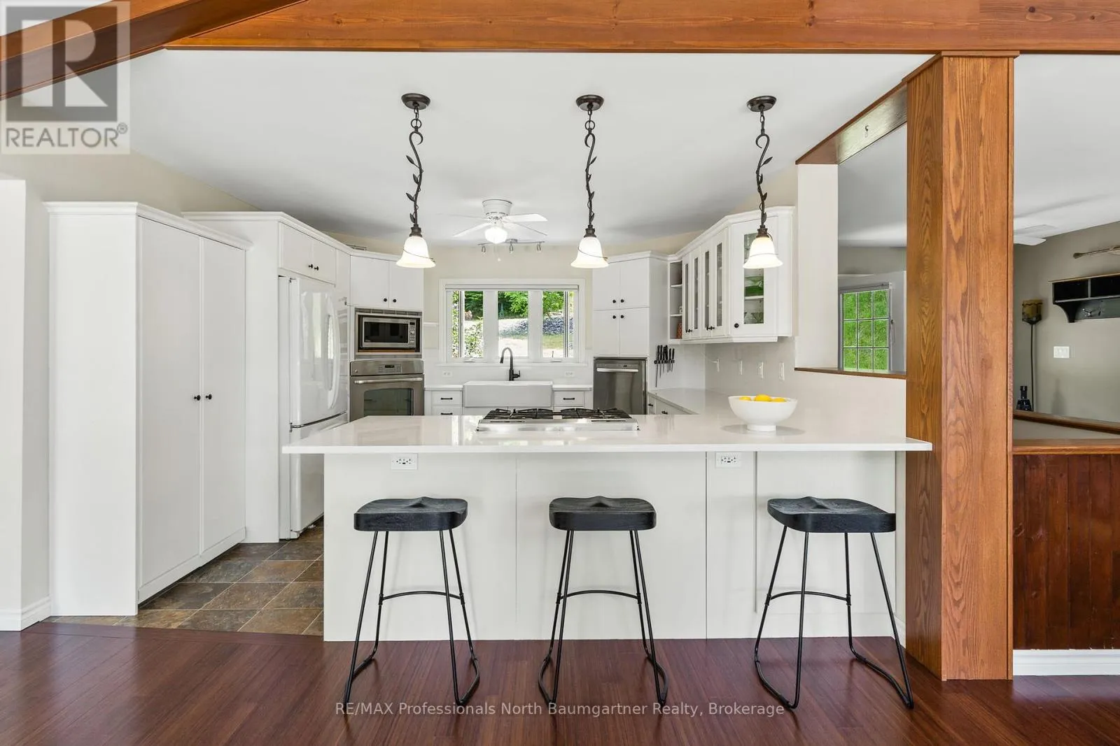 Cross Streets: Kennisis Lake Road and Growler Lake Road. ** Directions: Kennisis Lake Road + Growler Lake Road. Imagine owning 3500 sq ft of living space on 45.53 acres of Haliburton Forest and 520 ft of water frontage. Wake each morning to the whisper of wind through towering trees and Growler Lakes mirror surface reflecting the morning light. This isn't just a cottage; it's your gateway to life at nature's pace, where every sunset paints the sky. Wildlife roams freely and mature trees stand guard. Autumn brings crimson and gold, winter creates a snow-covered wonderland, spring awakens with birdsong, and summer invites lake adventures. Currently under a Managed Forest Plan, this land can be your legacy. The lake is ideal for morning swims, afternoon paddle boarding, and evening kayaking. The substantial 40-foot dock is perfect for diving, fishing, or simply enjoying coffee while loons call across the water. The thoughtful layout of this 5-bedroom, 4-bathroom home balances comfort with connection. A great room anchors each level. The open-concept kitchen features quartz countertops and backsplash, with breakfast bar seating. A window-walled 3 season porch captures views of natural surroundings and serves as alternative dining space. Each bedroom is generously sized, offering personal retreats. Two 44-foot lake-facing decks create multiple outdoor living areas. The upper deck features glass paneling and an electric awning and the lower one stays naturally shaded, perfect for escaping summer heat. An Opel low-emission fireplace and Napoleon wood stove provide warmth and ambiance. The west-facing orientation delivers spectacular sunsets every day so you can watch the sky transform from blue to pink to orange to purple, painting the lake in changing colors for your own private daily show. This isn't just a cottage; it's the setting for the life you want to live. Host memorable gatherings, create family traditions, and discover the peace that comes with owning a piece of paradise. Your escape is waiting. Welcome home to Growler Lake. (id:27476)