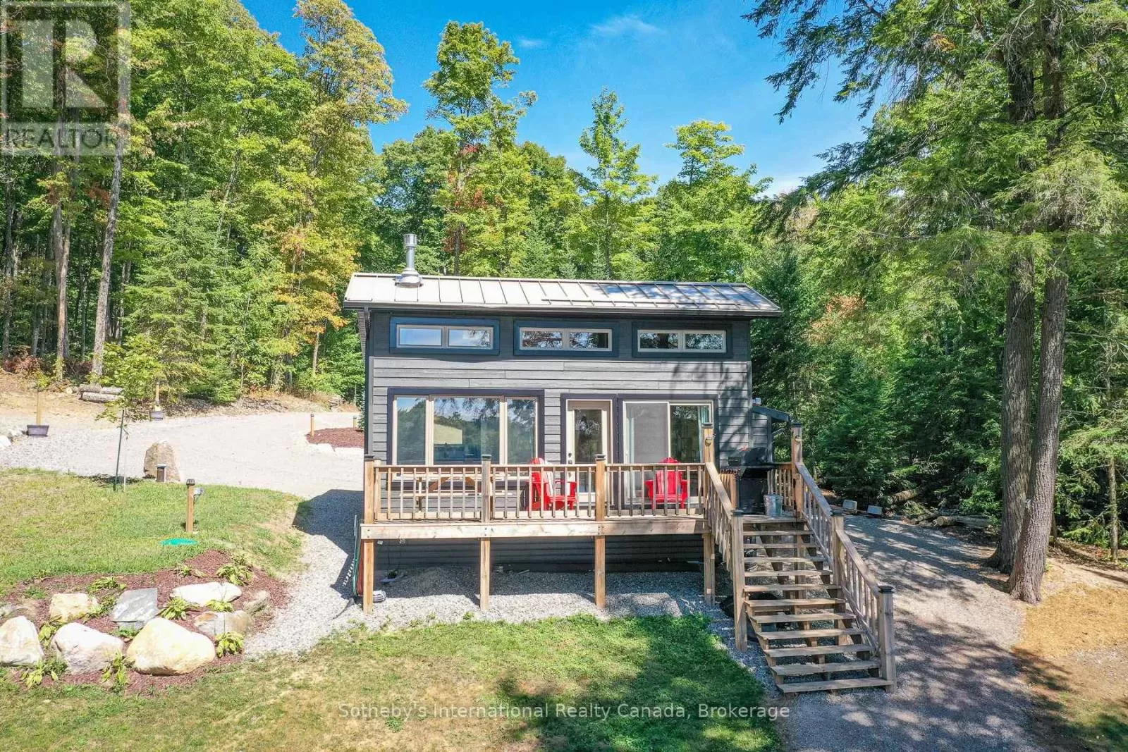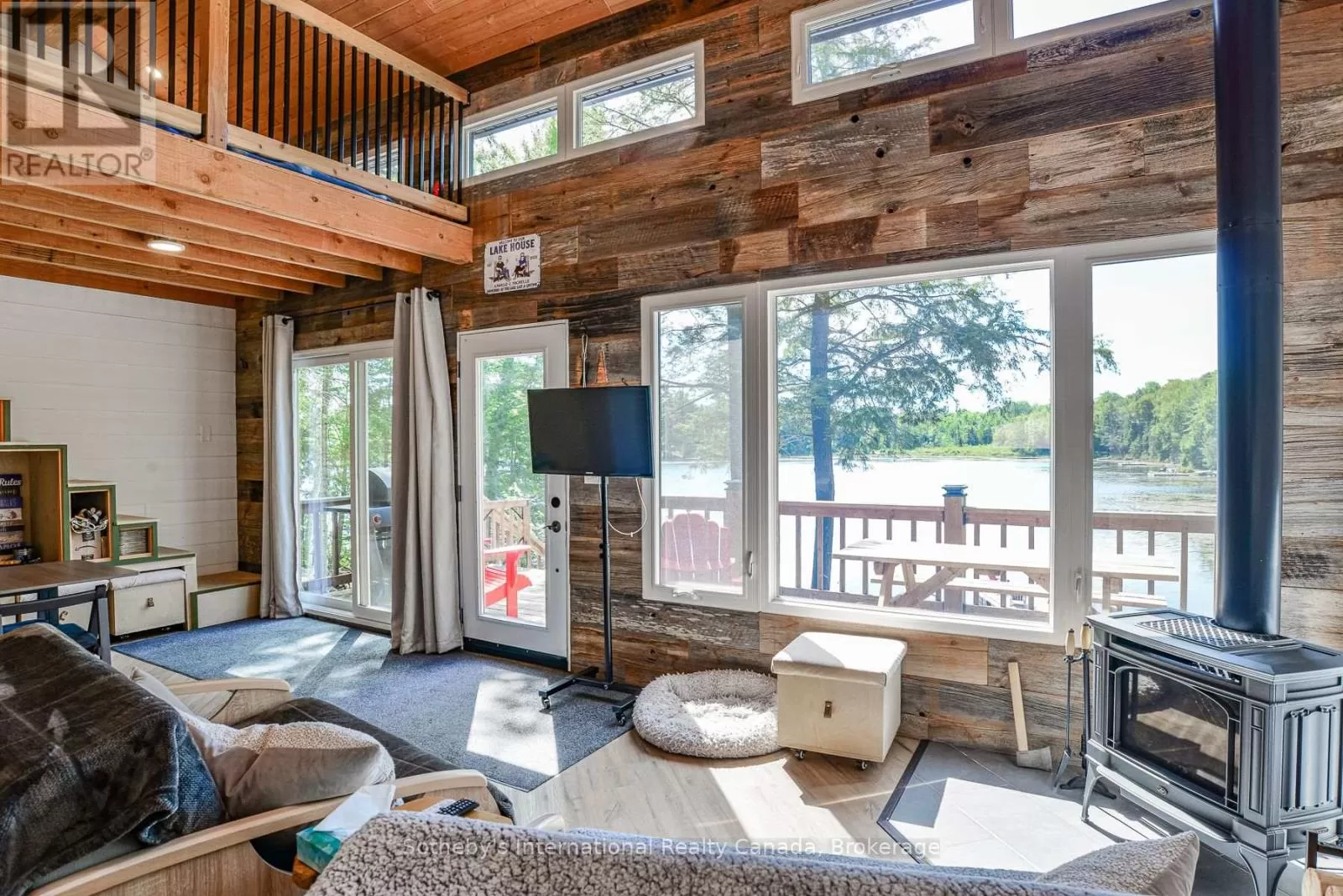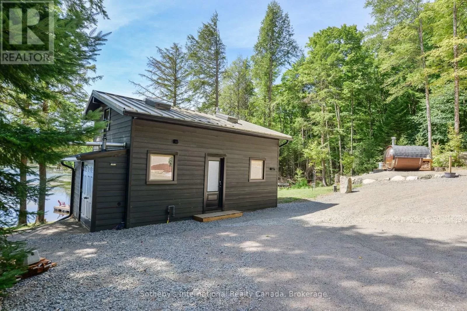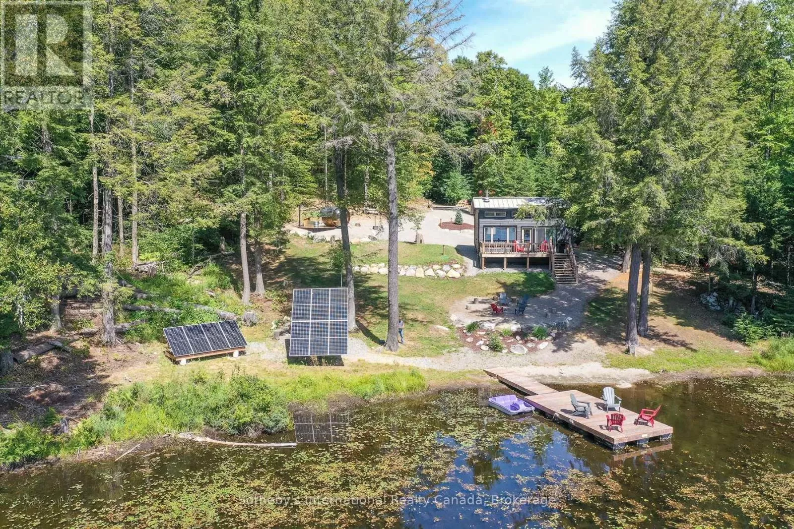Harburn Road to Pluto Trail to #1211 Discover this quiet cottage on Boyne Lake, a Haliburton treasure. Infused with charm, this retreat sleeps 6, perfect for family and friends. The open-concept layout invites relaxation, a functional kitchen space with SS appliances highlighted with a cozy Lopi fireplace and mesmerizing lake views. A unique loft bedroom and a clever Murphy bed offer comfort and space-saving ease. Boasting 300' of lake frontage and almost 4 acres of tiered, treed land, this haven ensures privacy and room to expand. A new 4-bedroom septic system and drilled well support future growth here. Savor gatherings on the spacious deck with a picnic table and the BBQ hooked up to the main propane tank, or unwind by the lakeside fire-pit with family and friends. Ample parking here with a circular driveway that also includes an area for a potential camper/trailer to enjoy stunning lake views and a dock ideal for awesome bass fishing. Indulge in a wellness retreat with the bubble window sauna, cold plunge tank, and an outdoor shower, all with lake-focused views, creating your personal escape. Powered by robust solar panels, tankless HWT and an automatic on-demand Kohler propane generator plumbed to the main tank for seamless reliability, this fully furnished cottage is ready for instant enjoyment. Just 10 minutes from Haliburtons shops, restaurants, and hospital, yet a tranquil escape. This Boyne Lake gem blends rustic allure with modern comforts. Call today to view this off-grid paradise! (id:27476)
