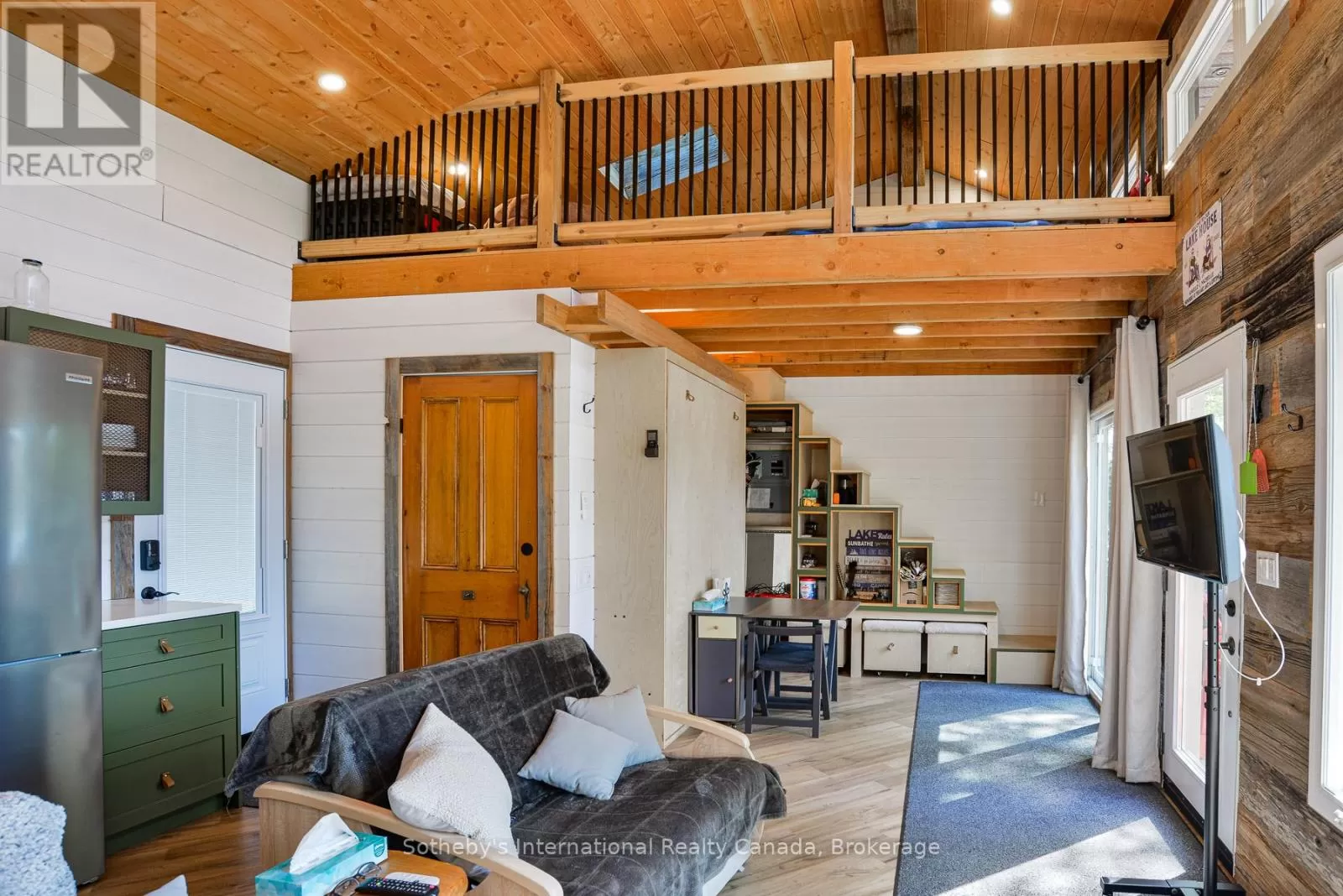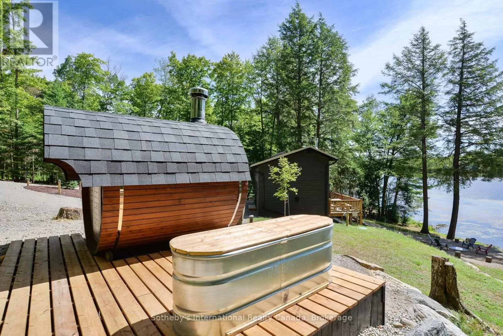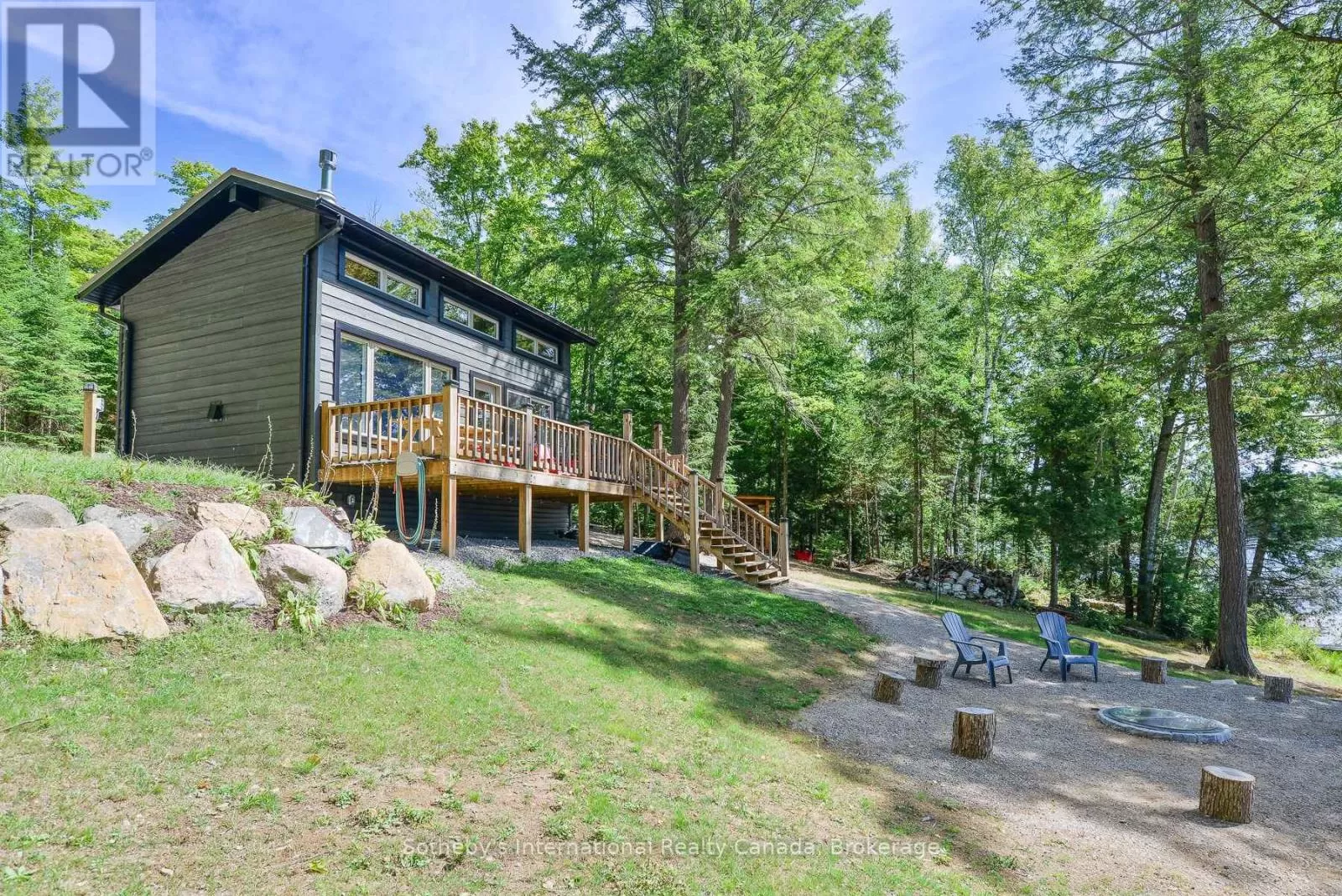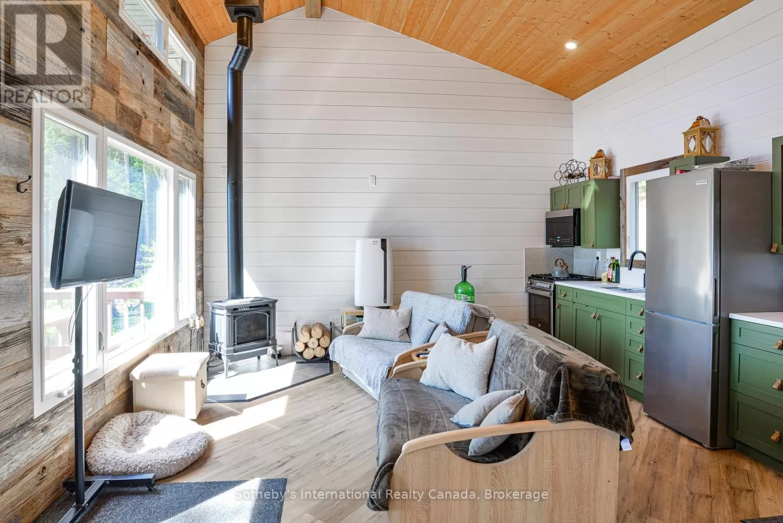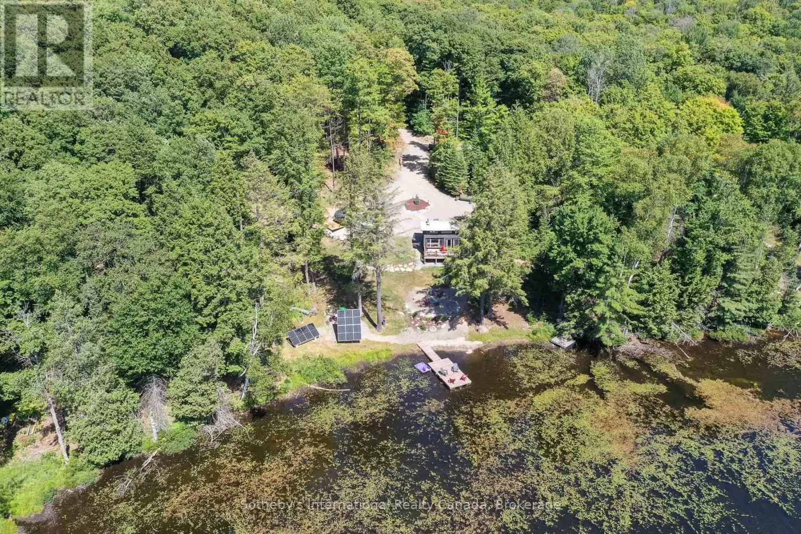 Harburn Road to Pluto Trail to #1211 Discover this quiet cottage on Boyne Lake, a Haliburton treasure. Infused with charm, this retreat sleeps 6, perfect for family and friends. The open-concept layout invites relaxation, a functional kitchen space with SS appliances highlighted with a cozy Lopi fireplace and mesmerizing lake views. A unique loft bedroom and a clever Murphy bed offer comfort and space-saving ease. Boasting 300' of lake frontage and almost 4 acres of tiered, treed land, this haven ensures privacy and room to expand. A new 4-bedroom septic system and drilled well support future growth here. Savor gatherings on the spacious deck with a picnic table and the BBQ hooked up to the main propane tank, or unwind by the lakeside fire-pit with family and friends. Ample parking here with a circular driveway that also includes an area for a potential camper/trailer to enjoy stunning lake views and a dock ideal for awesome bass fishing. Indulge in a wellness retreat with the bubble window sauna, cold plunge tank, and an outdoor shower, all with lake-focused views, creating your personal escape. Powered by robust solar panels, tankless HWT and an automatic on-demand Kohler propane generator plumbed to the main tank for seamless reliability, this fully furnished cottage is ready for instant enjoyment. Just 10 minutes from Haliburtons shops, restaurants, and hospital, yet a tranquil escape. This Boyne Lake gem blends rustic allure with modern comforts. Call today to view this off-grid paradise! (id:27476)