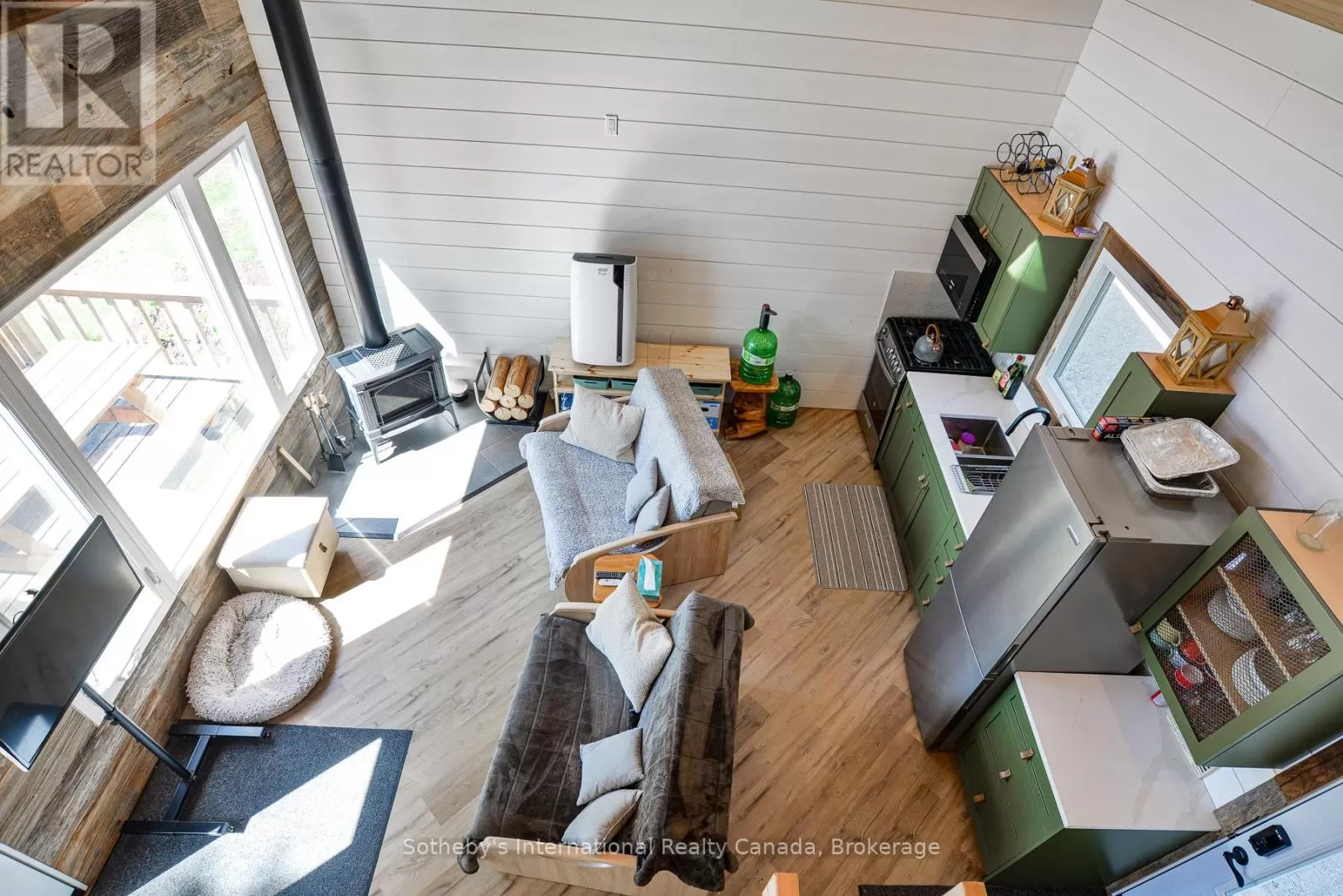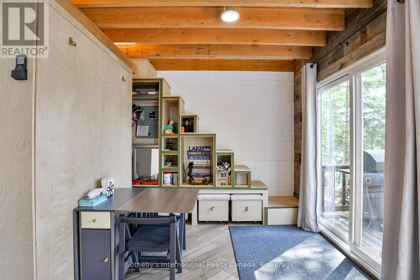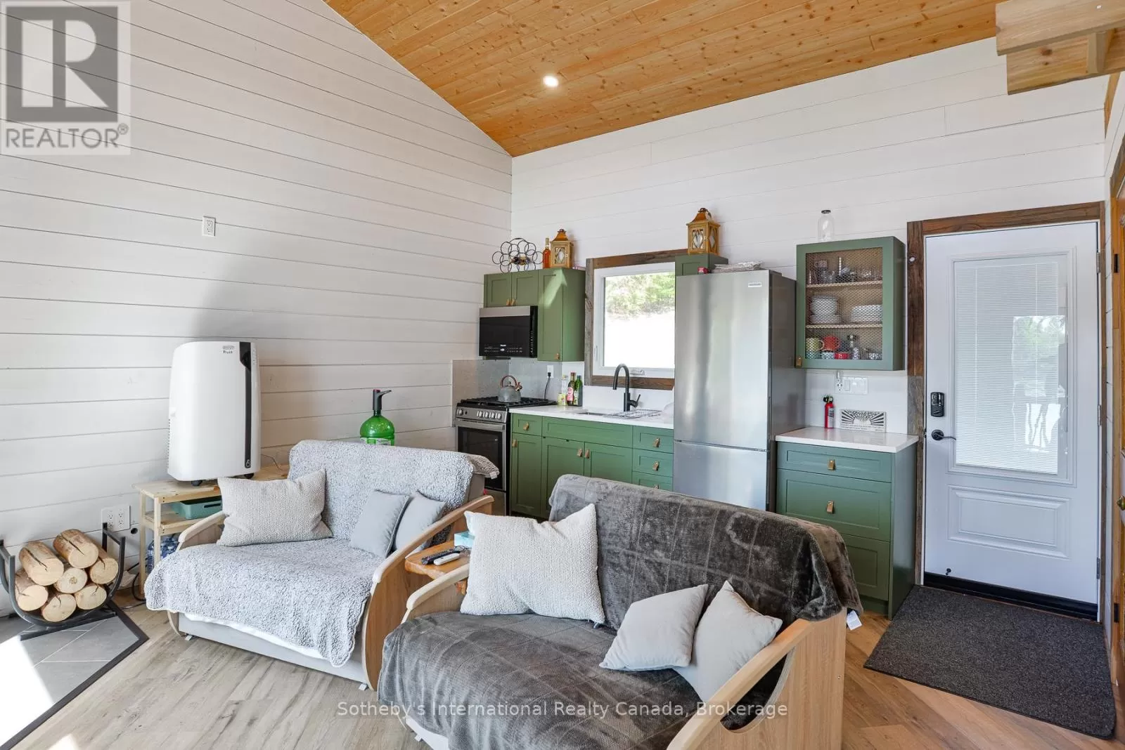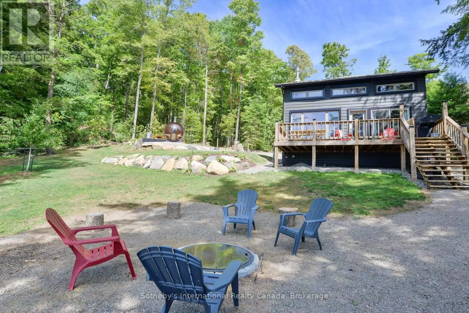 Harburn Road to Pluto Trail to #1211 Discover this quiet cottage on Boyne Lake, a Haliburton treasure. Infused with charm, this retreat sleeps 6, perfect for family and friends. The open-concept layout invites relaxation, a functional kitchen space with SS appliances highlighted with a cozy Lopi fireplace and mesmerizing lake views. A unique loft bedroom and a clever Murphy bed offer comfort and space-saving ease. Boasting 300' of lake frontage and almost 4 acres of tiered, treed land, this haven ensures privacy and room to expand. A new 4-bedroom septic system and drilled well support future growth here. Savor gatherings on the spacious deck with a picnic table and the BBQ hooked up to the main propane tank, or unwind by the lakeside fire-pit with family and friends. Ample parking here with a circular driveway that also includes an area for a potential camper/trailer to enjoy stunning lake views and a dock ideal for awesome bass fishing. Indulge in a wellness retreat with the bubble window sauna, cold plunge tank, and an outdoor shower, all with lake-focused views, creating your personal escape. Powered by robust solar panels, tankless HWT and an automatic on-demand Kohler propane generator plumbed to the main tank for seamless reliability, this fully furnished cottage is ready for instant enjoyment. Just 10 minutes from Haliburtons shops, restaurants, and hospital, yet a tranquil escape. This Boyne Lake gem blends rustic allure with modern comforts. Call today to view this off-grid paradise! (id:27476)