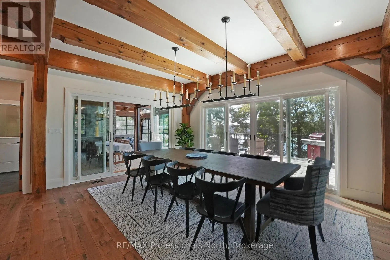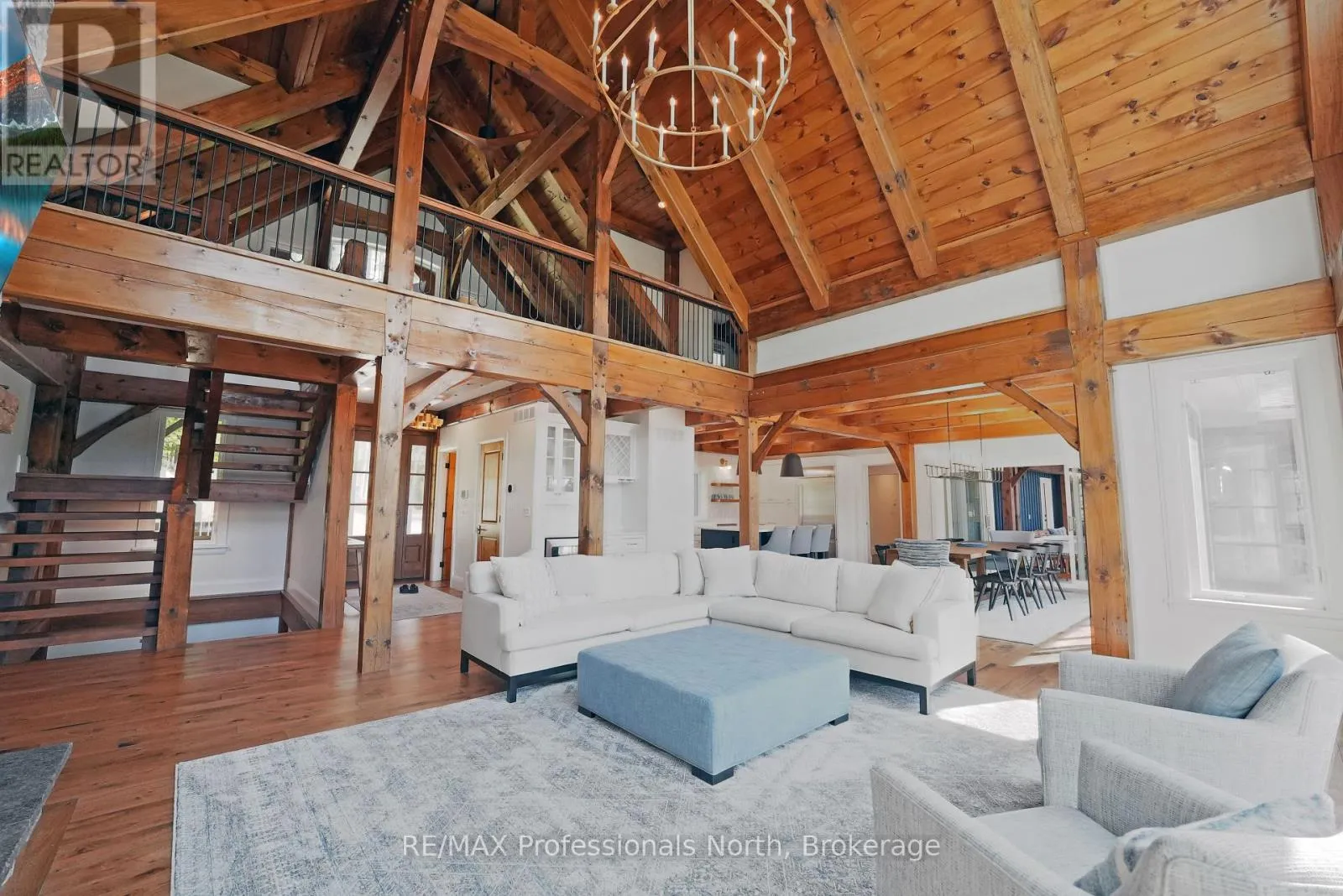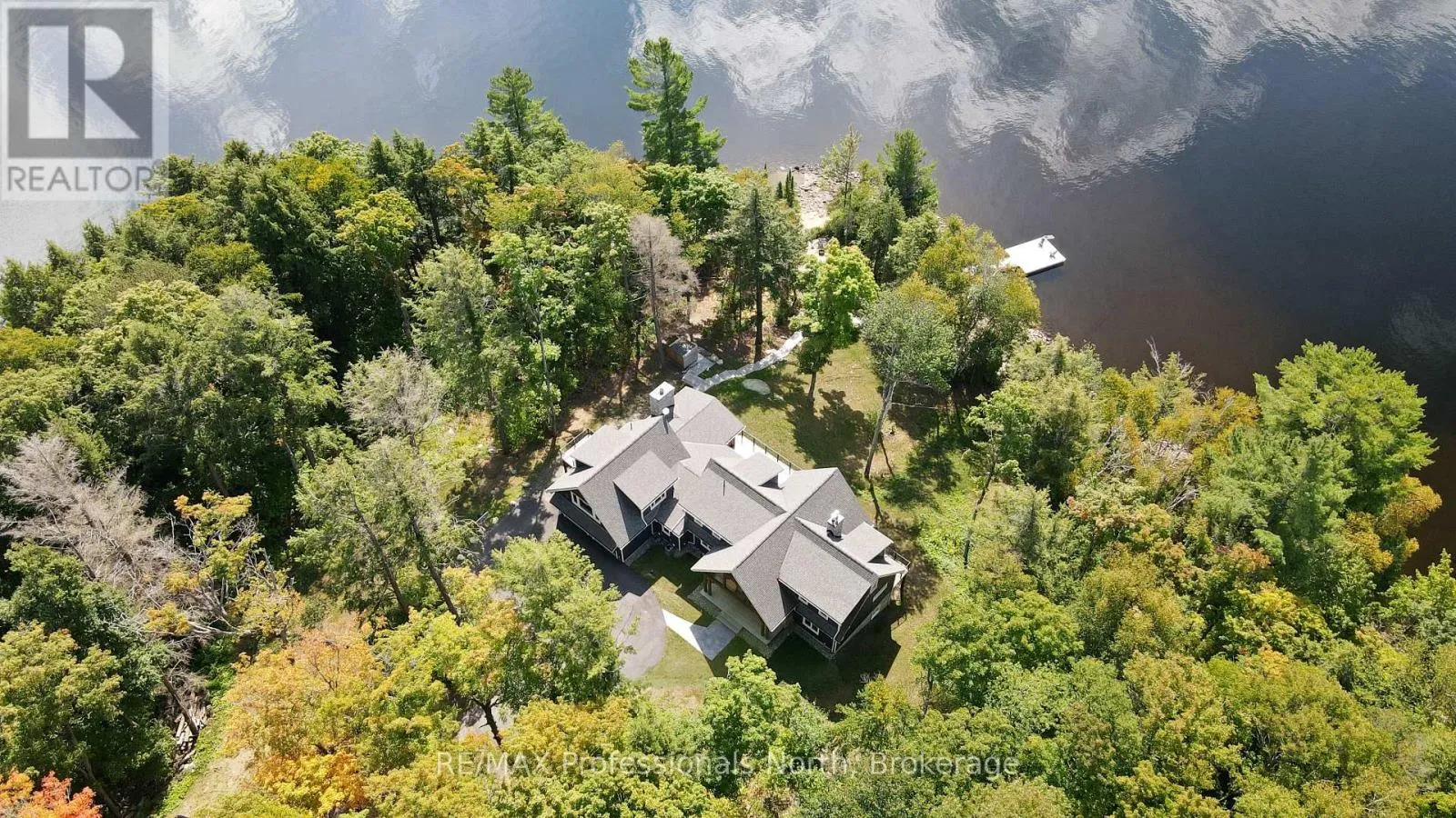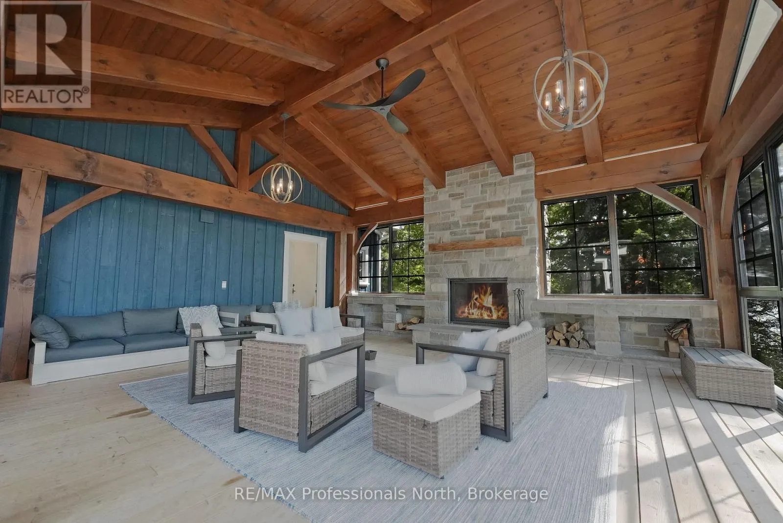 Cross Streets: Alpine Ridge/Flatwater Cove Trail. ** Directions: Hodgson Road to Burlywood Trail to Bryson Trail to Alpine Ridge Drive to Flatwater Cove Tr to SOP. Escape to a world of privacy and professional design with this one-of-a-kind estate on Percy Lake. Set on more than 4 acres of private grounds and boasting just under 600 feet of pristine, southern-exposed waterfront, this Haliburton sanctuary offers an experience in luxury rarely found. The tranquility of Percy Lake will be the escape you need, while providing a big lake view facing an entire shoreline of protected land.Step inside this grand timberframe home, where thoughtful design and premium craftsmanship define every space. The sprawling open-concept living area, anchored by a stunning floor-to-ceiling stone fireplace, flows effortlessly into a gourmet kitchen and spacious dining room. Each of the 7 bedrooms and 7 bathrooms is a private haven, with high-end fixtures and finishes. From light fixtures to tile patterns to drapery, each finishing has been expertly chosen. The main floor primary suite will exceed even the highest of standards. Embrace the seamless integration of indoor and outdoor living with a post and beam screened-in room, complete with its own wood-burning fireplace, providing an enchanting space to dine. The property's unparalleled amenities extend to a private waterfront sauna, offering a spa-like retreat with lake views. Guests will feel right at home in the versatile, finished loft above the garage, which features a kitchenette, balcony, bedroom, and bathrooma perfect, self-contained suite for family, staff or friends. With radiant in-floor heating and abundant natural light throughout the day, every detail has been curated for comfort and tranquility. This newly developed community also provides shared ownership in 1200 acres of land for endless exploring. This is more than just a cottage; it's a legacy property designed for those who seek the ultimate in lakeside living. (id:27476)