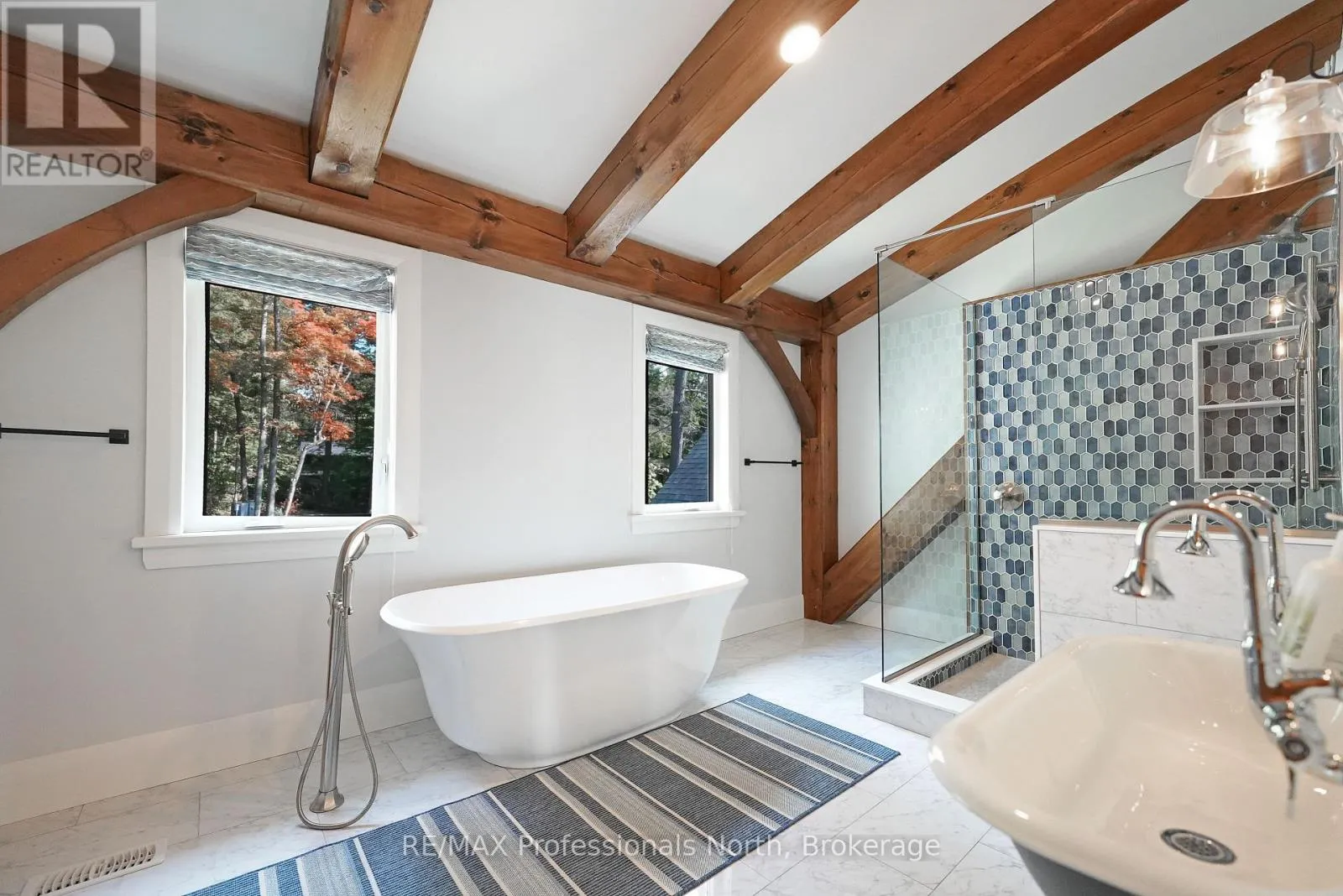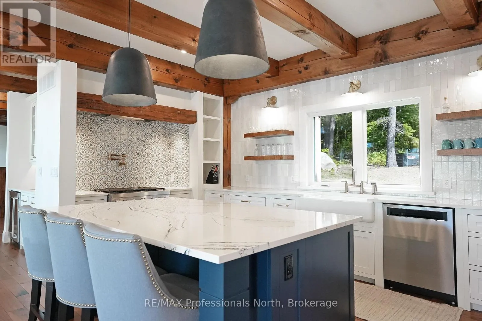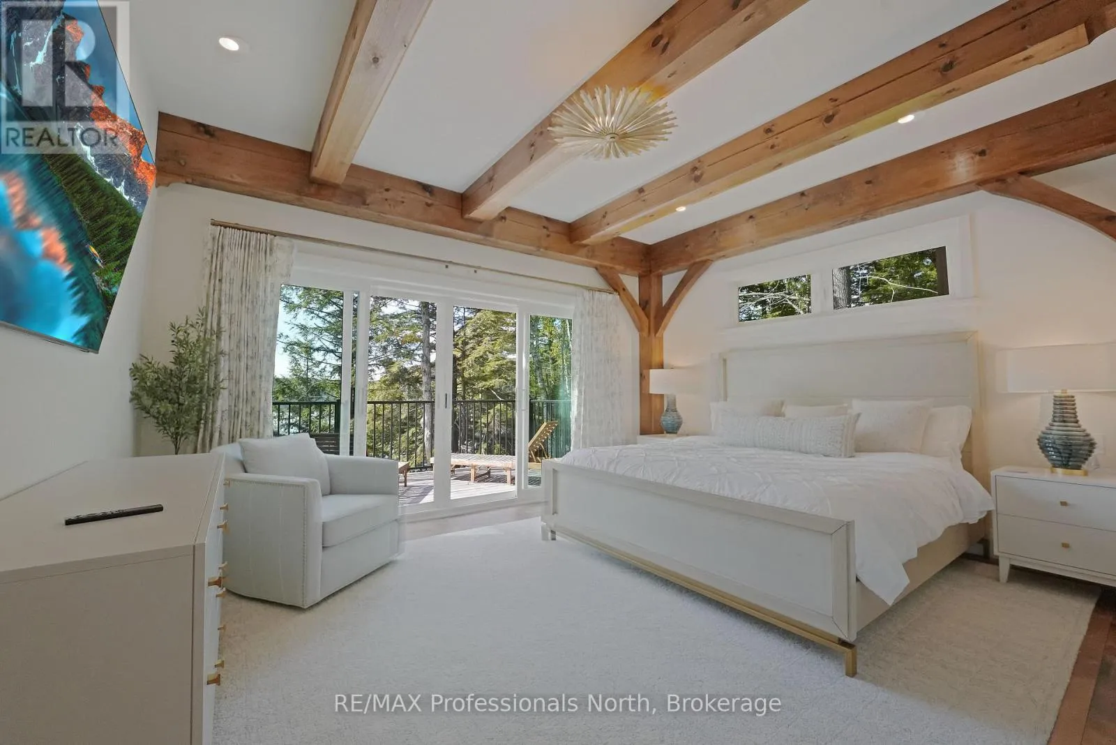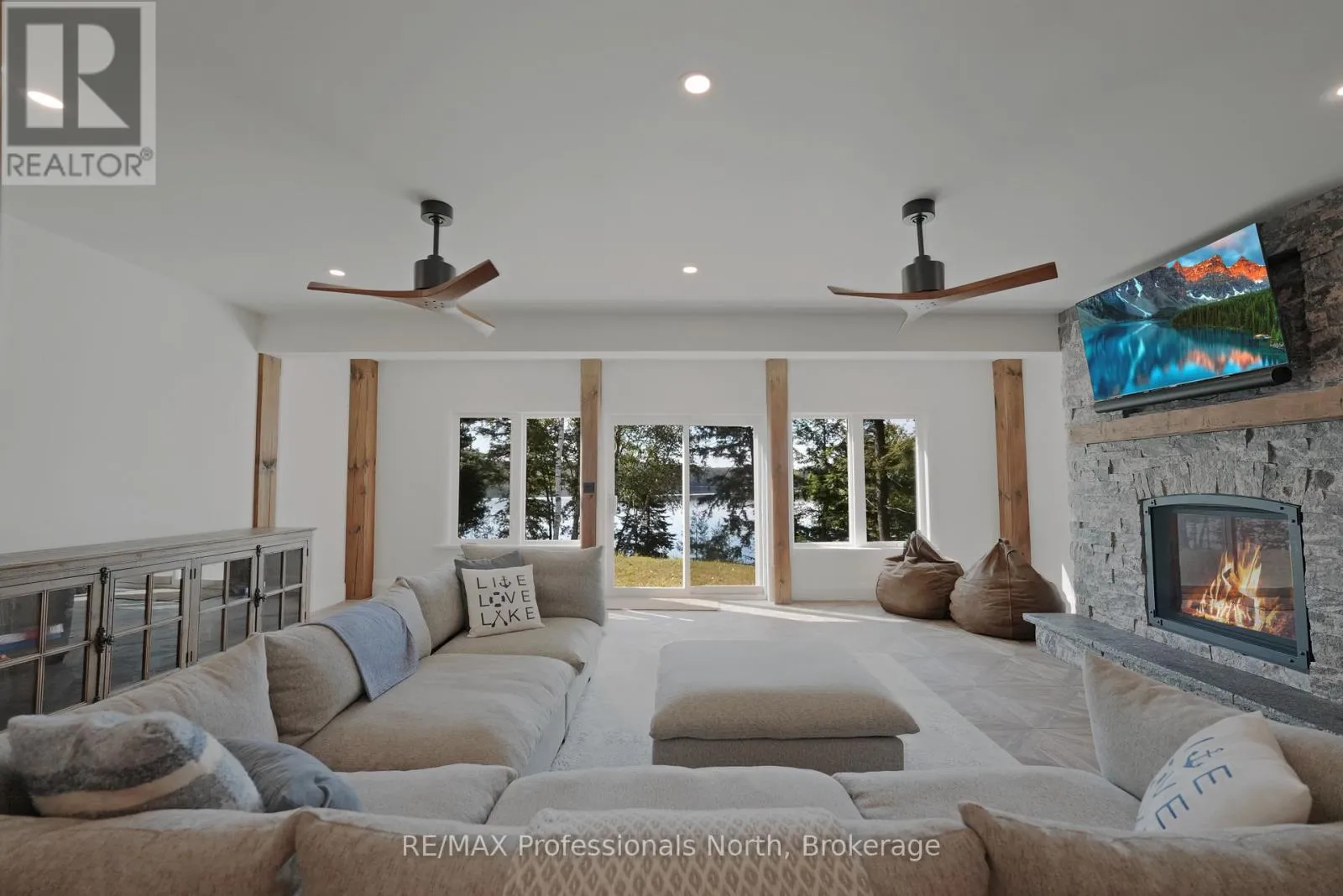Cross Streets: Alpine Ridge/Flatwater Cove Trail. ** Directions: Hodgson Road to Burlywood Trail to Bryson Trail to Alpine Ridge Drive to Flatwater Cove Tr to SOP. Escape to a world of privacy and professional design with this one-of-a-kind estate on Percy Lake. Set on more than 4 acres of private grounds and boasting just under 600 feet of pristine, southern-exposed waterfront, this Haliburton sanctuary offers an experience in luxury rarely found. The tranquility of Percy Lake will be the escape you need, while providing a big lake view facing an entire shoreline of protected land.Step inside this grand timberframe home, where thoughtful design and premium craftsmanship define every space. The sprawling open-concept living area, anchored by a stunning floor-to-ceiling stone fireplace, flows effortlessly into a gourmet kitchen and spacious dining room. Each of the 7 bedrooms and 7 bathrooms is a private haven, with high-end fixtures and finishes. From light fixtures to tile patterns to drapery, each finishing has been expertly chosen. The main floor primary suite will exceed even the highest of standards. Embrace the seamless integration of indoor and outdoor living with a post and beam screened-in room, complete with its own wood-burning fireplace, providing an enchanting space to dine. The property's unparalleled amenities extend to a private waterfront sauna, offering a spa-like retreat with lake views. Guests will feel right at home in the versatile, finished loft above the garage, which features a kitchenette, balcony, bedroom, and bathrooma perfect, self-contained suite for family, staff or friends. With radiant in-floor heating and abundant natural light throughout the day, every detail has been curated for comfort and tranquility. This newly developed community also provides shared ownership in 1200 acres of land for endless exploring. This is more than just a cottage; it's a legacy property designed for those who seek the ultimate in lakeside living. (id:27476)