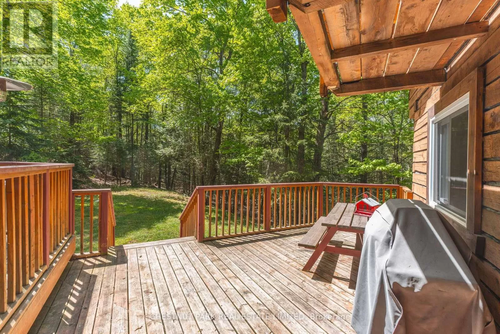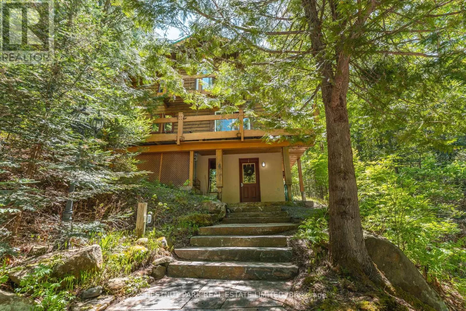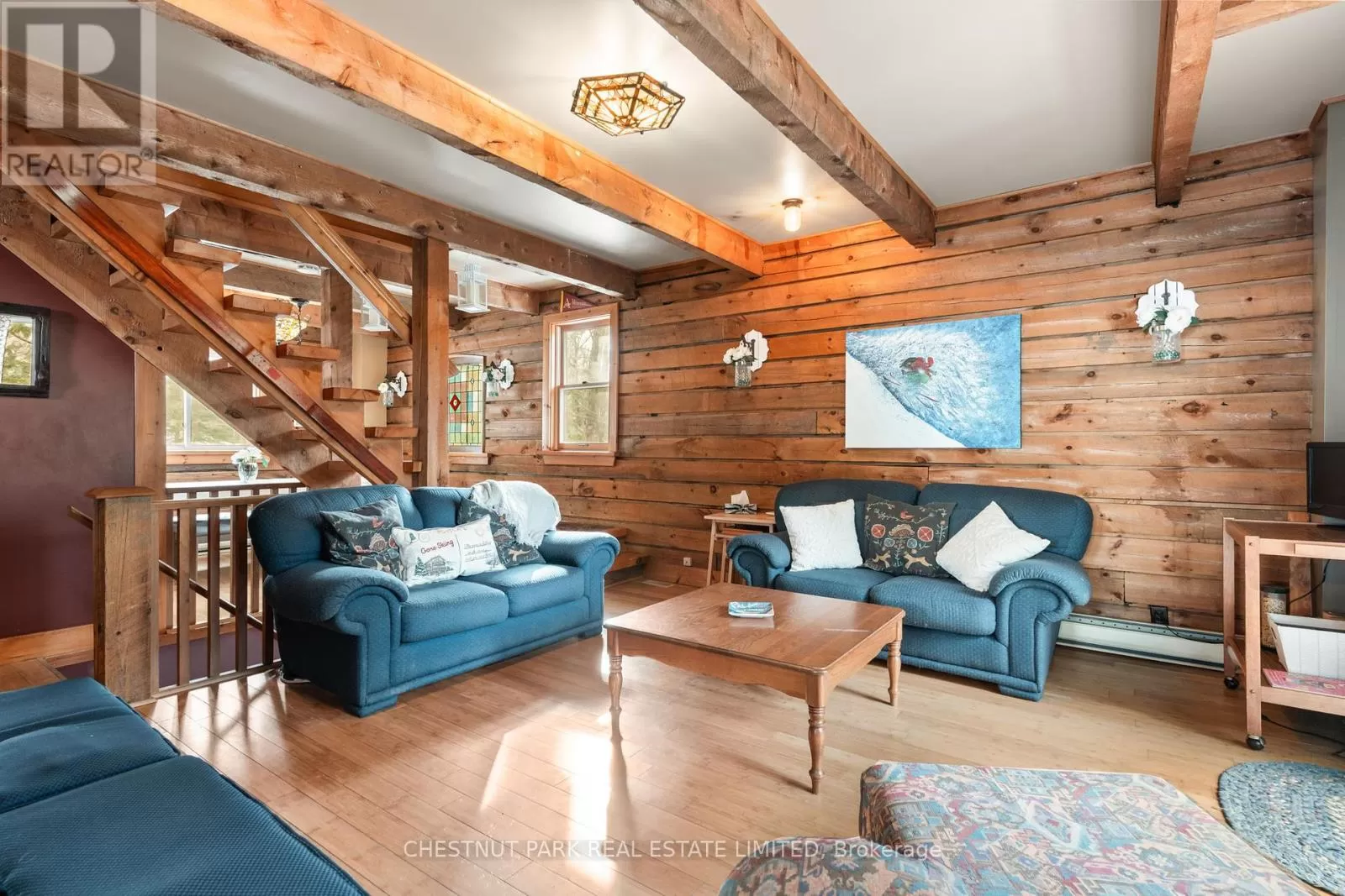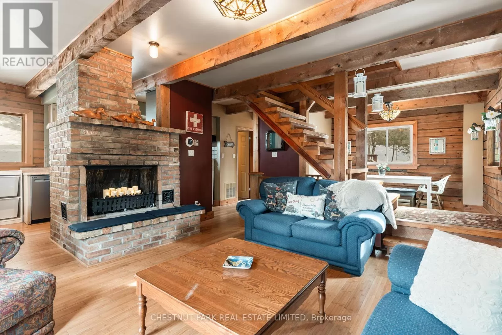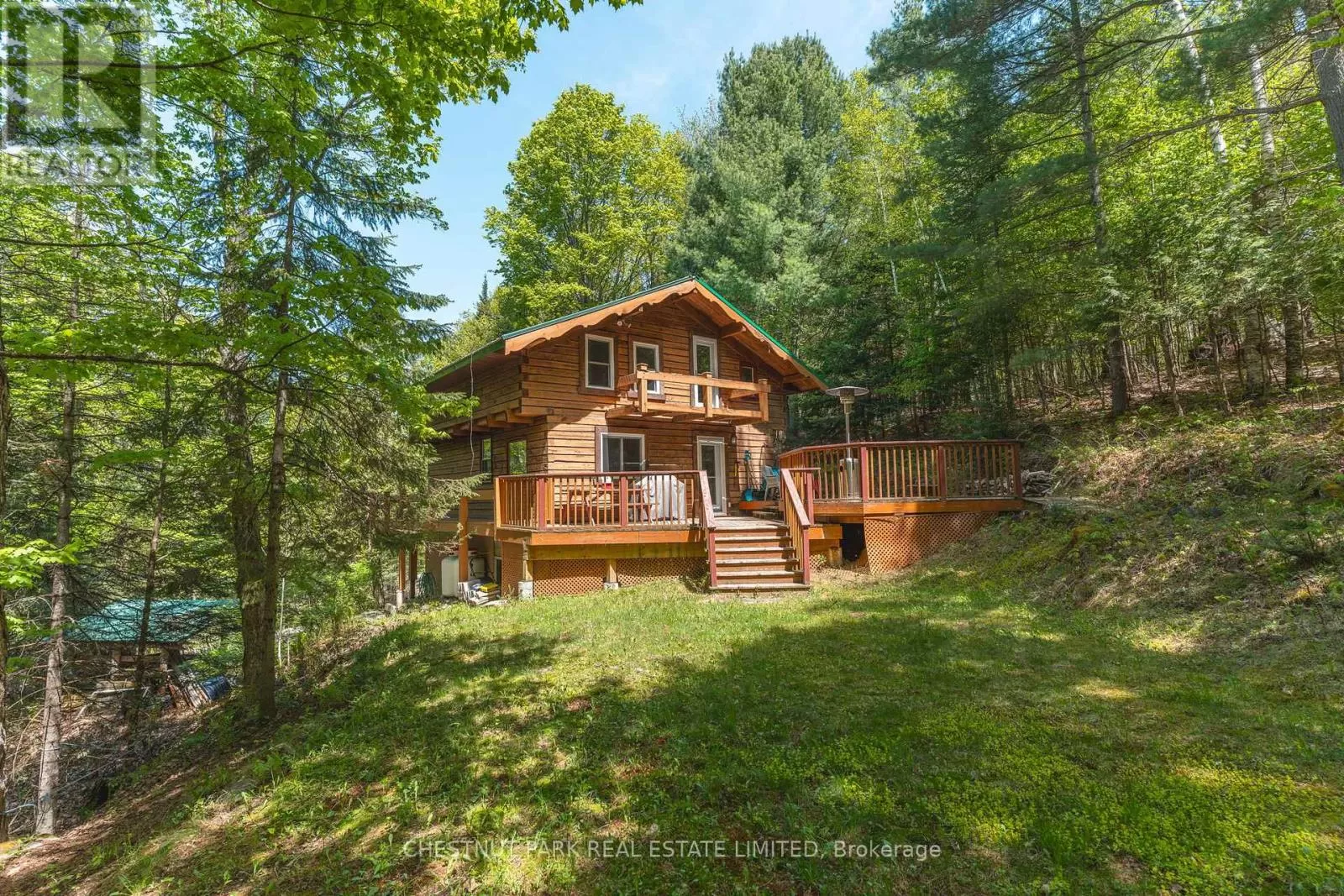Cross Streets: County Road 14 & Sir Sams Road. ** Directions: Haliburton lake road to Sir Sams's Road to SOP. Step out your front door and straight into adventure! This stunning log chalet puts you in the heart of the Haliburton Highlands playground, just a short walk from the slopes, trails, spa, and dining at Sir Sams Ski Area & Inn. Ski all winter, bike all summer, paddle crystal-clear lakes, hike endless trails, and unwind at sandy beaches all within minutes. With every season offering a new way to play, this chalet is your launchpad for year-round action. Set on a private, tiered lot with treetop views and a creek nearby, the property feels like its own wilderness retreat while keeping you close to the action. Gather friends and family in the open-concept living and dining area, warm up by the striking masonry fireplace after a day on the slopes, or relax in the spacious primary suite with ensuite after a long hike. With 3+1 bedrooms and 3 bathrooms, there's plenty of room for everyone to join the adventure. Extra perks? Year-round road access, strong rental income potential, and even maple syrup production from 25 active taps. Whether you want a family adventure hub, a vacation retreat, or an income-generating rental, this chalet has it all. Ski. Hike. Bike. Paddle. Repeat. Your Haliburton adventure starts here. Book your private viewing today and see why this is more than a home its a lifestyle! (id:27476)