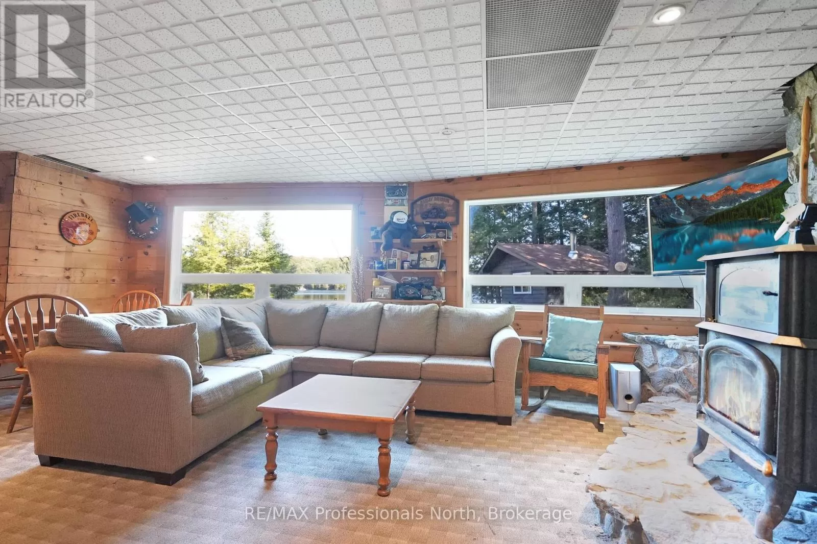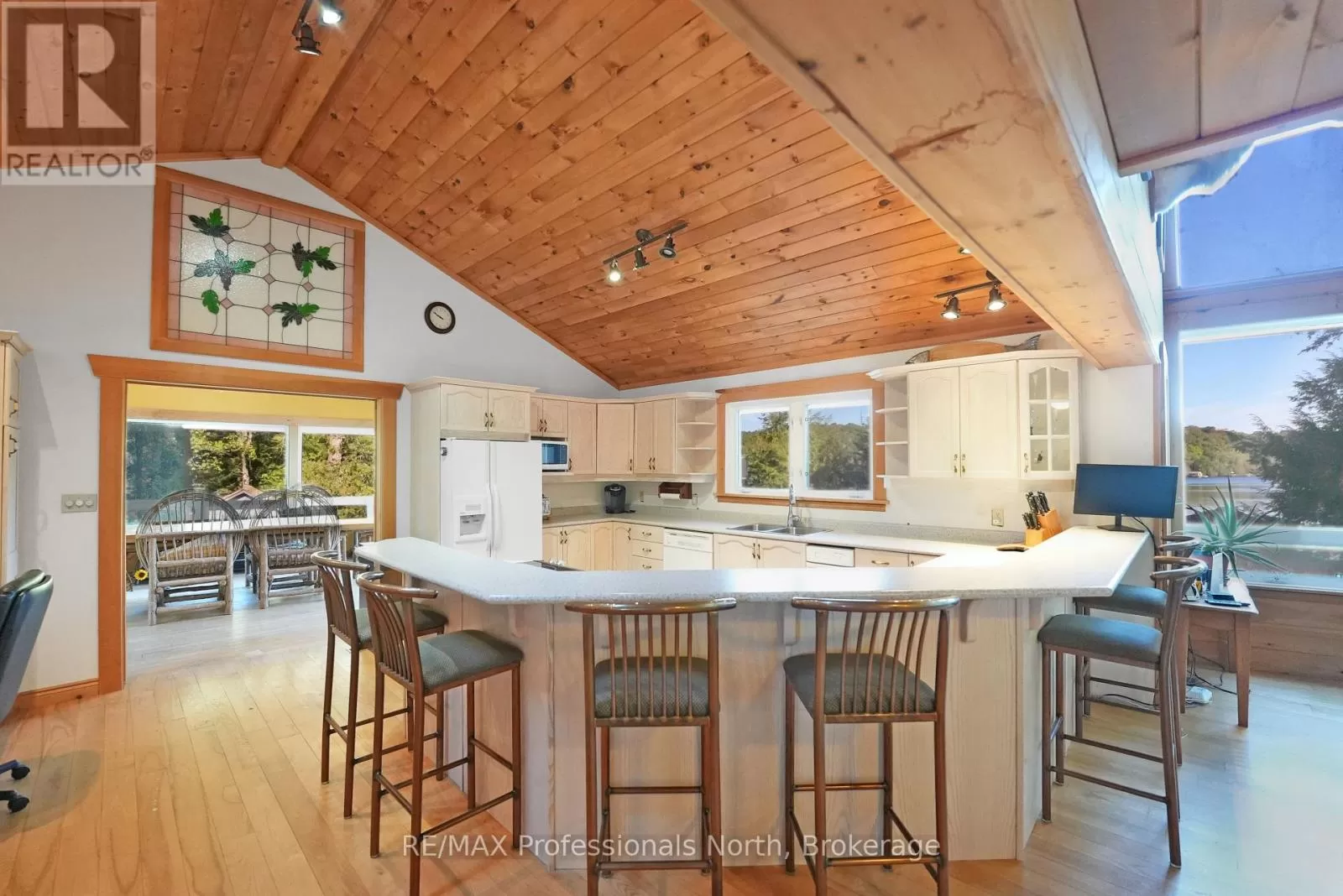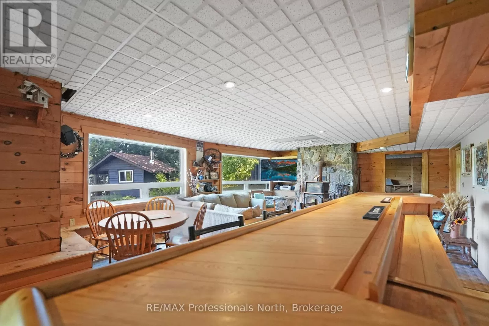 Cross Streets: Loop Road/Burleigh Road. ** Directions: Loop road to Burleigh Road to Sumcot Road, to Allen Lake drive to the very end #1645. Private 4-Bedroom Cottage Retreat with Loft, Waterfront & Heated Garage! Welcome to your dream cottage escape- a stunning, fully-equipped 4-bedroom getaway offering the perfect blend of rustic charm and comfort. Nestled on a private, gradual sloping lot with clean, deep water and a sandy beach area, this property is ideal for swimming, boating, and creating lifelong memories. Inside, you'll find three spacious levels of living space, including a cozy loft area, perfect for reading, relaxing, or extra guest space. The bright, open-concept living room features large windows that flood the space with natural light and a beautiful stone fireplace to gather around on cool evenings. Enjoy indoor-outdoor living in the expansive sunroom, perfect for dining or relaxing while surrounded by nature. The fully finished basement offers a large recreation room complete with a pool table and wet bar - an entertainers dream! =Bonus features include a massive 32 x 32 heated garage with loft space above, ideal for storage, a workshop, or a place to park your toys! Whether you're seeking a peaceful family retreat or a year-round home/cottage, this property checks all the boxes! (id:27476)