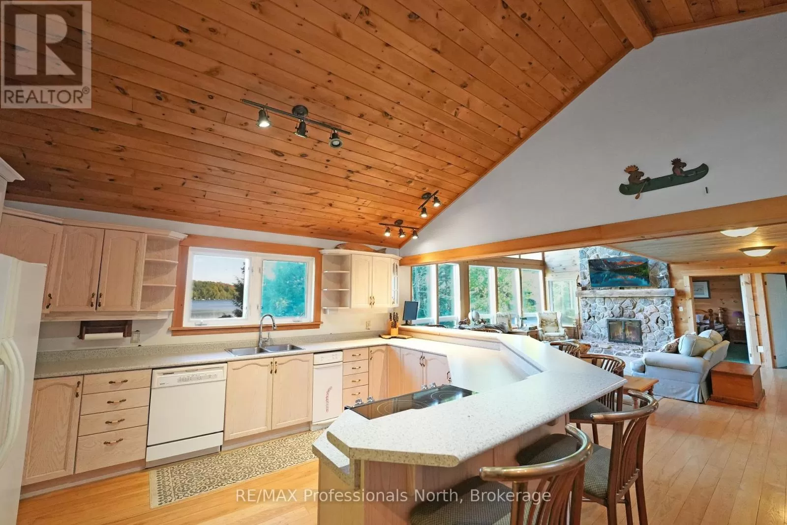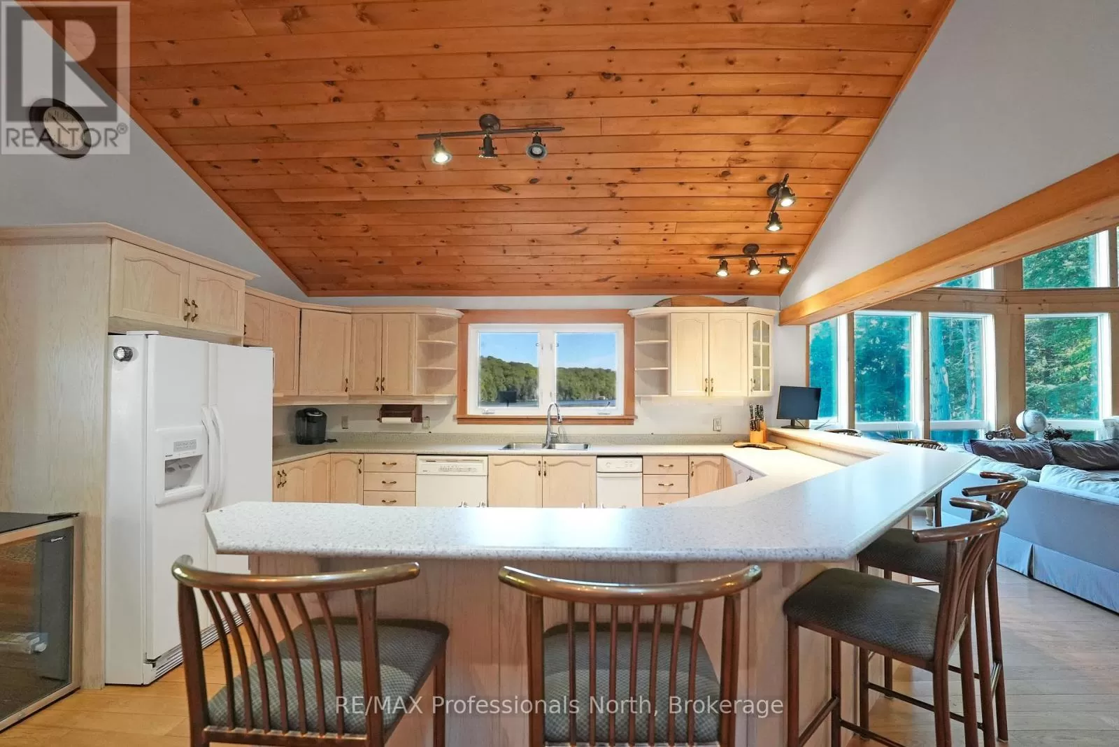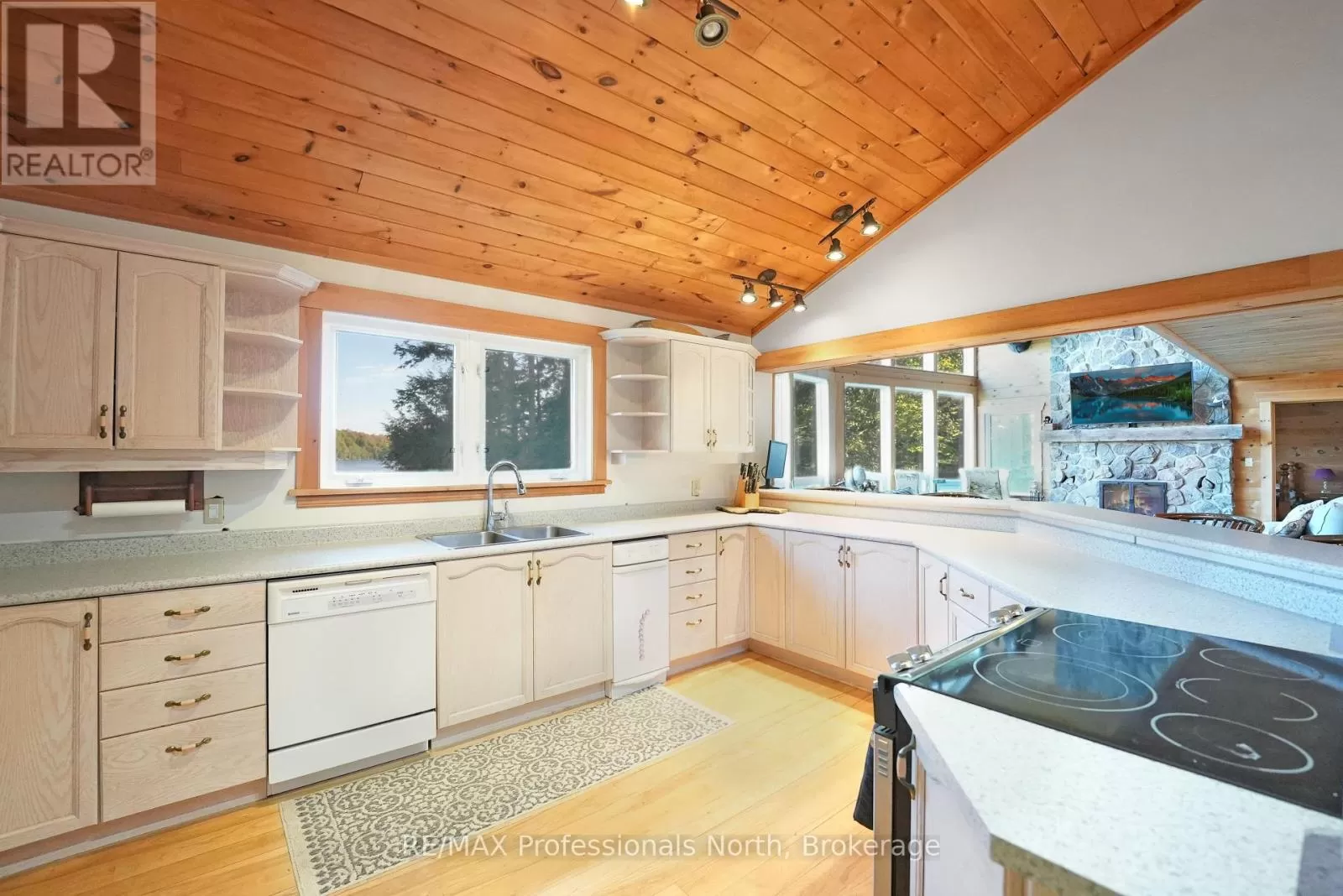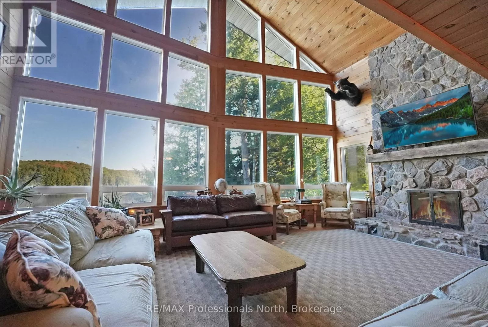 Cross Streets: Loop Road/Burleigh Road. ** Directions: Loop road to Burleigh Road to Sumcot Road, to Allen Lake drive to the very end #1645. Private 4-Bedroom Cottage Retreat with Loft, Waterfront & Heated Garage! Welcome to your dream cottage escape- a stunning, fully-equipped 4-bedroom getaway offering the perfect blend of rustic charm and comfort. Nestled on a private, gradual sloping lot with clean, deep water and a sandy beach area, this property is ideal for swimming, boating, and creating lifelong memories. Inside, you'll find three spacious levels of living space, including a cozy loft area, perfect for reading, relaxing, or extra guest space. The bright, open-concept living room features large windows that flood the space with natural light and a beautiful stone fireplace to gather around on cool evenings. Enjoy indoor-outdoor living in the expansive sunroom, perfect for dining or relaxing while surrounded by nature. The fully finished basement offers a large recreation room complete with a pool table and wet bar - an entertainers dream! =Bonus features include a massive 32 x 32 heated garage with loft space above, ideal for storage, a workshop, or a place to park your toys! Whether you're seeking a peaceful family retreat or a year-round home/cottage, this property checks all the boxes! (id:27476)