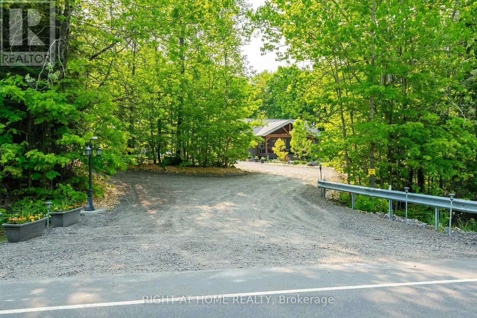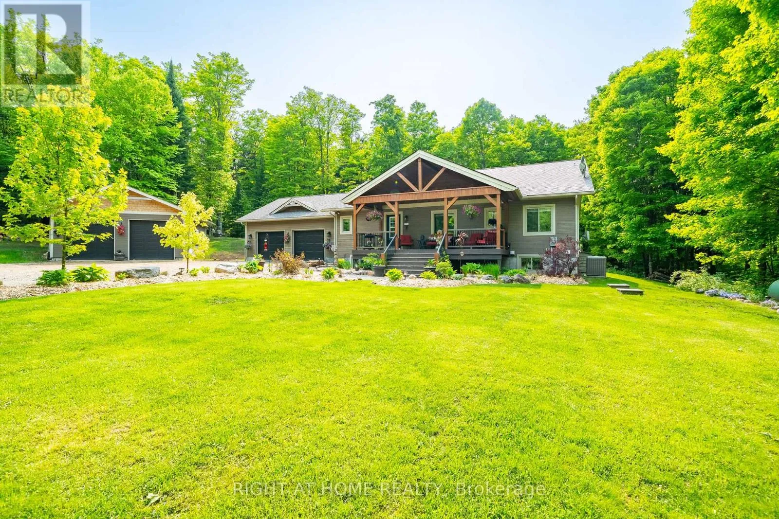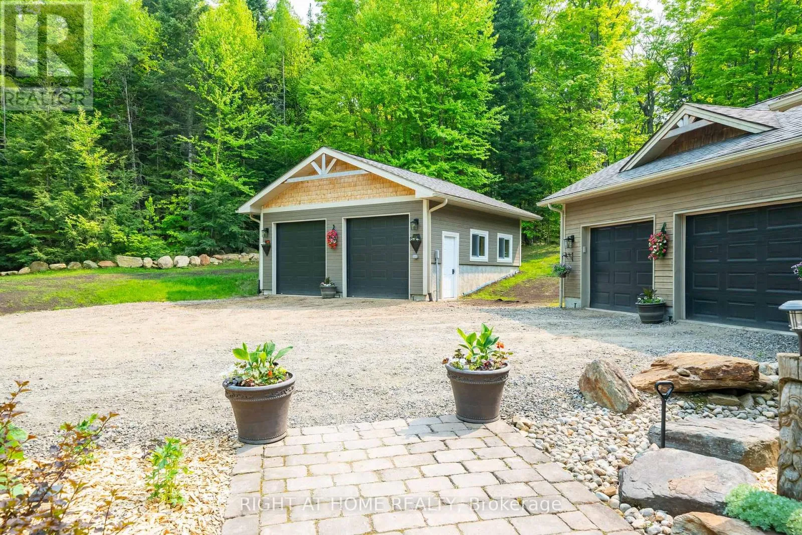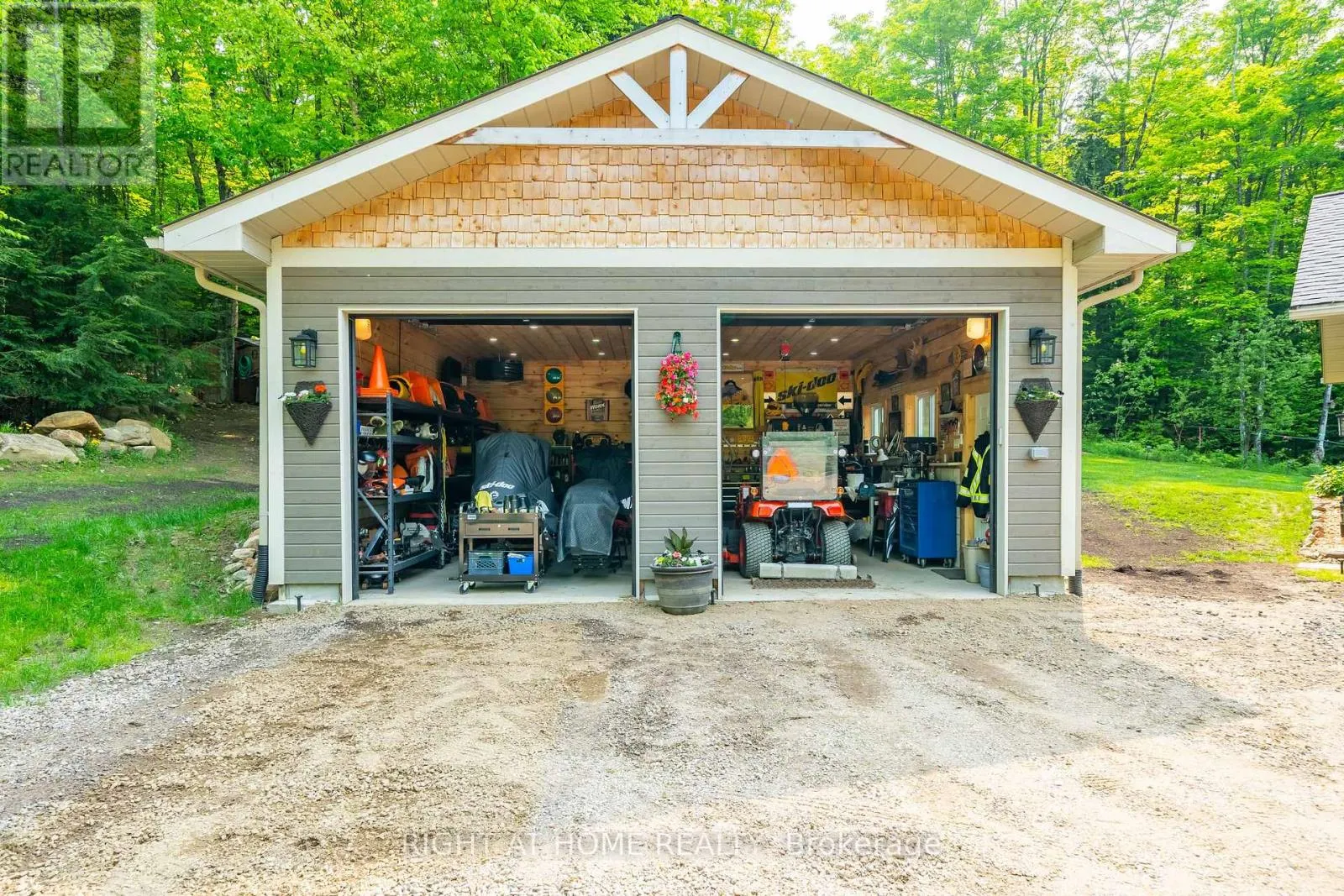 Cross Streets: Hwy35 & Hwy118 In West Guilford. ** Directions: Hwy35 to118Hwy follow east to address. Private 5.5 Acres Lot - Where Nature and Comfort Live in Harmony, Here Life Slows Down and Peace Begins! Welcome to a rare gem that's more than just a home, it's a lifestyle. Charming, Maintained with love and tucked away on a stunning, very private and peaceful 5.5 acre lot, this charming bungalow offers full connection with nature with deer visiting your backyard from time to time and birdsong as your daily soundtrack. Step into your dream with this character-filled bungalow boasting 3+1 bedrooms & 3 full bathrooms, a layout perfect for comfort and flexibility. Approximately 3,000 sq ft of living space. The cathedral ceilings in the open-concept living area and kitchen create an airy, inviting space centred around a stunning gas fireplace, perfect for cozy evenings. The primary suite is a private retreat featuring a walk-in closet and a luxurious 5-piece ensuite overlooking serene greenery. Whether you're a car enthusiast or a collector of big toys - this property has room for it all!You'll be thrilled with the attached 27'6"x27' garage PLUS a newly built 24'x24' heated detached workshop/garage with concrete slab, ideal for year-round projects, storage, or hobbies. The finished basement offers a huge great room with a solid wood bar, large above-grade windows, an extra bedroom, and plenty of storage to customize for your needs. Pet parents, rejoice! A dedicated mudroom with a dog shower makes daily life cleaner, easier, and even more pet-friendly. Step outside to your stunning front and backyard oasis, where peace, privacy, and panoramic nature views await. Sip your morning coffee on the deck as the forest whispers around you, its pure paradise. Enjoy the convenience of dual driveways and easy commutes on fully paved roads. You're just a short drive to shopping, public beaches, Lakeside Golf Club, groceries, and much more.This isn't just a move it's a rare opportunity to live the lifestyle you've dreamed of for very affordable price! (id:27476)
