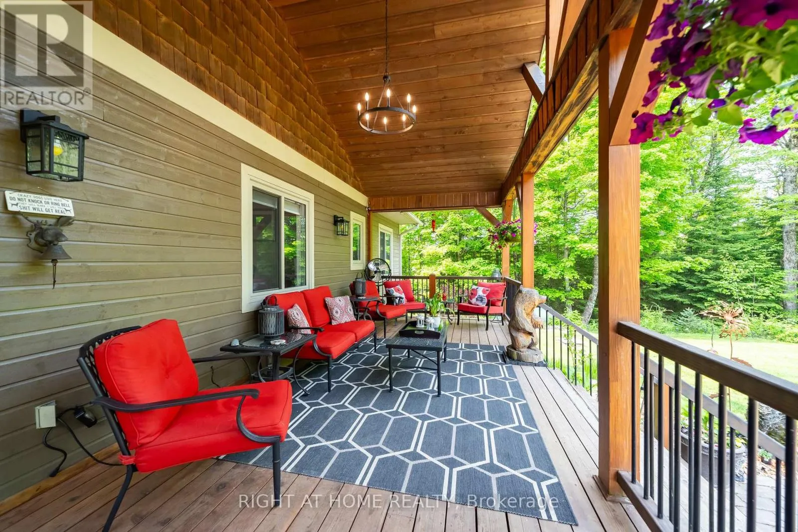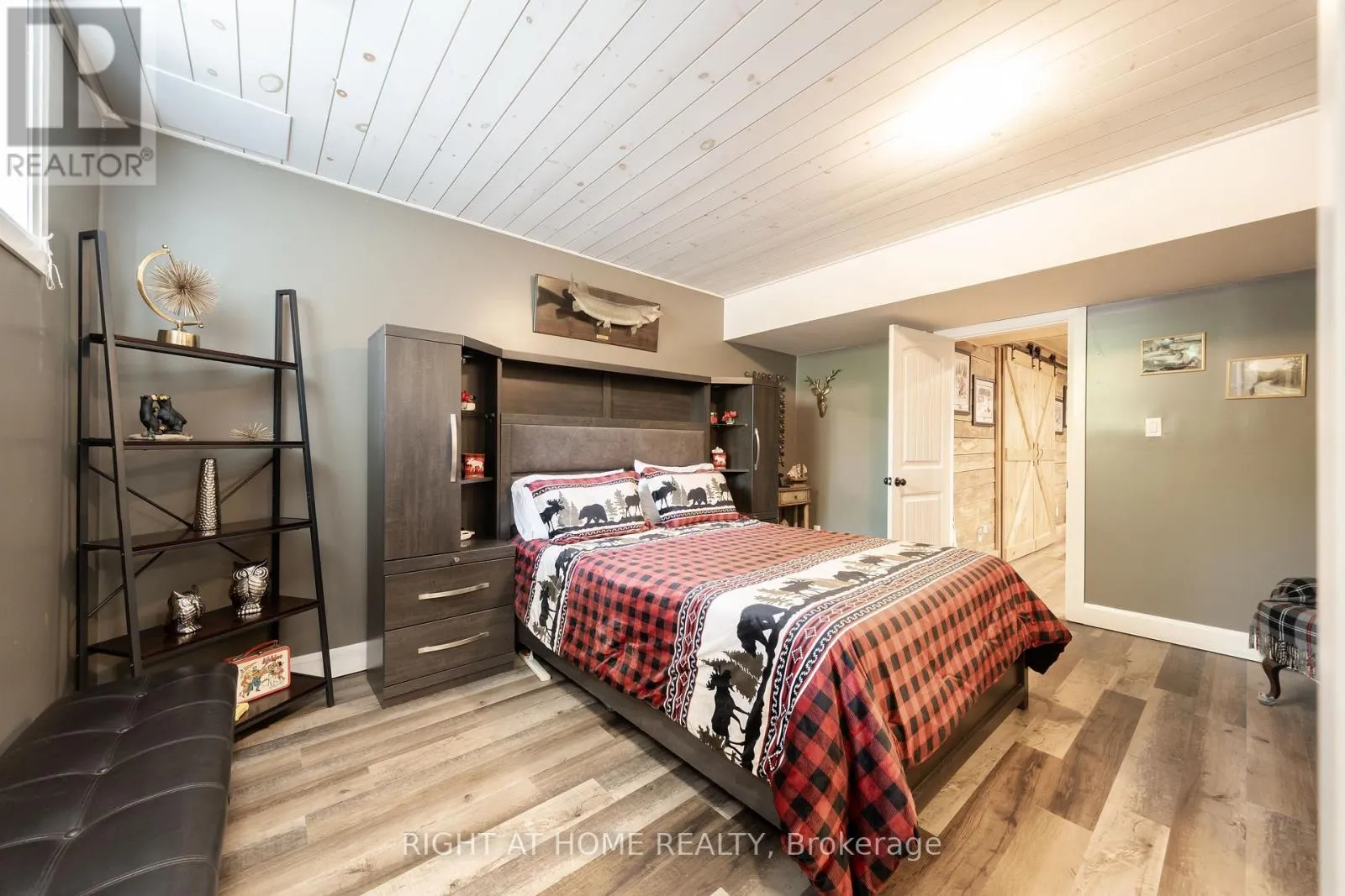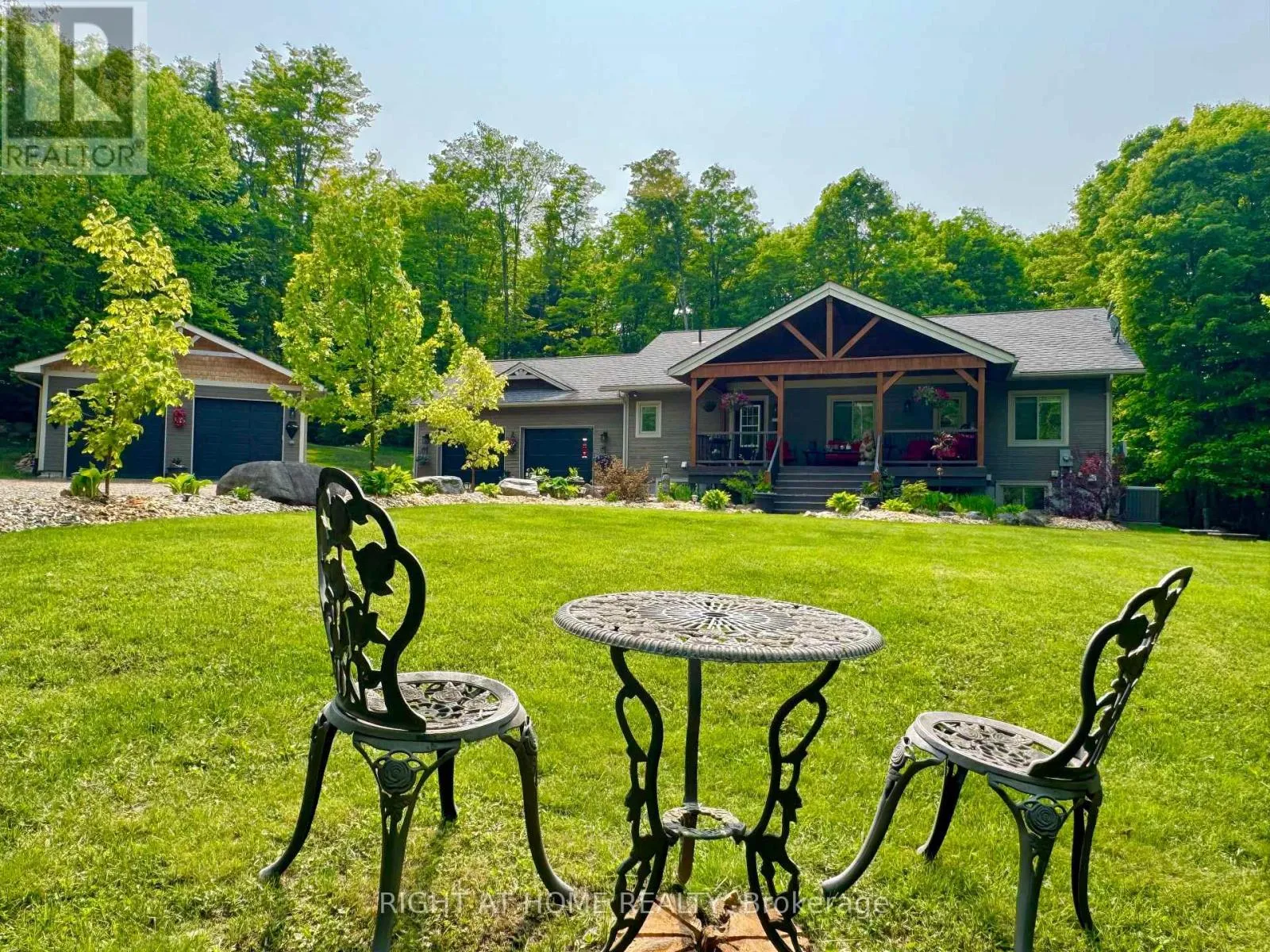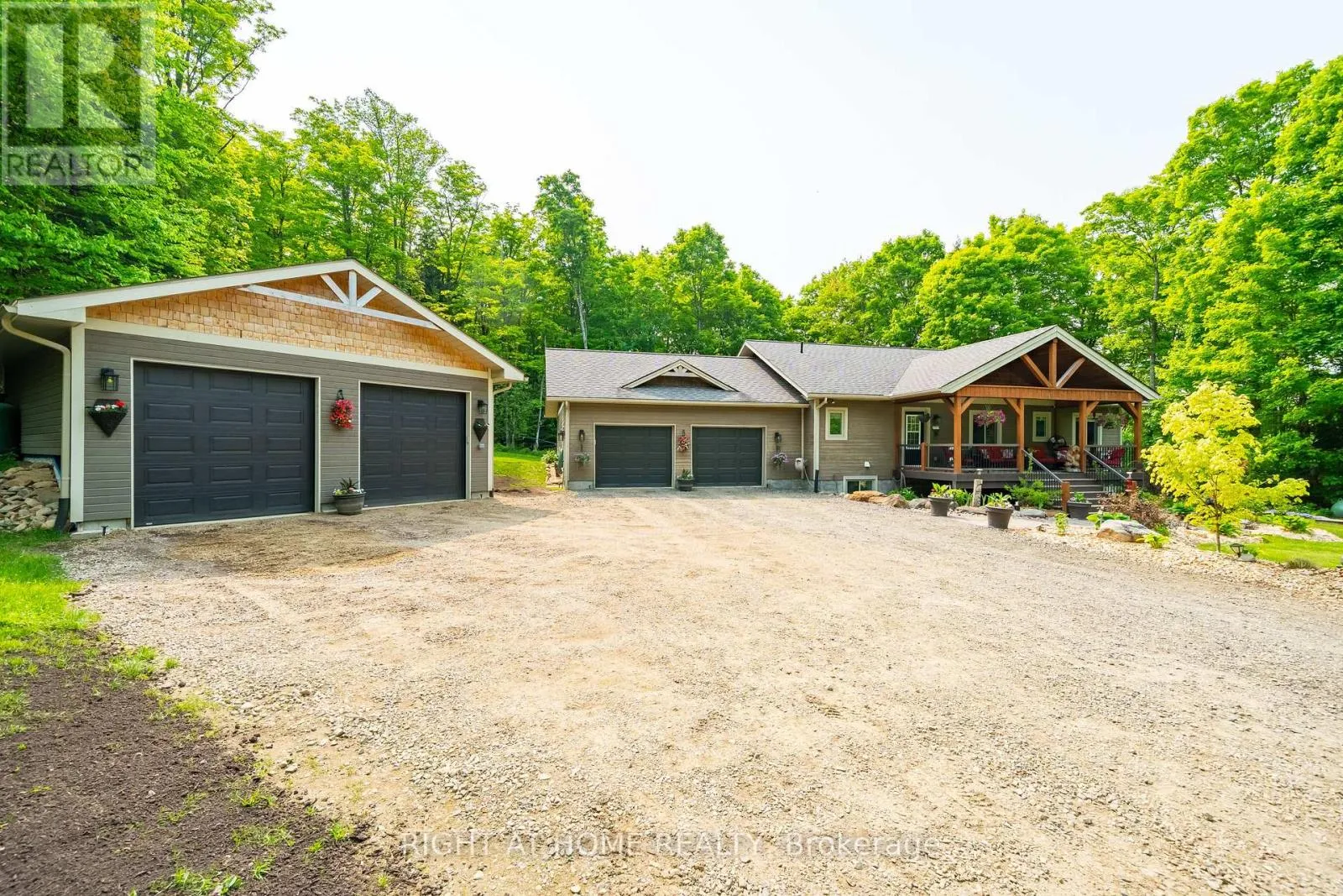 Cross Streets: Hwy35 & Hwy118 In West Guilford. ** Directions: Hwy35 to118Hwy follow east to address. Private 5.5 Acres Lot - Where Nature and Comfort Live in Harmony, Here Life Slows Down and Peace Begins! Welcome to a rare gem that's more than just a home, it's a lifestyle. Charming, Maintained with love and tucked away on a stunning, very private and peaceful 5.5 acre lot, this charming bungalow offers full connection with nature with deer visiting your backyard from time to time and birdsong as your daily soundtrack. Step into your dream with this character-filled bungalow boasting 3+1 bedrooms & 3 full bathrooms, a layout perfect for comfort and flexibility. Approximately 3,000 sq ft of living space. The cathedral ceilings in the open-concept living area and kitchen create an airy, inviting space centred around a stunning gas fireplace, perfect for cozy evenings. The primary suite is a private retreat featuring a walk-in closet and a luxurious 5-piece ensuite overlooking serene greenery. Whether you're a car enthusiast or a collector of big toys - this property has room for it all!You'll be thrilled with the attached 27'6"x27' garage PLUS a newly built 24'x24' heated detached workshop/garage with concrete slab, ideal for year-round projects, storage, or hobbies. The finished basement offers a huge great room with a solid wood bar, large above-grade windows, an extra bedroom, and plenty of storage to customize for your needs. Pet parents, rejoice! A dedicated mudroom with a dog shower makes daily life cleaner, easier, and even more pet-friendly. Step outside to your stunning front and backyard oasis, where peace, privacy, and panoramic nature views await. Sip your morning coffee on the deck as the forest whispers around you, its pure paradise. Enjoy the convenience of dual driveways and easy commutes on fully paved roads. You're just a short drive to shopping, public beaches, Lakeside Golf Club, groceries, and much more.This isn't just a move it's a rare opportunity to live the lifestyle you've dreamed of for very affordable price! (id:27476)