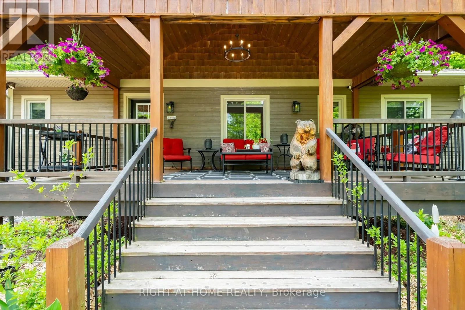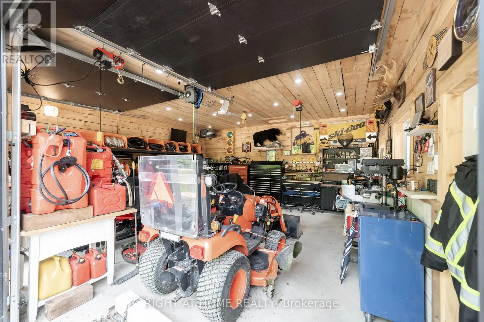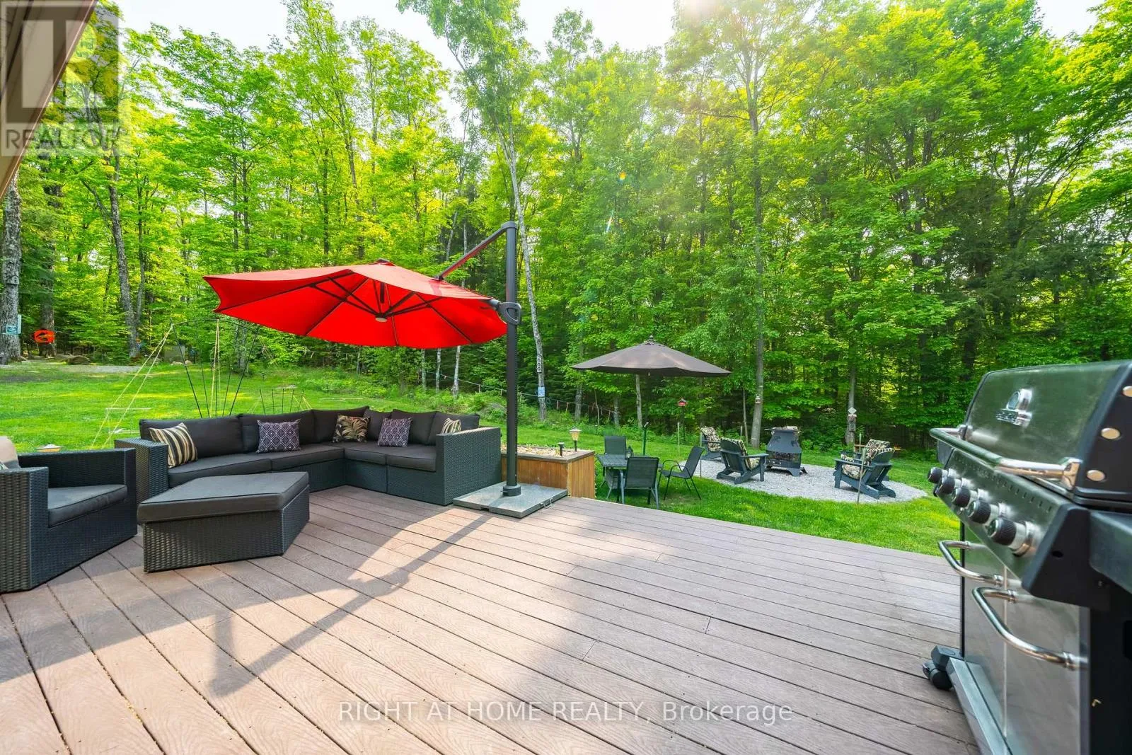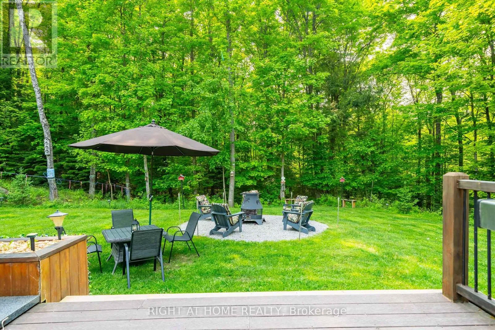 Cross Streets: Hwy35 & Hwy118 In West Guilford. ** Directions: Hwy35 to118Hwy follow east to address. Private 5.5 Acres Lot - Where Nature and Comfort Live in Harmony, Here Life Slows Down and Peace Begins! Welcome to a rare gem that's more than just a home, it's a lifestyle. Charming, Maintained with love and tucked away on a stunning, very private and peaceful 5.5 acre lot, this charming bungalow offers full connection with nature with deer visiting your backyard from time to time and birdsong as your daily soundtrack. Step into your dream with this character-filled bungalow boasting 3+1 bedrooms & 3 full bathrooms, a layout perfect for comfort and flexibility. Approximately 3,000 sq ft of living space. The cathedral ceilings in the open-concept living area and kitchen create an airy, inviting space centred around a stunning gas fireplace, perfect for cozy evenings. The primary suite is a private retreat featuring a walk-in closet and a luxurious 5-piece ensuite overlooking serene greenery. Whether you're a car enthusiast or a collector of big toys - this property has room for it all!You'll be thrilled with the attached 27'6"x27' garage PLUS a newly built 24'x24' heated detached workshop/garage with concrete slab, ideal for year-round projects, storage, or hobbies. The finished basement offers a huge great room with a solid wood bar, large above-grade windows, an extra bedroom, and plenty of storage to customize for your needs. Pet parents, rejoice! A dedicated mudroom with a dog shower makes daily life cleaner, easier, and even more pet-friendly. Step outside to your stunning front and backyard oasis, where peace, privacy, and panoramic nature views await. Sip your morning coffee on the deck as the forest whispers around you, its pure paradise. Enjoy the convenience of dual driveways and easy commutes on fully paved roads. You're just a short drive to shopping, public beaches, Lakeside Golf Club, groceries, and much more.This isn't just a move it's a rare opportunity to live the lifestyle you've dreamed of for very affordable price! (id:27476)
