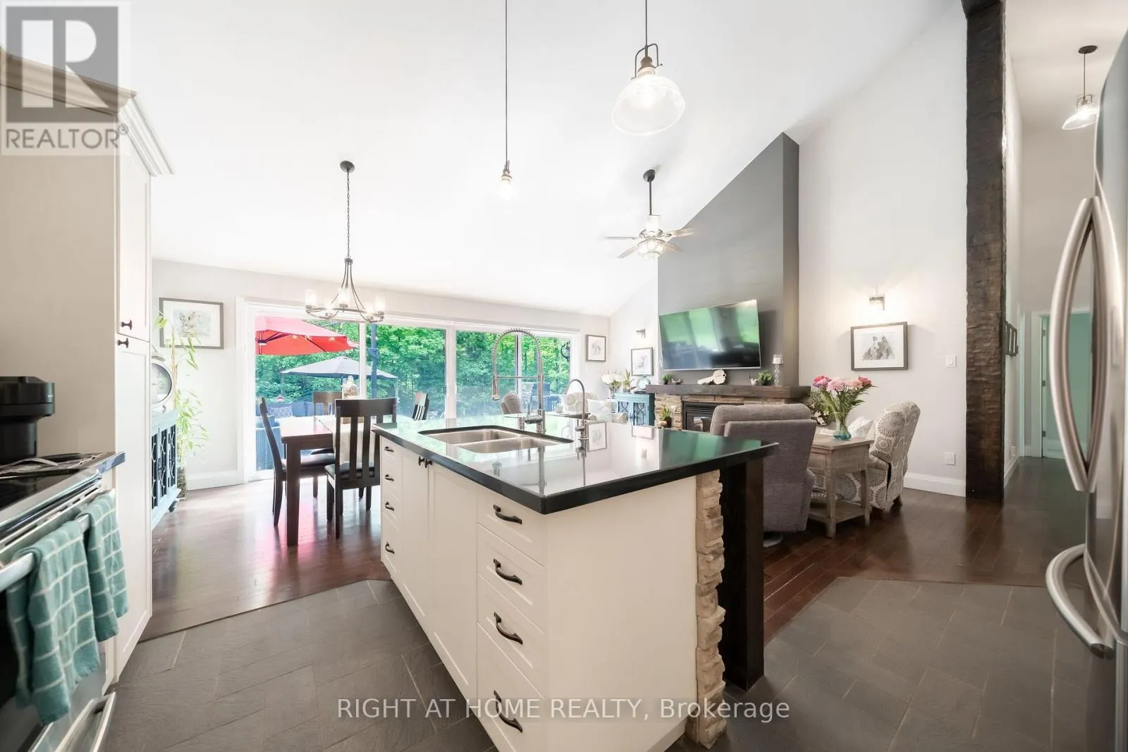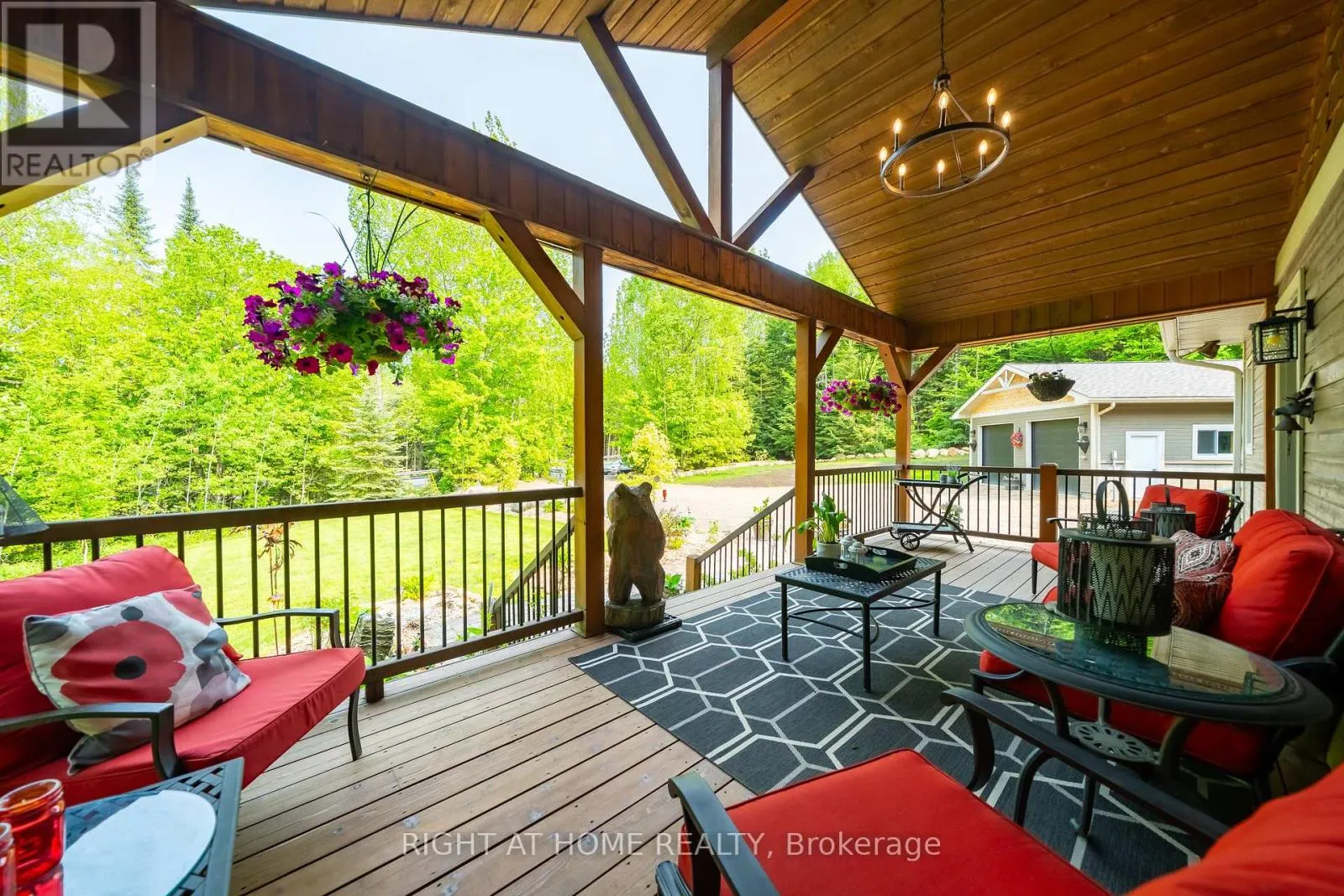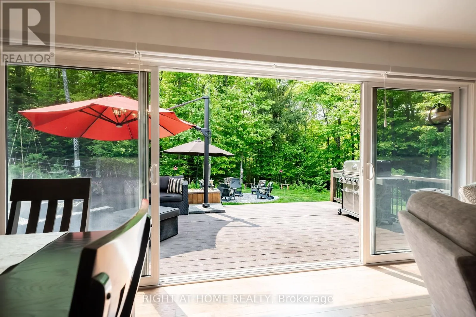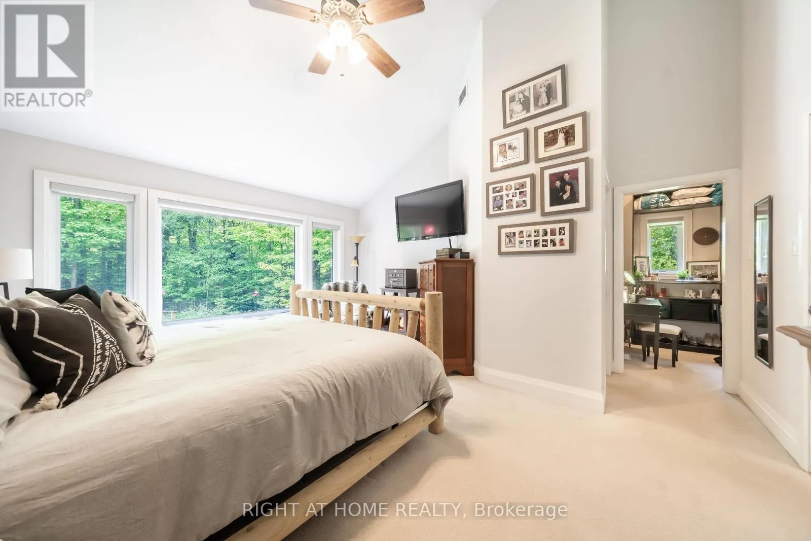 Cross Streets: Hwy35 & Hwy118 In West Guilford. ** Directions: Hwy35 to118Hwy follow east to address. Private 5.5 Acres Lot - Where Nature and Comfort Live in Harmony, Here Life Slows Down and Peace Begins! Welcome to a rare gem that's more than just a home, it's a lifestyle. Charming, Maintained with love and tucked away on a stunning, very private and peaceful 5.5 acre lot, this charming bungalow offers full connection with nature with deer visiting your backyard from time to time and birdsong as your daily soundtrack. Step into your dream with this character-filled bungalow boasting 3+1 bedrooms & 3 full bathrooms, a layout perfect for comfort and flexibility. Approximately 3,000 sq ft of living space. The cathedral ceilings in the open-concept living area and kitchen create an airy, inviting space centred around a stunning gas fireplace, perfect for cozy evenings. The primary suite is a private retreat featuring a walk-in closet and a luxurious 5-piece ensuite overlooking serene greenery. Whether you're a car enthusiast or a collector of big toys - this property has room for it all!You'll be thrilled with the attached 27'6"x27' garage PLUS a newly built 24'x24' heated detached workshop/garage with concrete slab, ideal for year-round projects, storage, or hobbies. The finished basement offers a huge great room with a solid wood bar, large above-grade windows, an extra bedroom, and plenty of storage to customize for your needs. Pet parents, rejoice! A dedicated mudroom with a dog shower makes daily life cleaner, easier, and even more pet-friendly. Step outside to your stunning front and backyard oasis, where peace, privacy, and panoramic nature views await. Sip your morning coffee on the deck as the forest whispers around you, its pure paradise. Enjoy the convenience of dual driveways and easy commutes on fully paved roads. You're just a short drive to shopping, public beaches, Lakeside Golf Club, groceries, and much more.This isn't just a move it's a rare opportunity to live the lifestyle you've dreamed of for very affordable price! (id:27476)