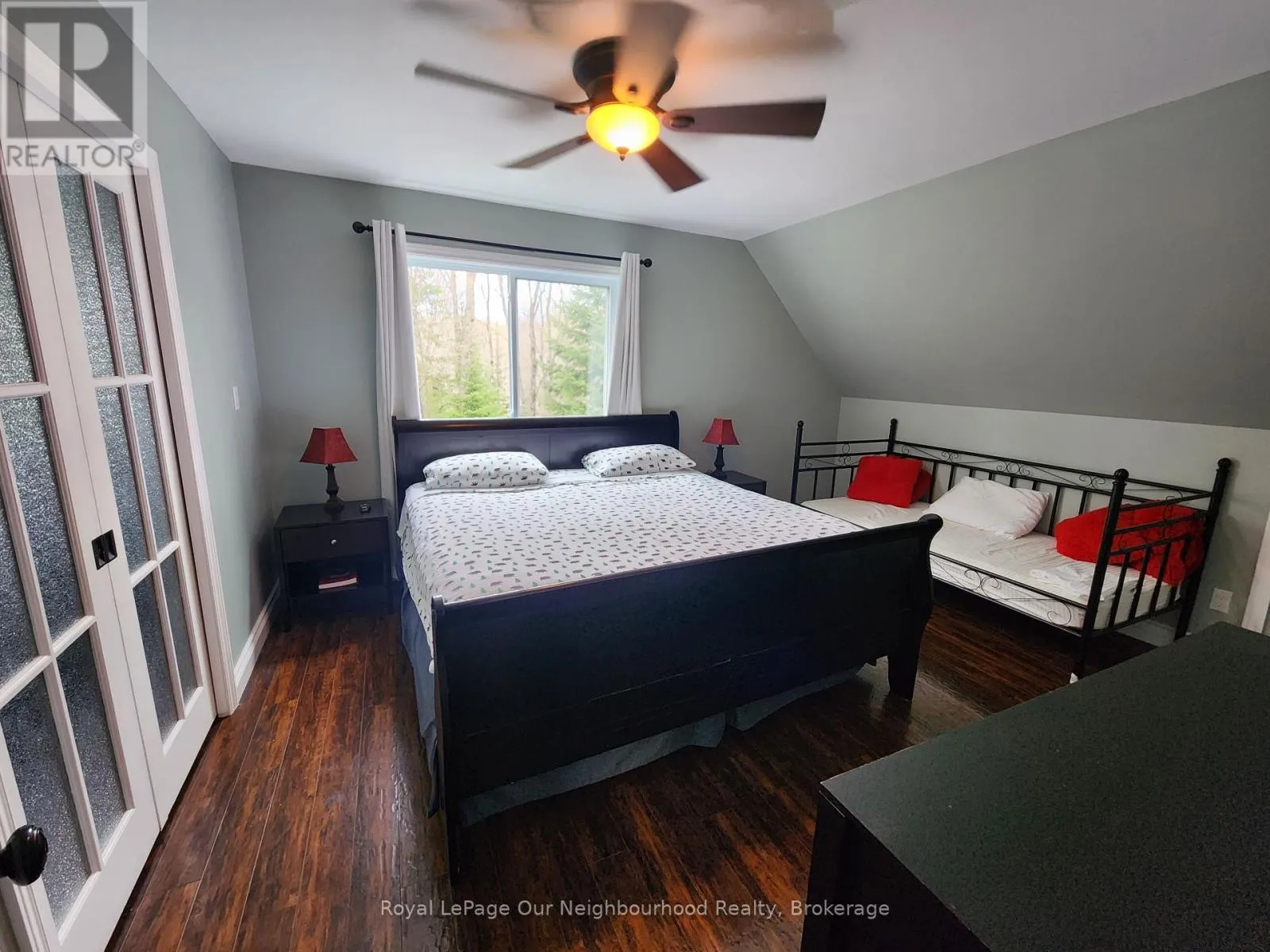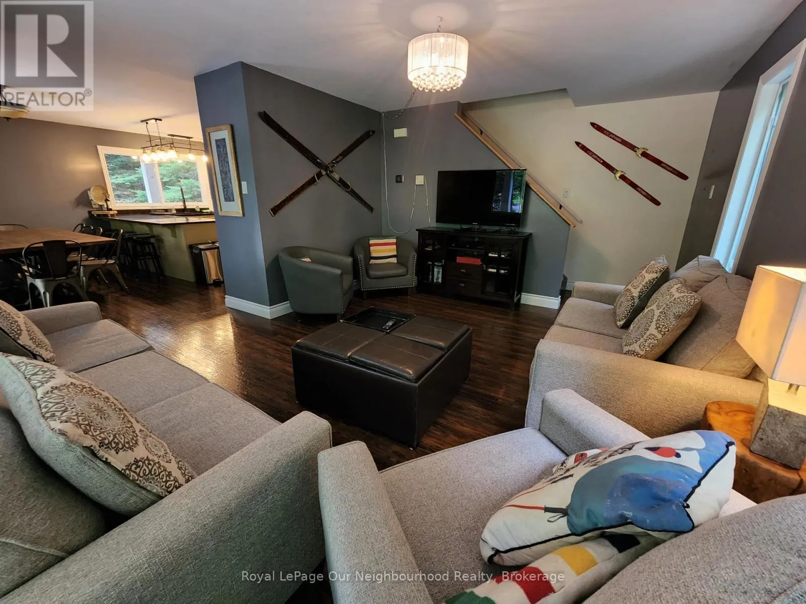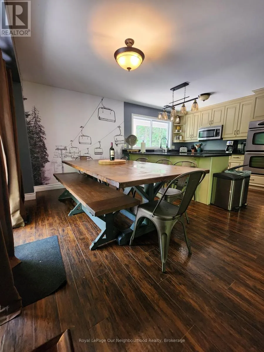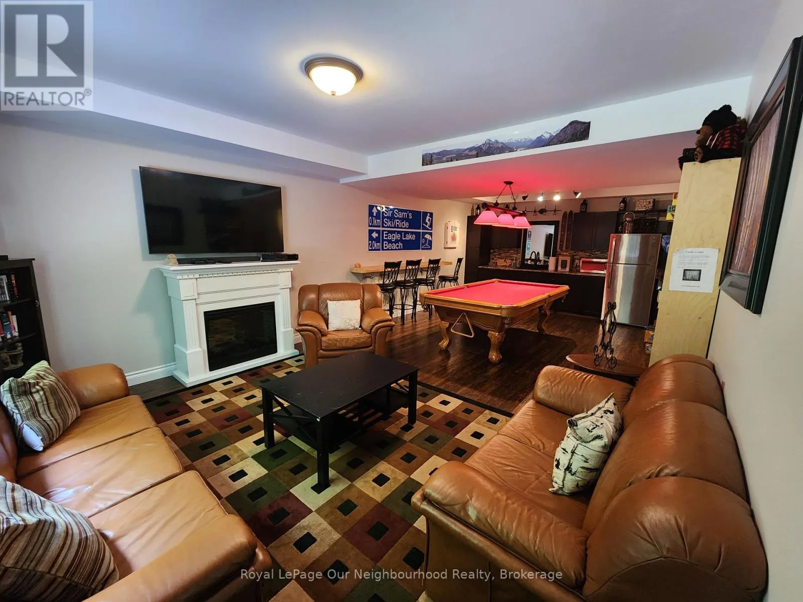 Cross Streets: Sir Sams Rd & Graydon Ln. ** Directions: South of Sir Sams Rd & East of Graydon Ln. Welcome to 1042 Ski Ridge Trail.This 4 bedroom masterpiece offers convenient ski-in/ski-out access to Sir Sams Ski & Ride. Privately situated on 1.4 acres of pristine forest offering peace and tranquillity. The main floor consists of a stunning open concept kitchen/dining room combination and cozy living room along with 1 bedroom and 4-piece bath. 2nd floor consists of 3 additional bedrooms including primary bedroom and 3-piece bath. Fully finished basement offers additional living space, including recreation room, wet bar, games room and 3-piece bath. Basement walks out to beautiful patio and hot tub. Enjoy roaring fires out front and sip your favourite drink on the stunning covered custom stone wrap around porch. Enjoy relaxing evenings in the charming and spacious authentic wood burning outdoor sauna. Home is complete with multi-camera security system and EV fast charging station. Private, secondary driveway located on the back side of the property leading to endless possibilities. During the winter months, enjoy ski-in/ski-out access to the ski hill, double the fun with bike-in/bike-out access to the incredible bike trails during the rest of the year. There is never a dull moment here with Hiking, ATVing, snowmobiling and much more at your finger tips,, the possibilities are endless! 10 minute walk to a beautiful beach on Eagle Lake. (id:27476)
