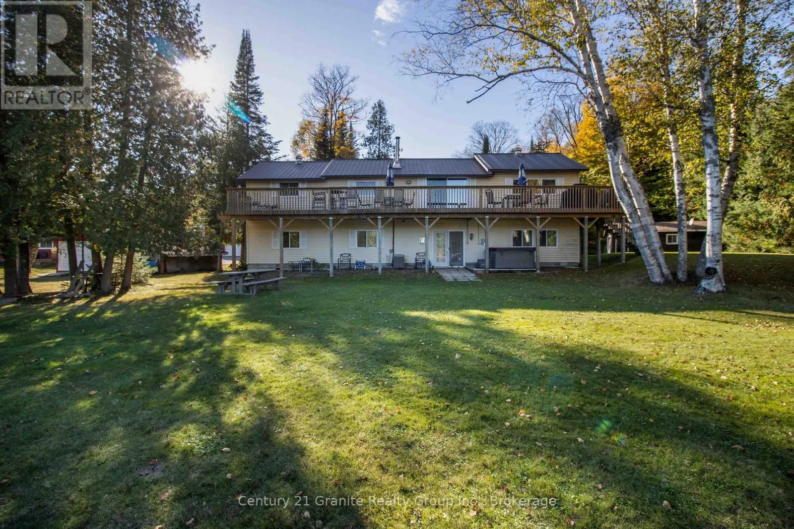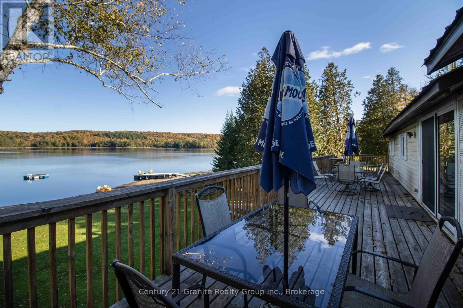 Cross Streets: Sullivan Dr & Hodgson Rd. ** Directions: Harburn Road to Hodgson Road to Sullivan Drive to # 1317. Wake up to sunrise views over Haliburton Lake, spend your afternoons swimming from your private sandy shoreline, and end the day soaking in your own lakeside hot tub. This stunning 5-bedroom, 3-bathroom year-round home or cottage offers the perfect blend of modern comfort and relaxed waterfront living on the highly sought-after Haliburton-Oblong 2-lake chain. With 2,256 sq ft of finished living space across two bright, above-grade levels, there's plenty of room for family and friends. The main floor features an open-concept living and dining area with a cozy brick wood-burning fireplace and a walkout to a wrap-around deck with sweeping lake views. The spacious chefs kitchen includes an island, ample cabinetry, and picturesque sightlines over the water. A versatile den is ideal for a reading nook, office, or media room. Three bedrooms complete the main level, including a large primary suite with a beautifully renovated ensuite. The lower level is designed for entertaining, offering a sunlit rec room, games area, two generous bedrooms, and a 3-piece bath. Step outside to the hot tub overlooking the lake, perfect for unwinding after a day of boating, fishing, or swimming. Outdoors, the level lot makes lakeside living effortless. Enjoy your private sand beach, dock your boat with ease, and explore the 2-lake chain at your doorstep. A detached 1-car garage provides storage for all your gear. This turn-key property has been recently upgraded with a new HVAC system (2023) and comes fully furnished, just arrive and enjoy. Whether you're seeking a family retreat, a year-round home, or a rental investment, this property offers it all. Located just 5 minutes from Fort Irwin, 30 minutes to Haliburton Village, and only 2.5 hours from the GTA, this lakeside getaway is both accessible and private. Rare opportunities on Haliburton Lake don't last long, book your private showing today and start your lakefront lifestyle. (id:27476)